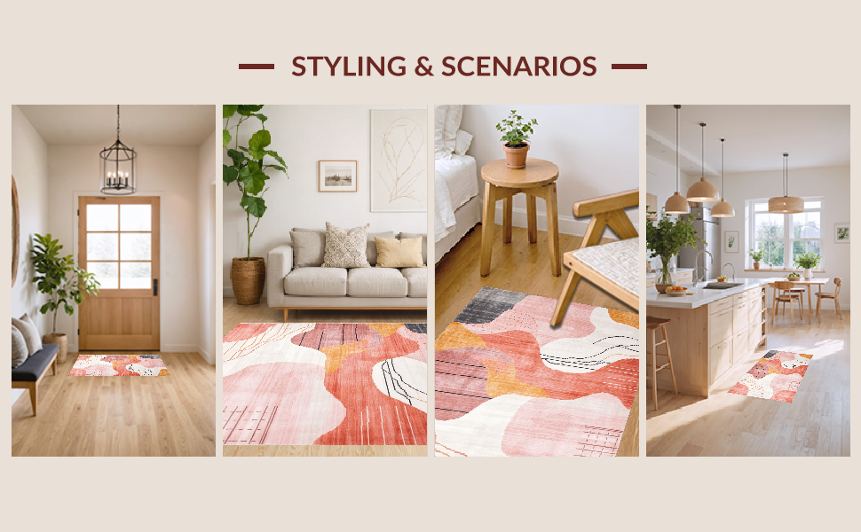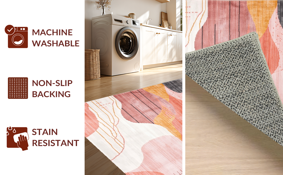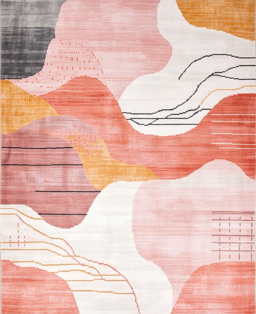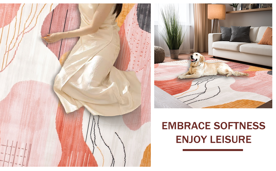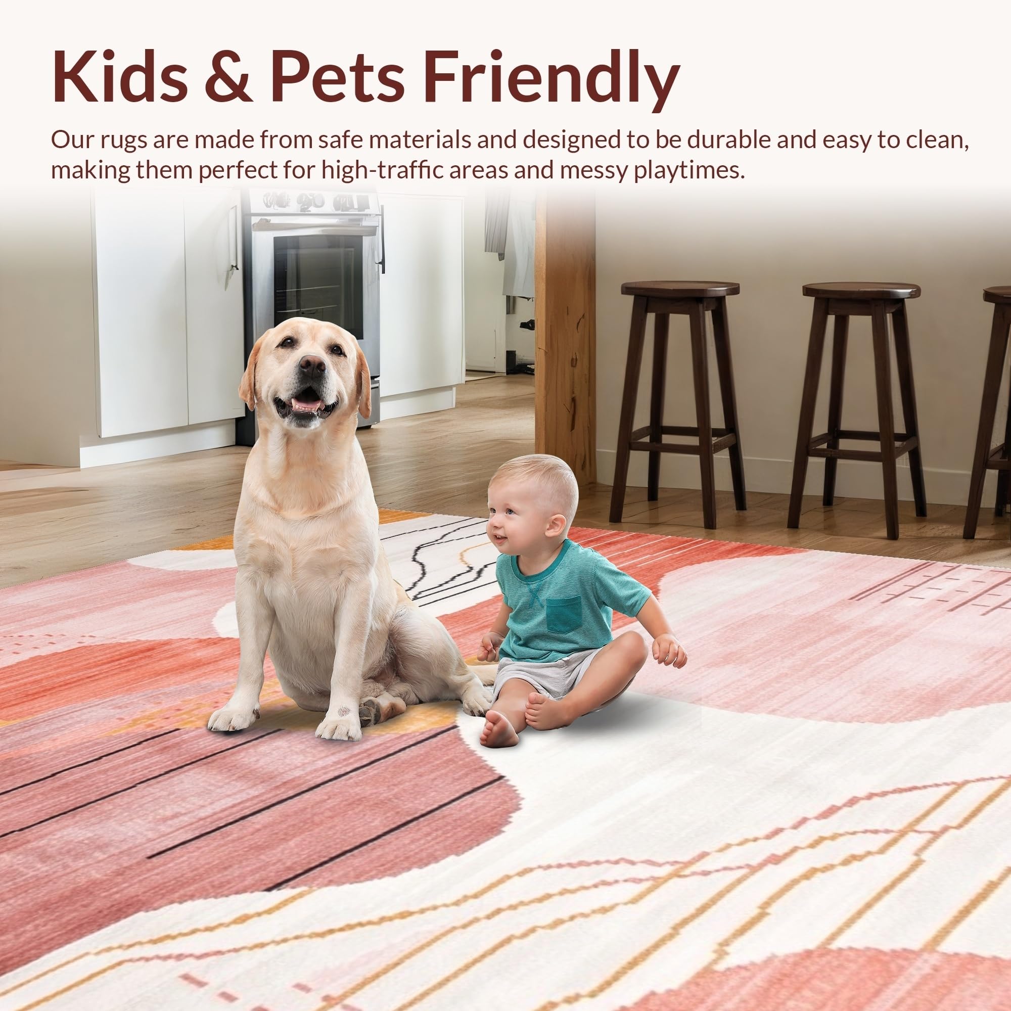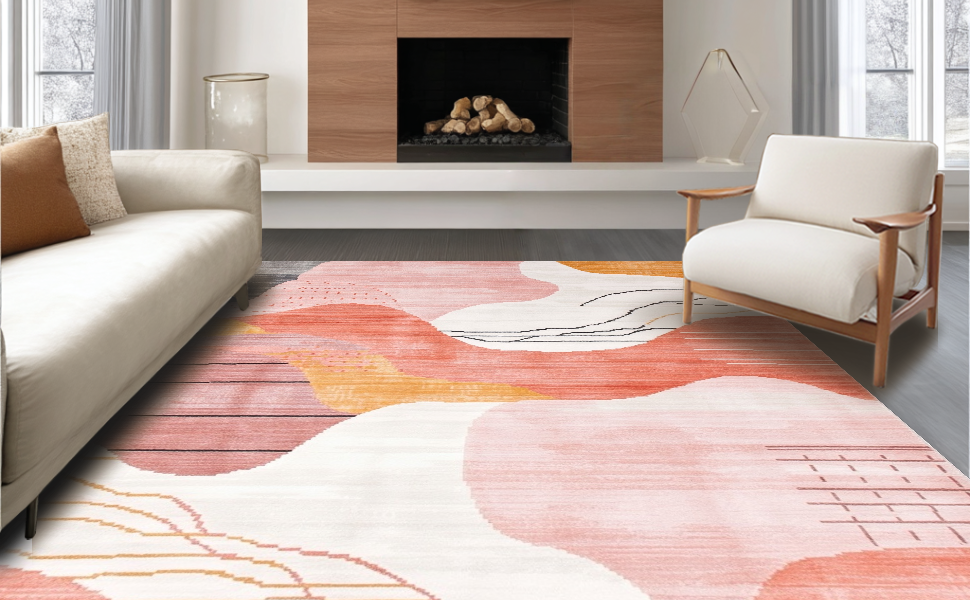 Ultra Soft Area Rug, Non Slip, Stain Resistant, Washable Area Rugs for Living Room, Bedroom, Contemporary Light Pink Visual Harmony(Pink) Overview: