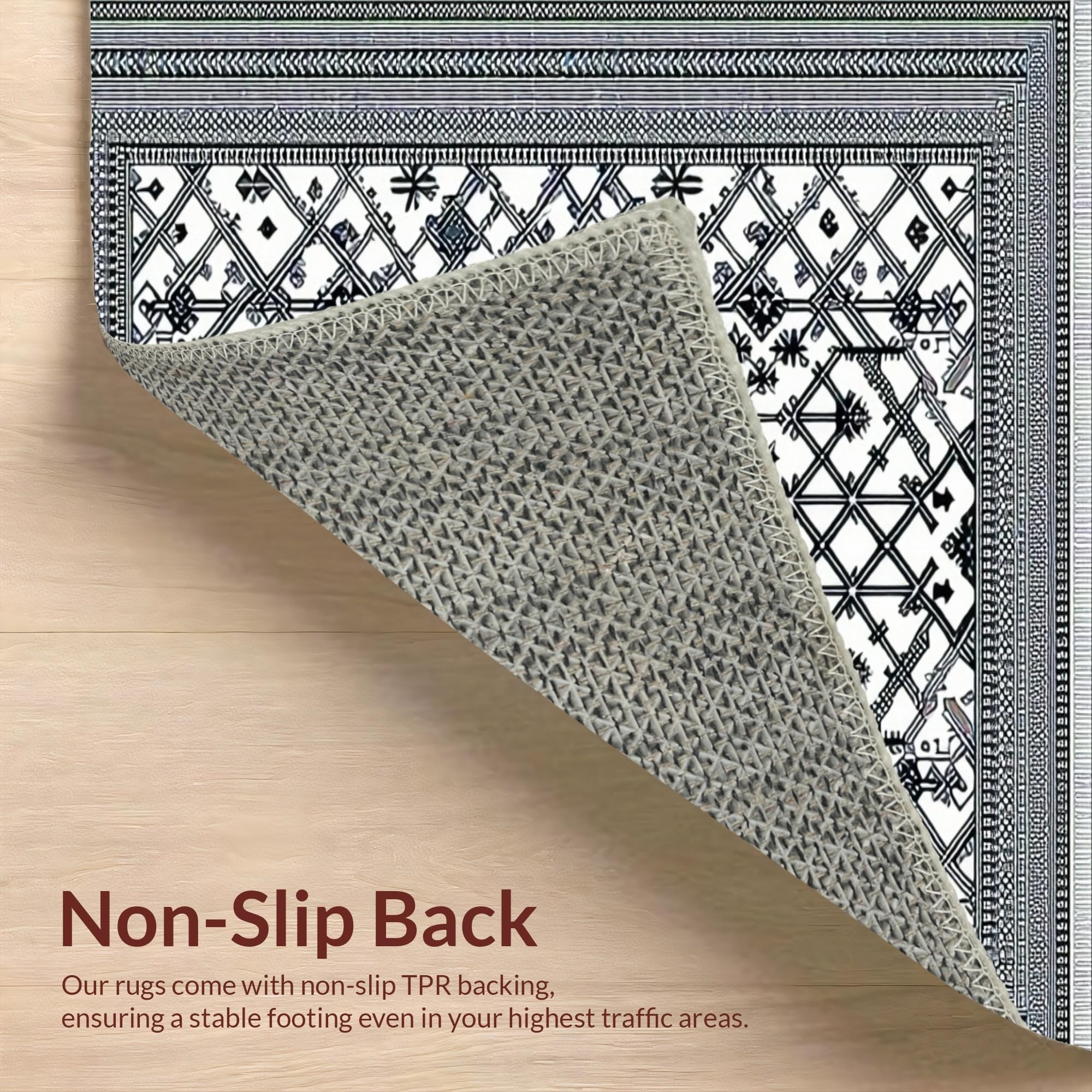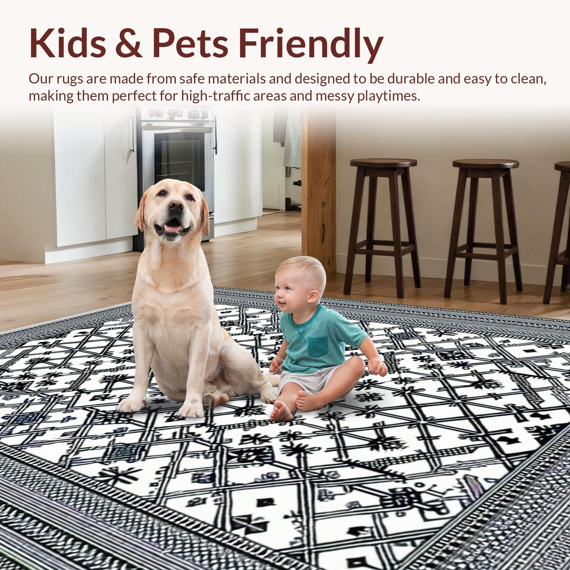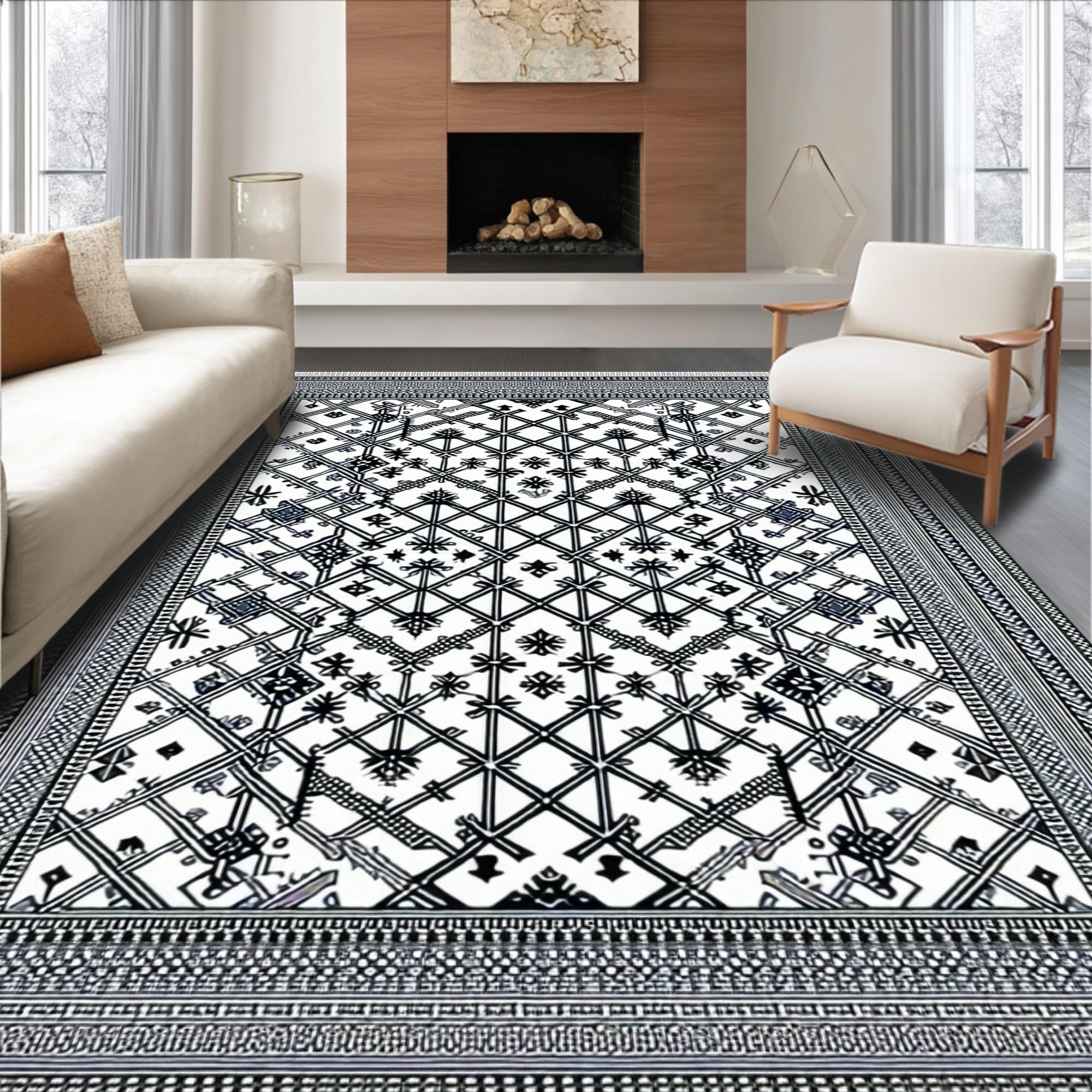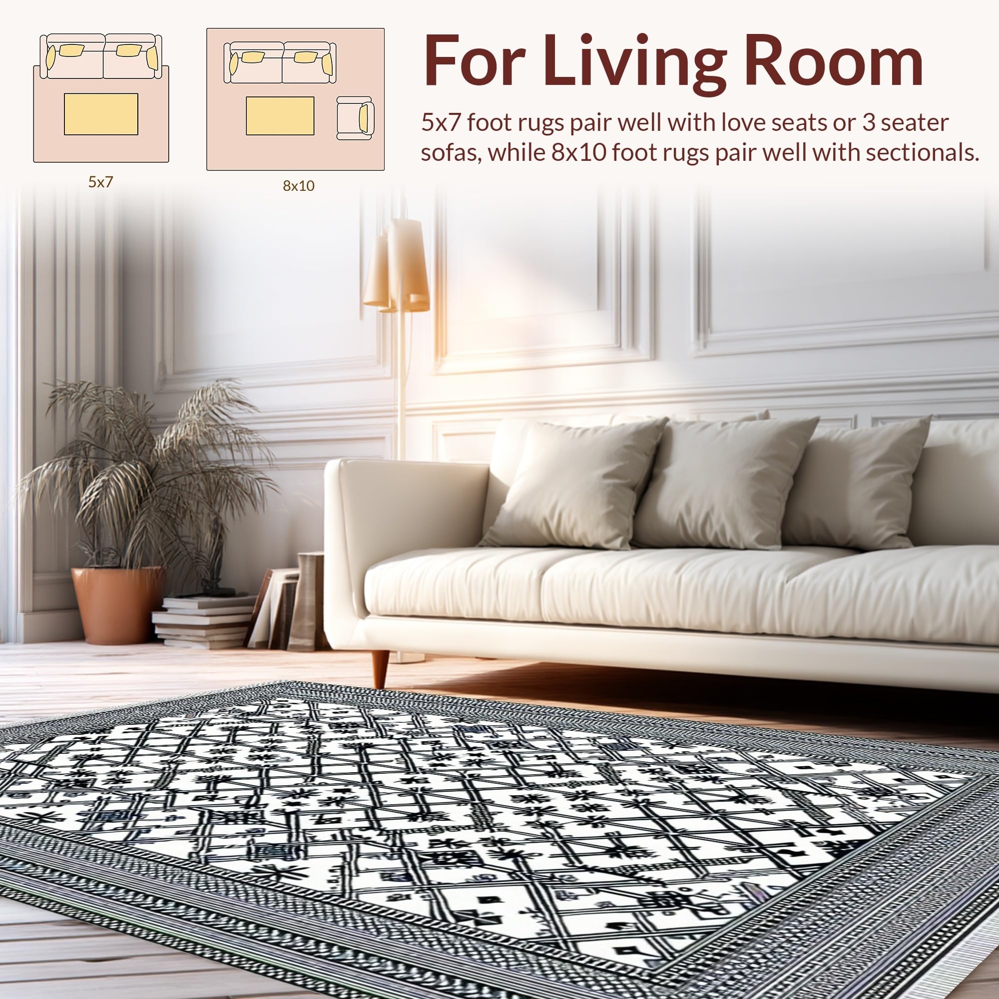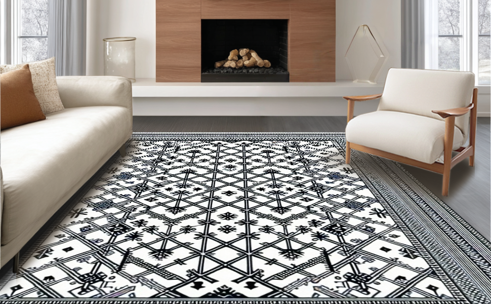 Ultra Soft Area Rug, Non Slip, Stain Resistant, Washable Area Rugs for Living Room, Bedroom, Contemporary Linear Black Aesthetic(Black) Overview: