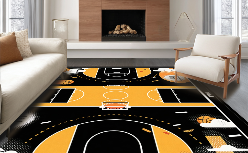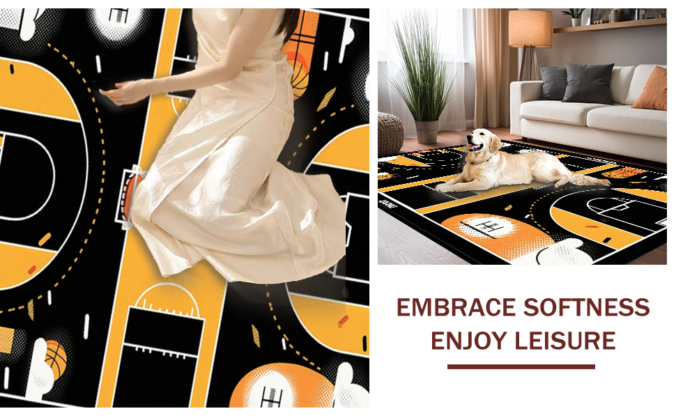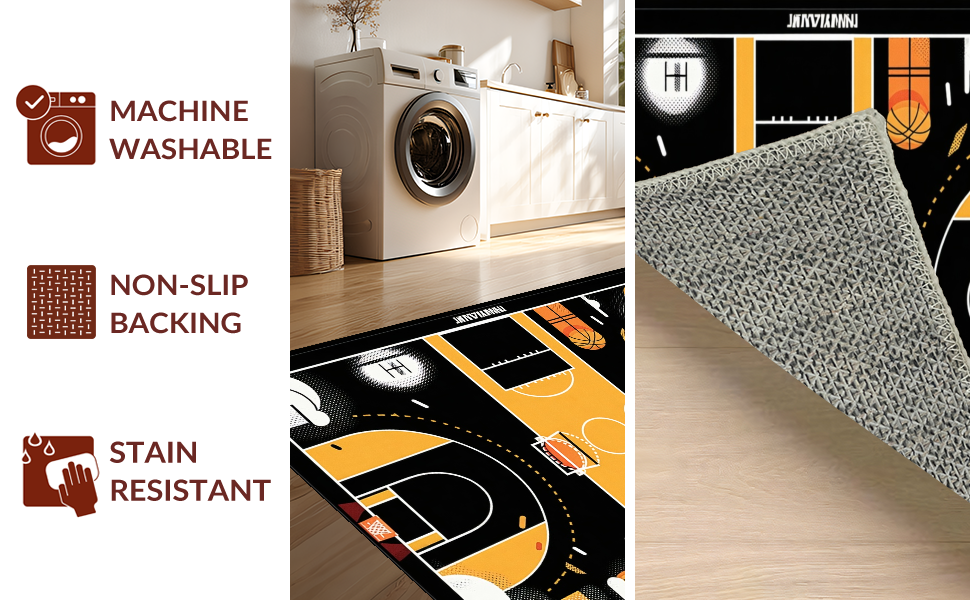 Ultra Soft Area Rug, Non Slip, Stain Resistant, Washable Area Rugs for Living Room, Bedroom, Contemporary Linear Court Layout(Black) Overview: