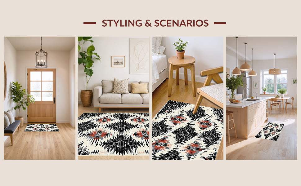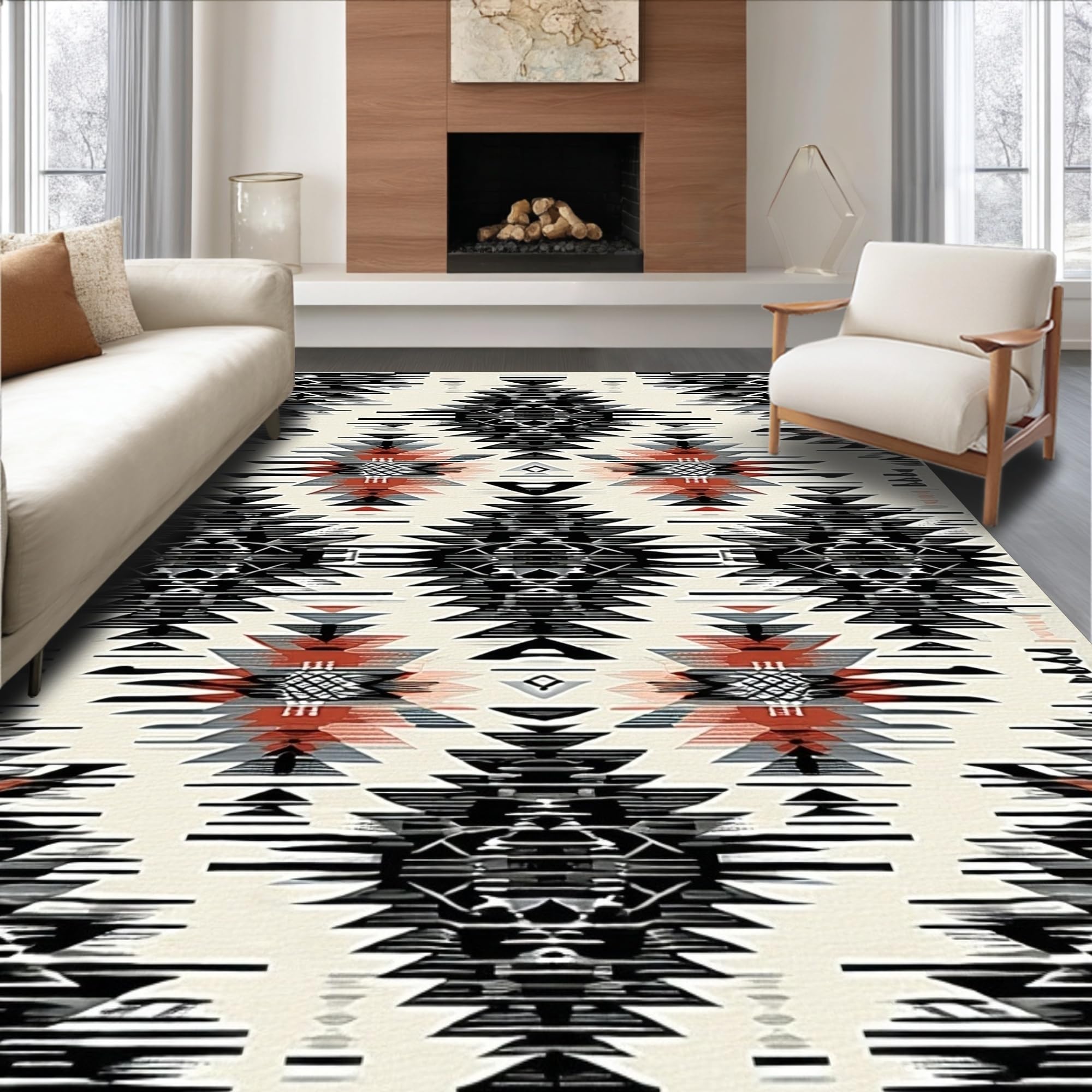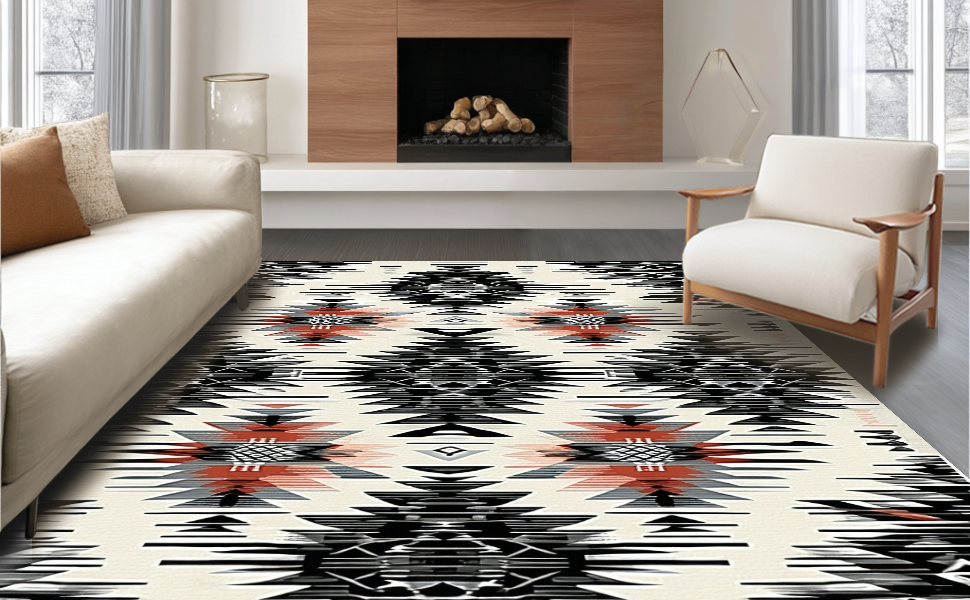 Ultra Soft Area Rug, Non Slip, Stain Resistant, Washable Area Rugs for Living Room, Bedroom, Contemporary Linear Diamond Arrangement(Black) Overview:
