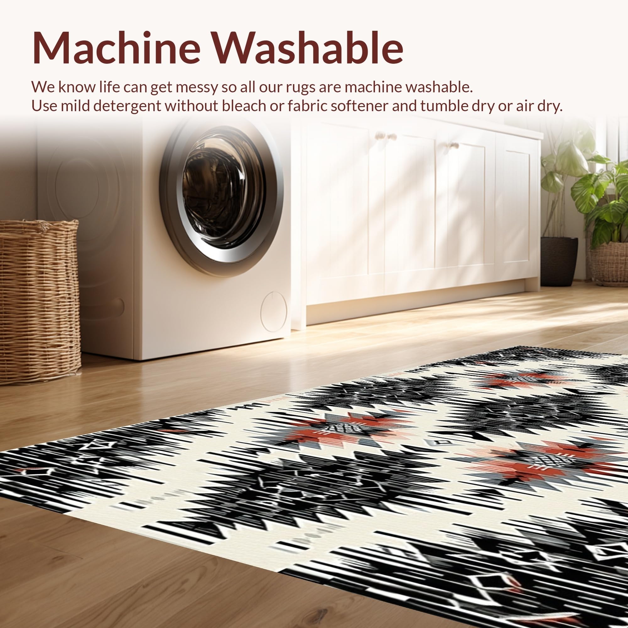 - Machine Washable: Our rugs can be easily thrown in the wash machine.