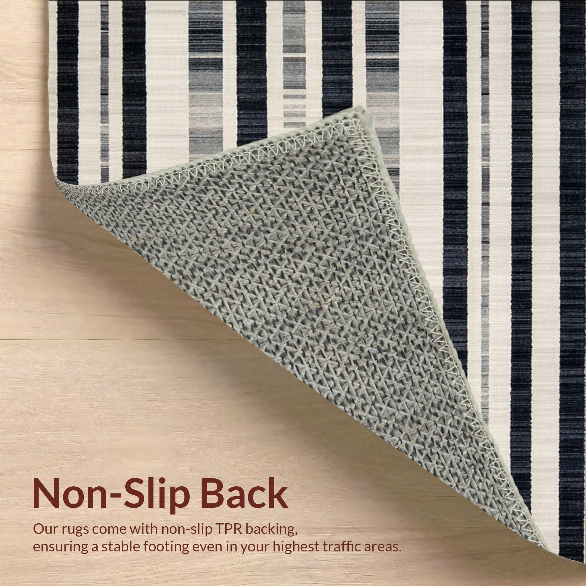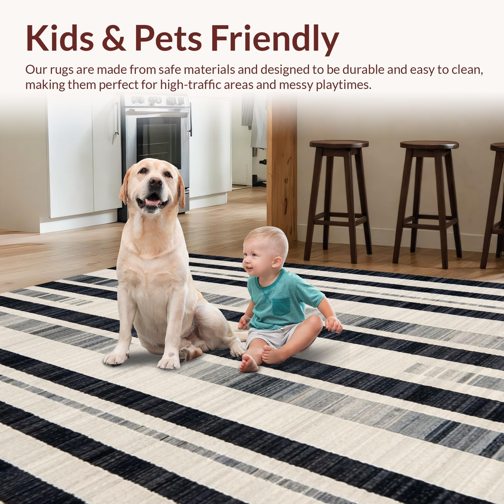 Ultra Soft Area Rug, Non Slip, Stain Resistant, Washable Area Rugs for Living Room, Bedroom, Contemporary Linear Rug with Bold Dual Tone Striped Geometry and Sleek Symmetry(Beige) Overview: