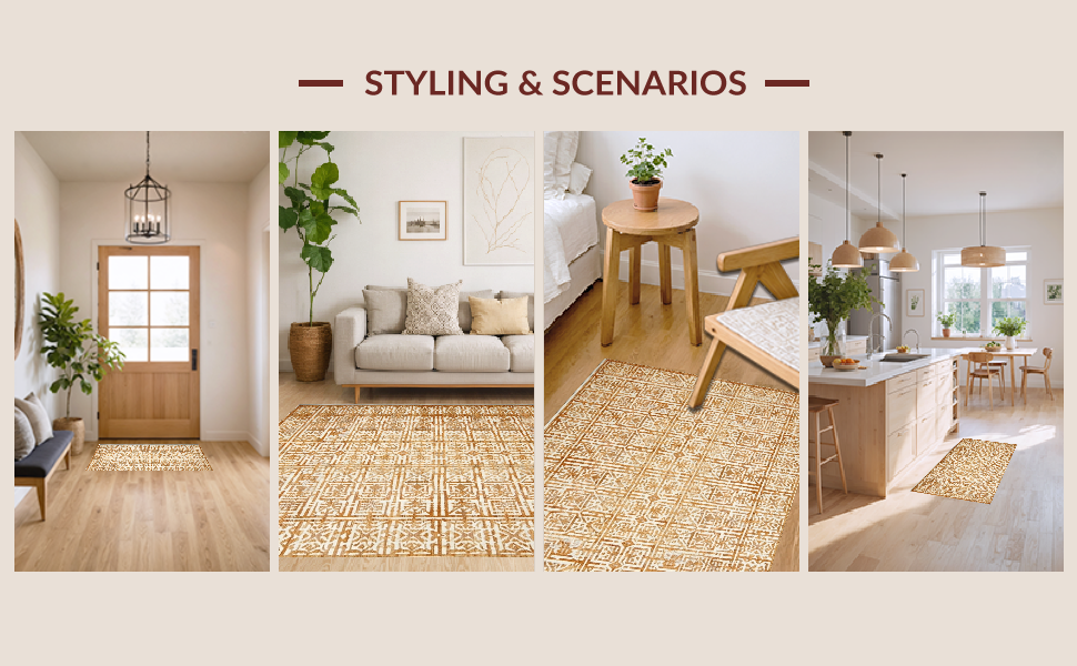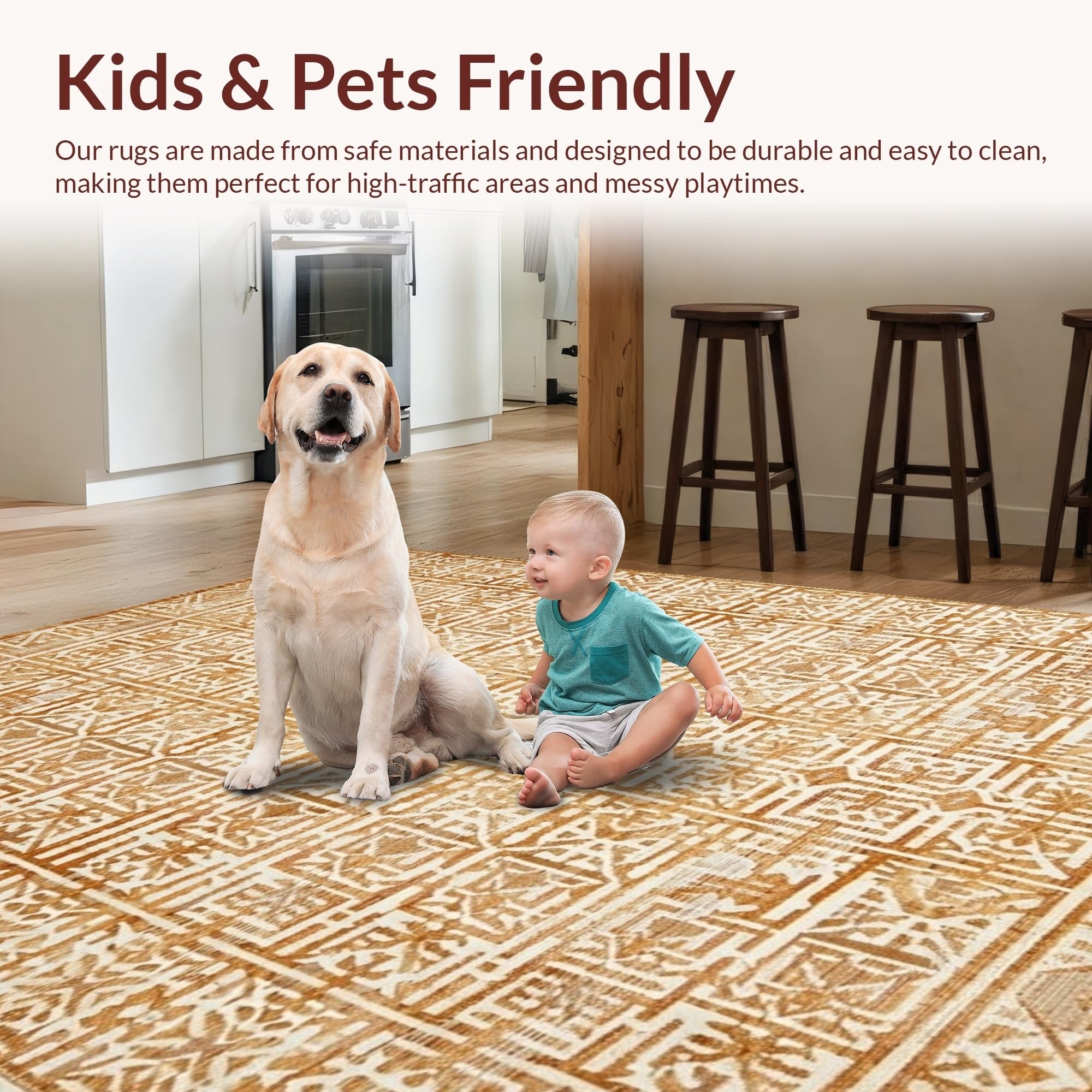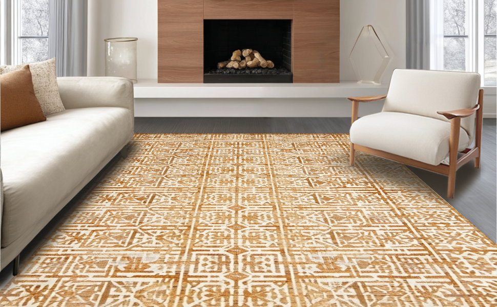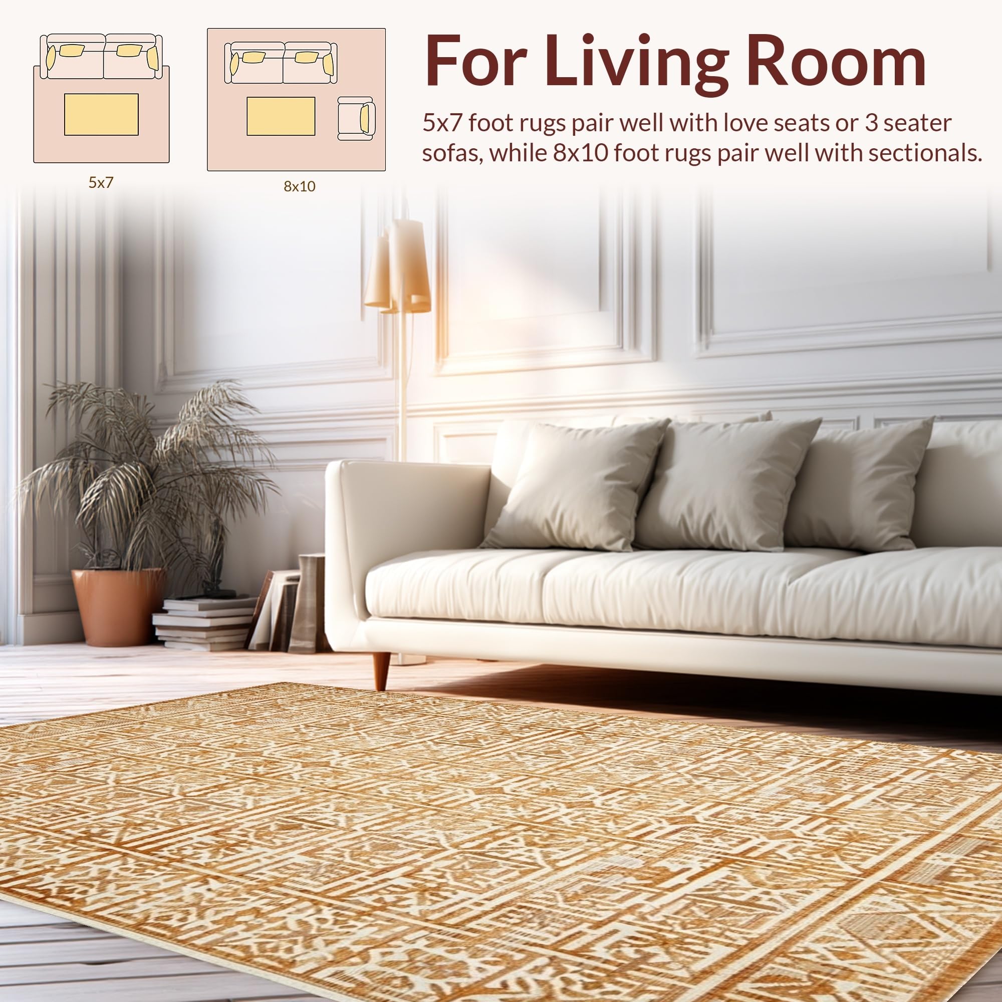 Ultra Soft Area Rug, Non Slip, Stain Resistant, Washable Area Rugs for Living Room, Bedroom, Contemporary Linear Symmetry(Beige) Overview: