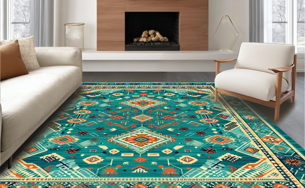 Ultra Soft Area Rug, Non Slip, Stain Resistant, Washable Area Rugs for Living Room, Bedroom, Contemporary Low-Pile Color Burst(Blue) Overview:
