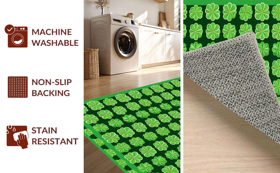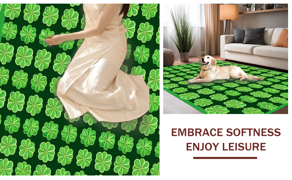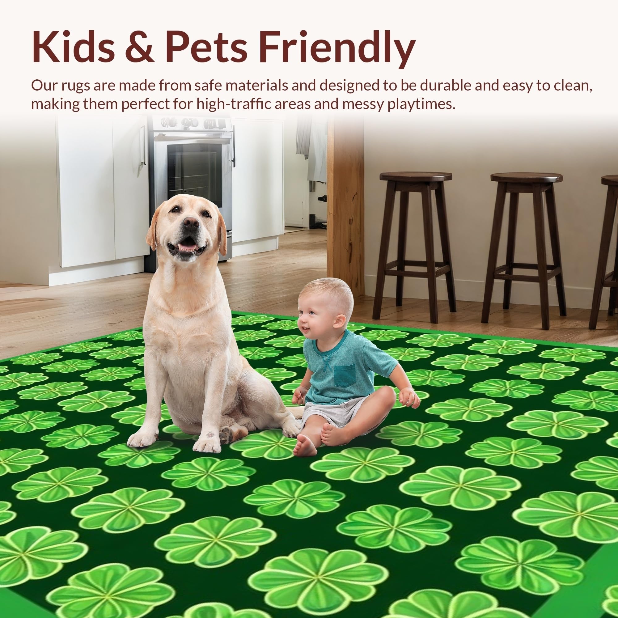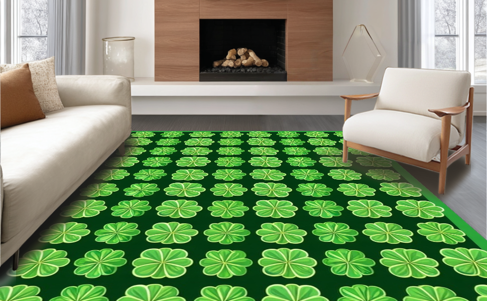 Ultra Soft Area Rug, Non Slip, Stain Resistant, Washable Area Rugs for Living Room, Bedroom, Contemporary Lucky Charm Decor(Green) Overview: