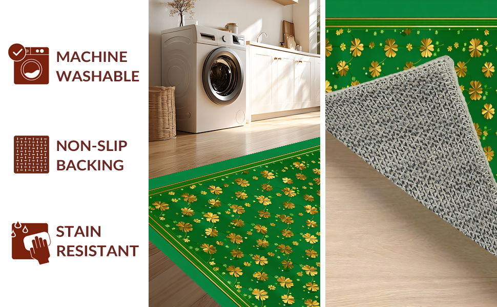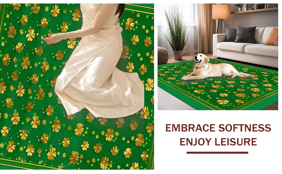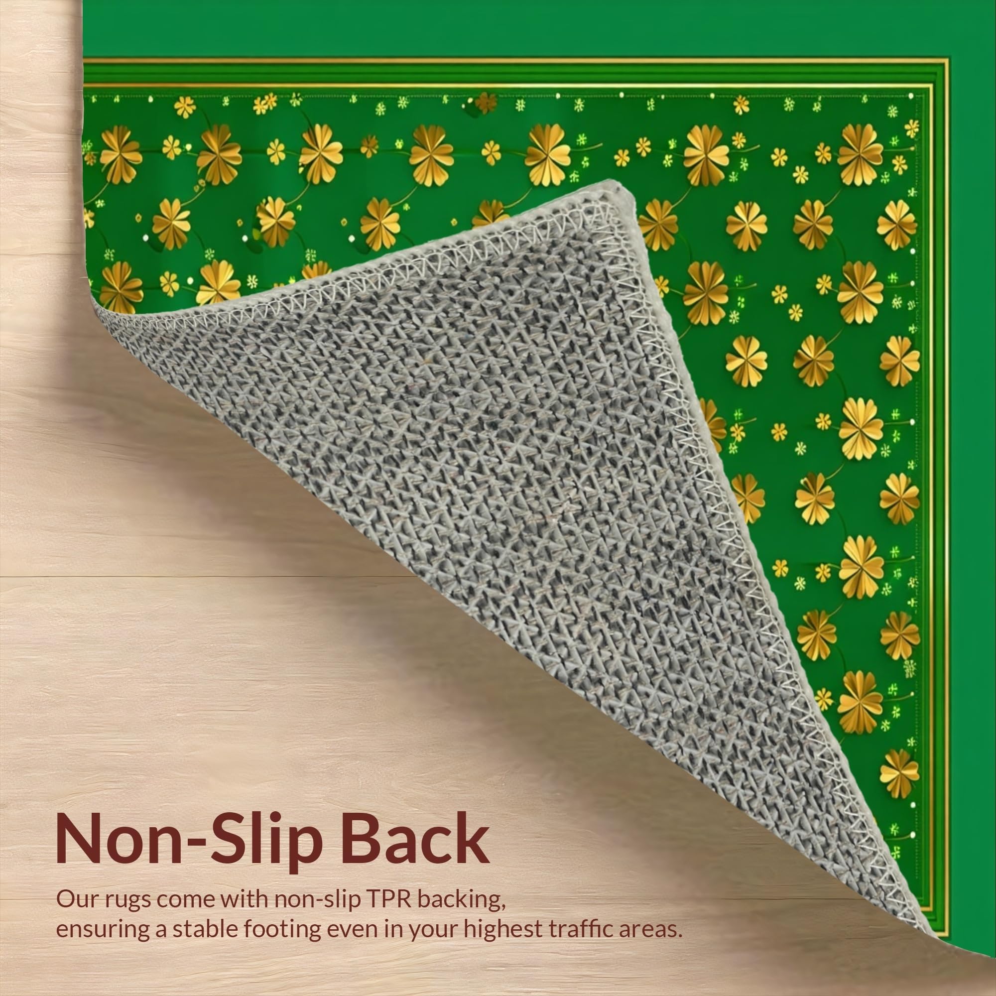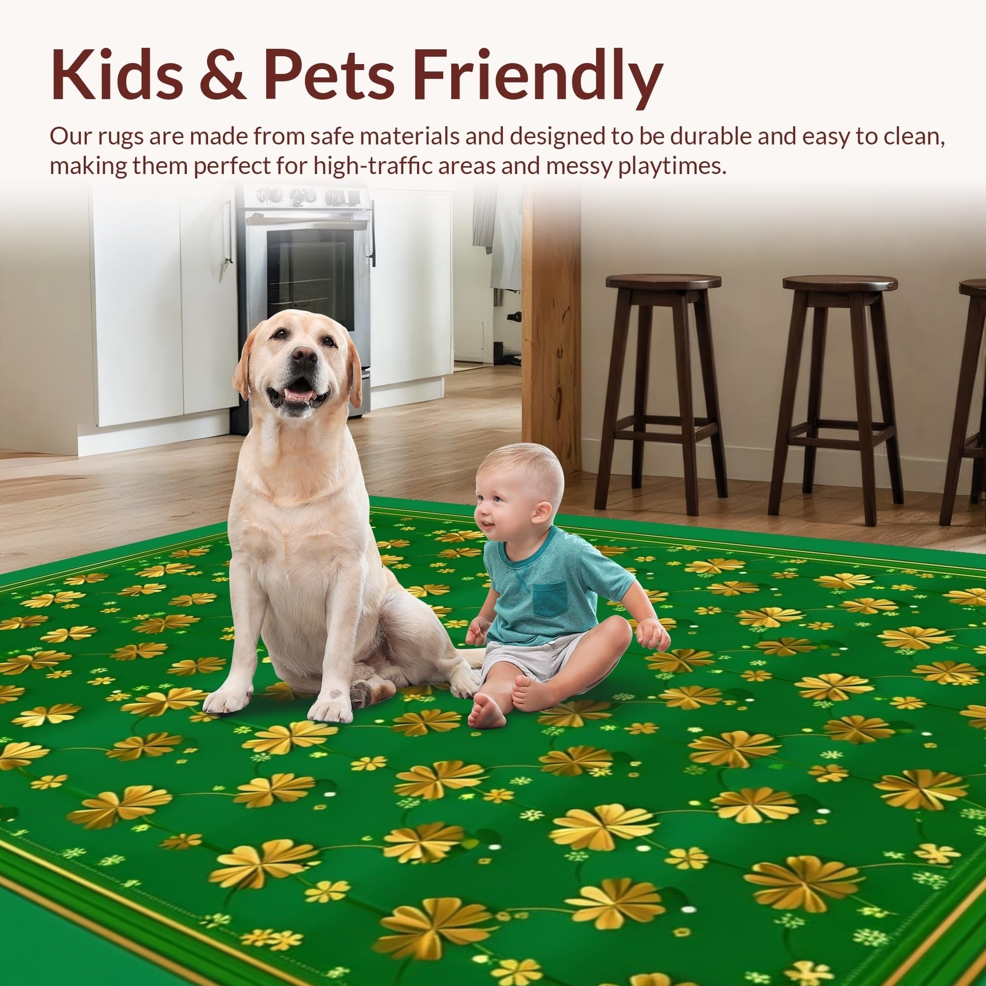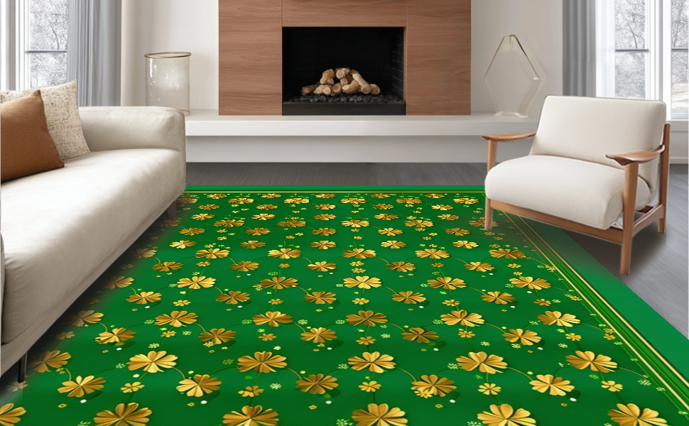 Ultra Soft Area Rug, Non Slip, Stain Resistant, Washable Area Rugs for Living Room, Bedroom, Contemporary Lucky Charm Theme(Green) Overview: