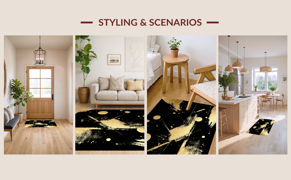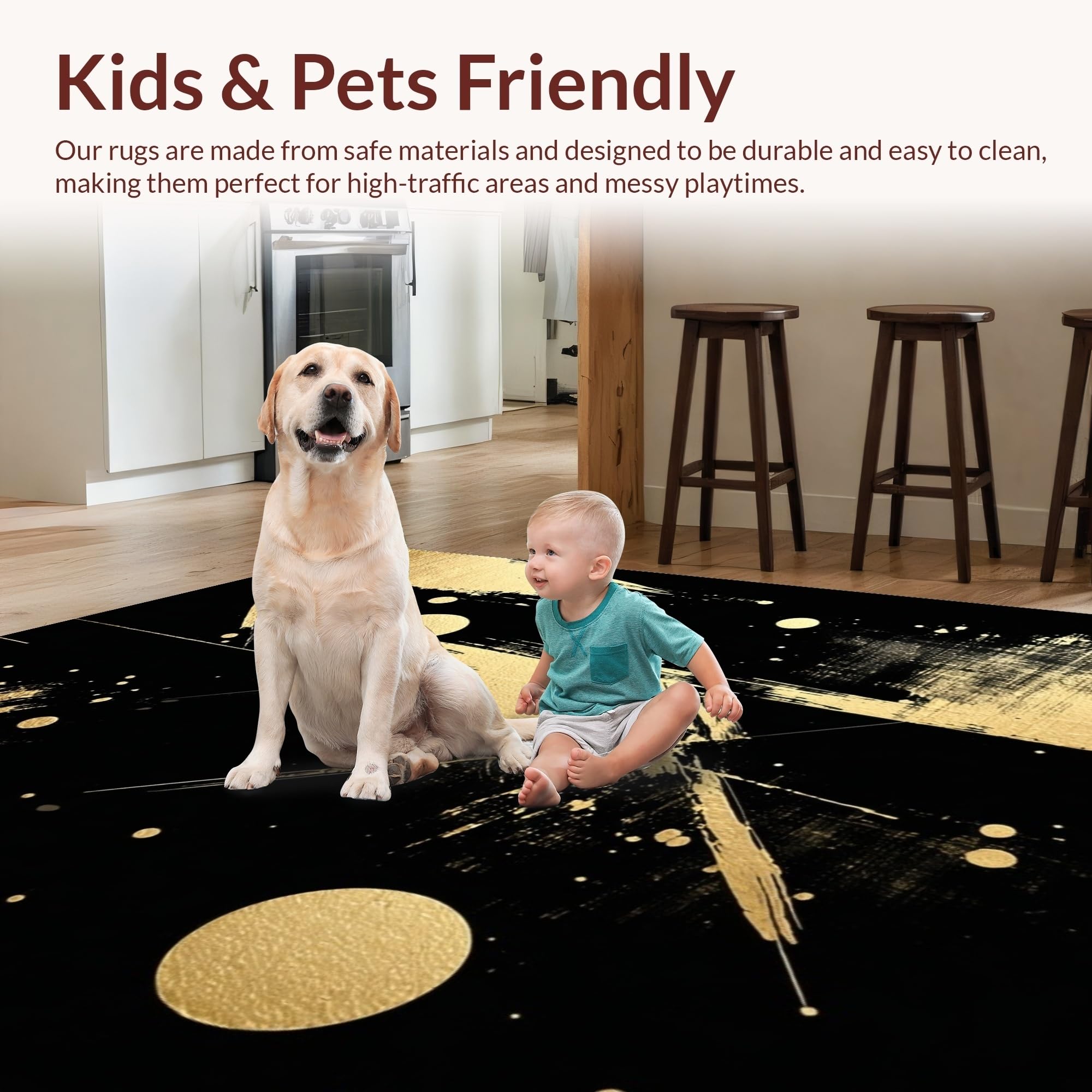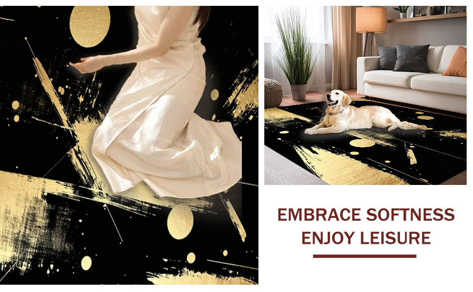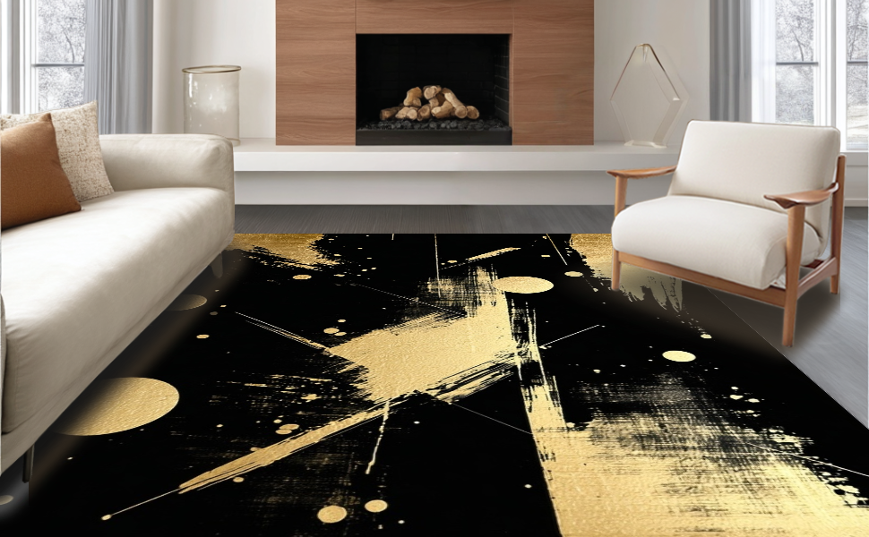Ultra Soft Area Rug, Non Slip, Stain Resistant, Washable Area Rugs for Living Room, Bedroom, Contemporary Luxurious Color Fusion(Black) Overview: