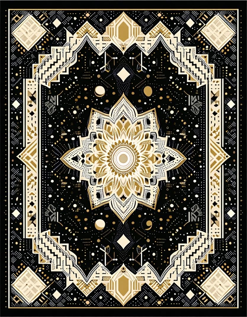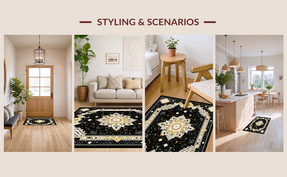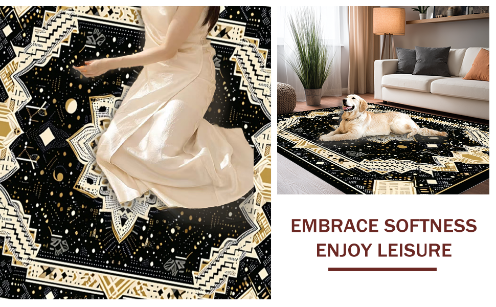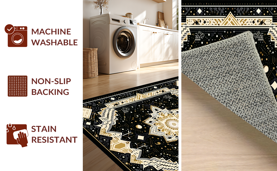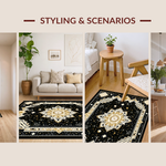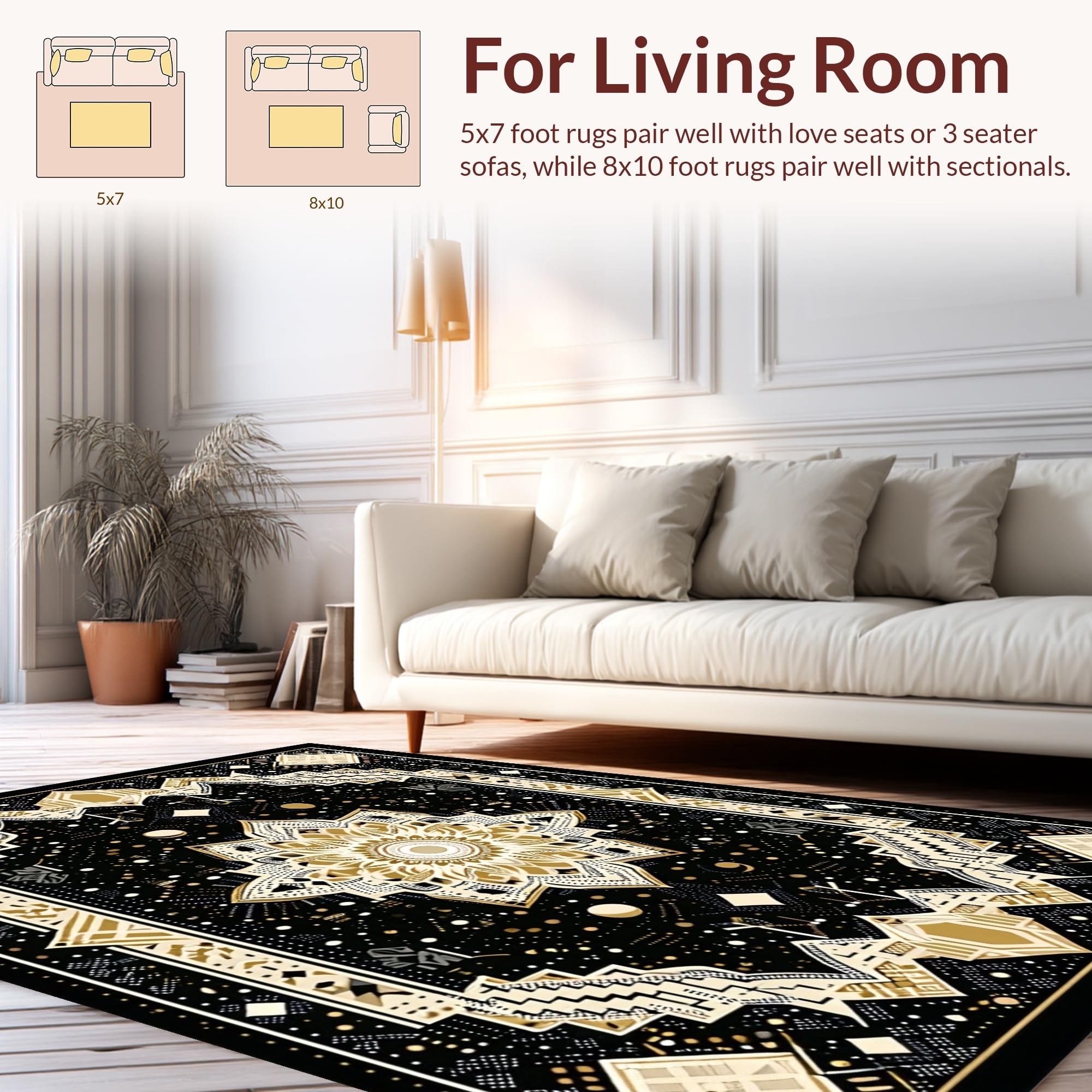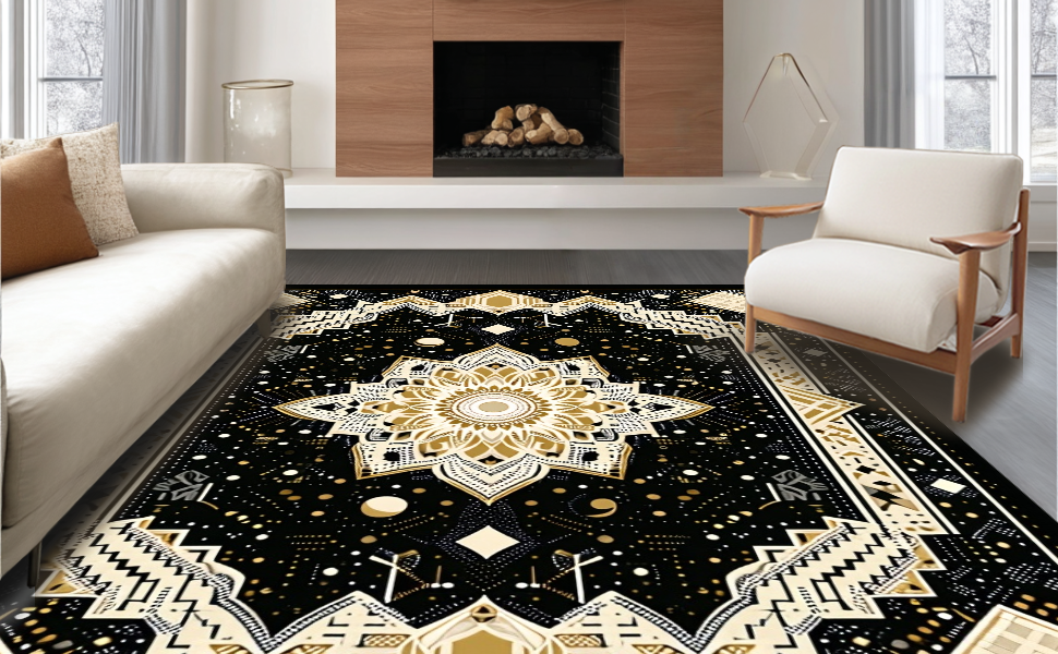 Ultra Soft Area Rug, Non Slip, Stain Resistant, Washable Area Rugs for Living Room, Bedroom, Contemporary Mandala Pattern Fusion(Black) Overview: