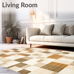 Ultra Soft Area Rug, Non Slip, Stain Resistant, Washable Area Rugs for Living Room, Bedroom, Contemporary Mid Century Area Featuring Checkered Geometric Motifs(Beige) Overview: