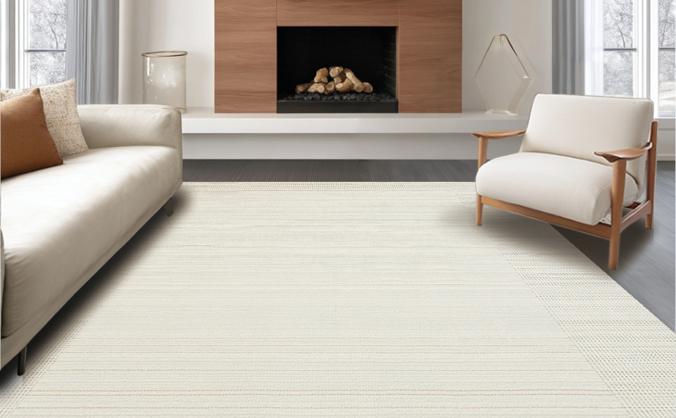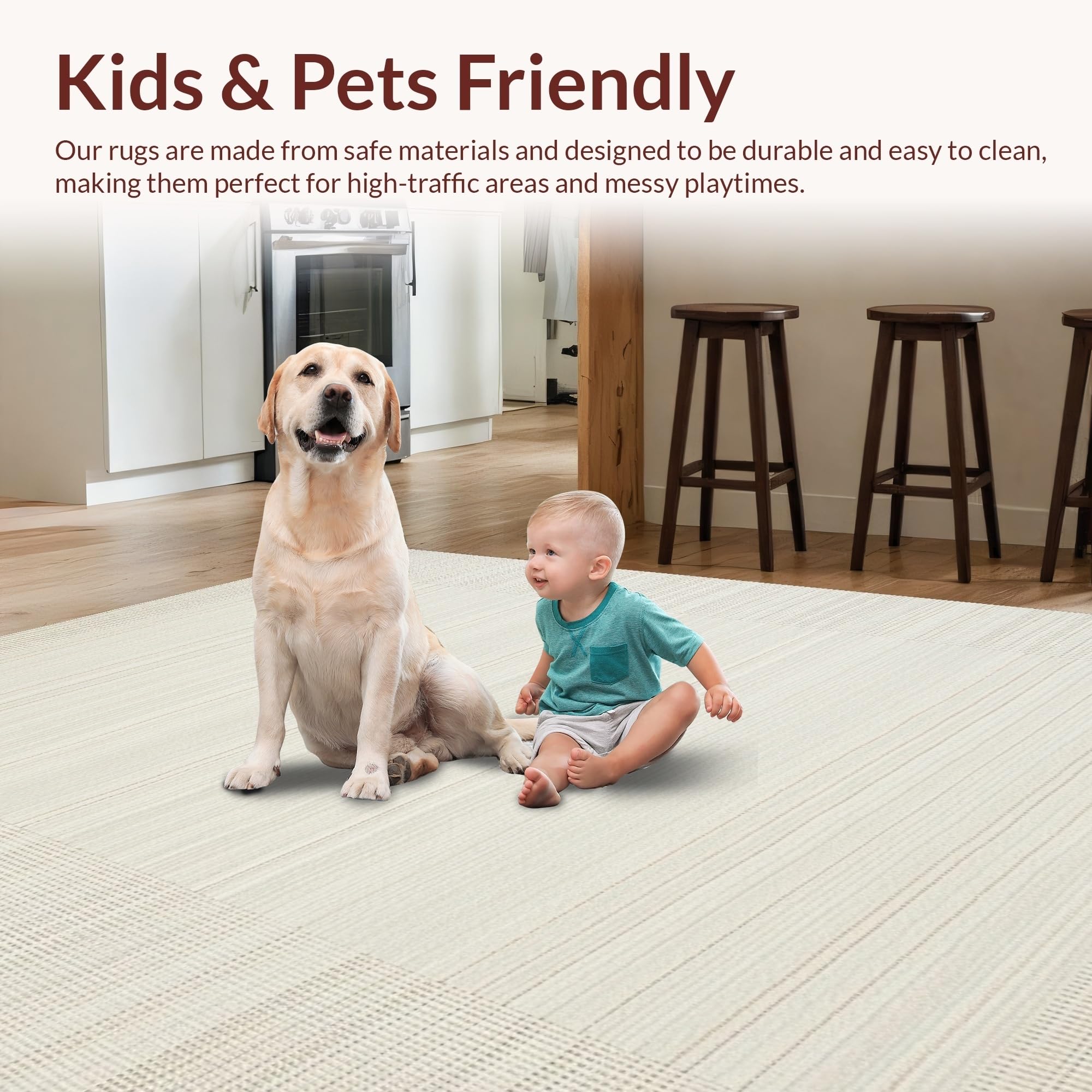Ultra Soft Area Rug, Non Slip, Stain Resistant, Washable Area Rugs for Living Room, Bedroom, Contemporary Minimalist Checkered Motif(Beige) Overview: