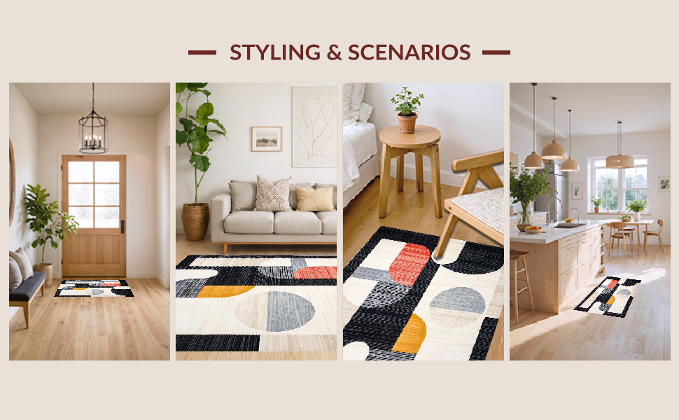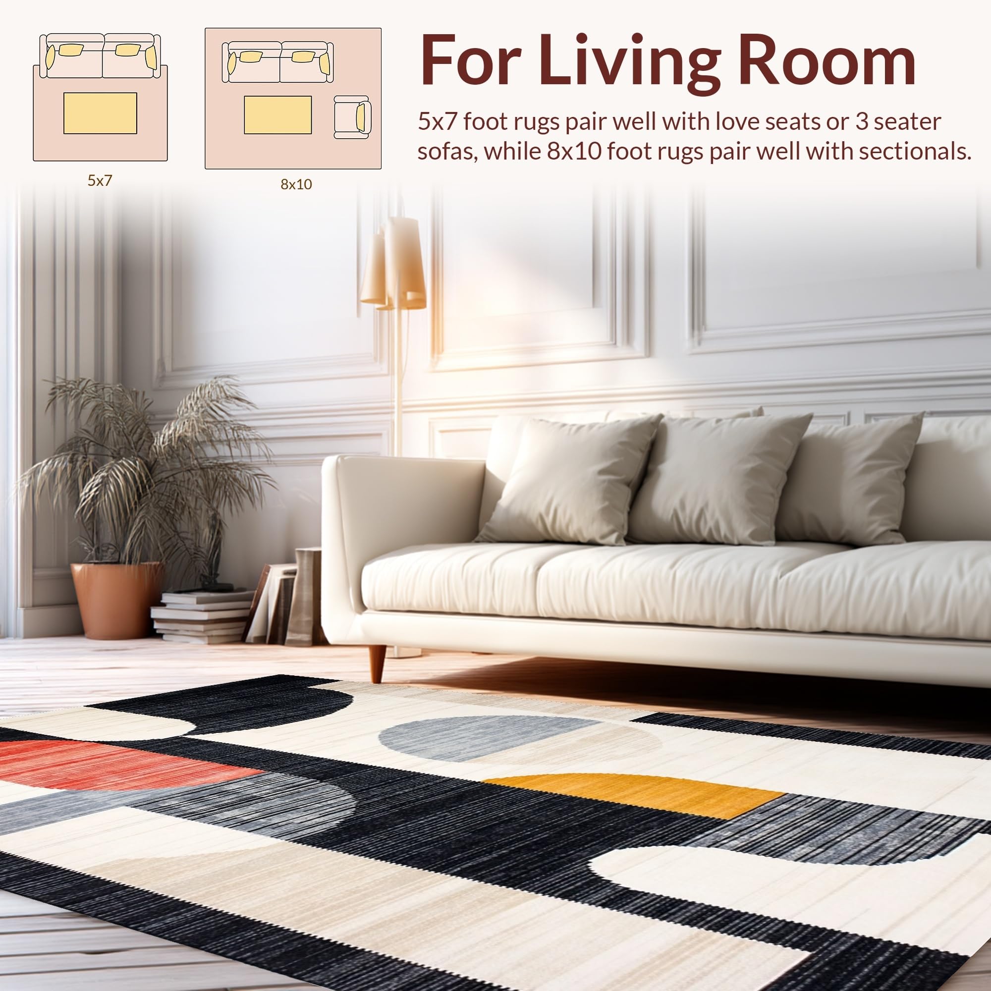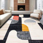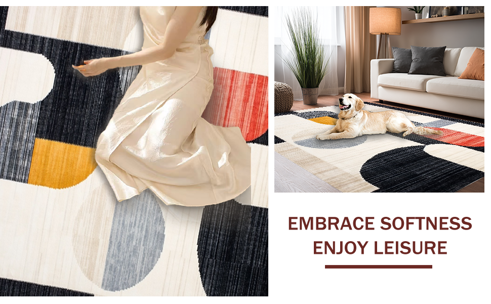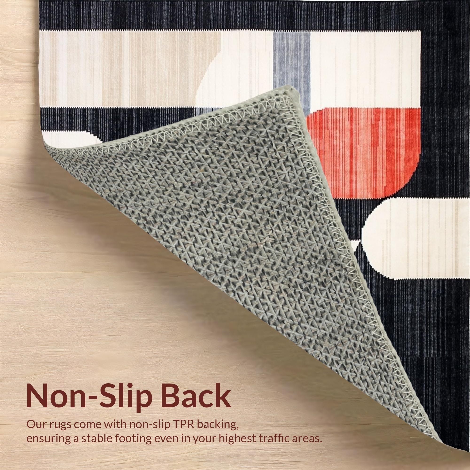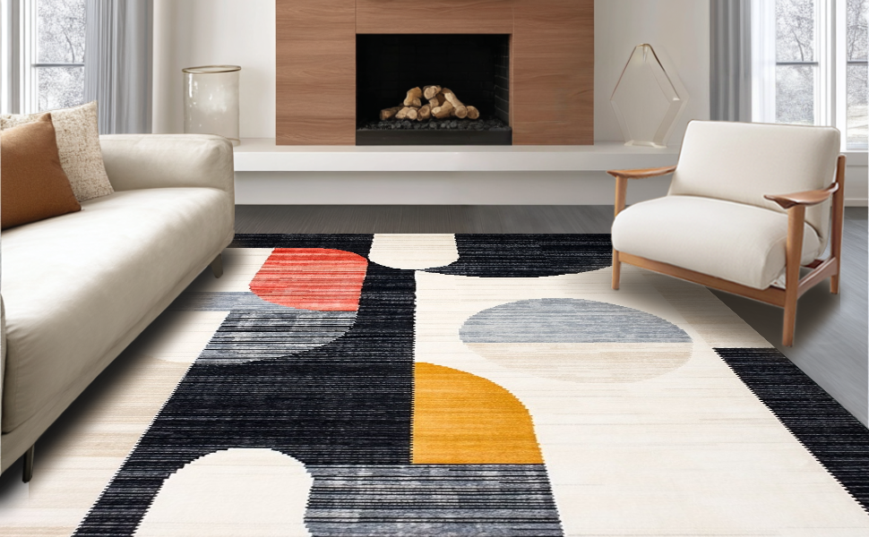 Ultra Soft Area Rug, Non Slip, Stain Resistant, Washable Area Rugs for Living Room, Bedroom, Contemporary Minimalist Curved Patterns(Black) Overview: