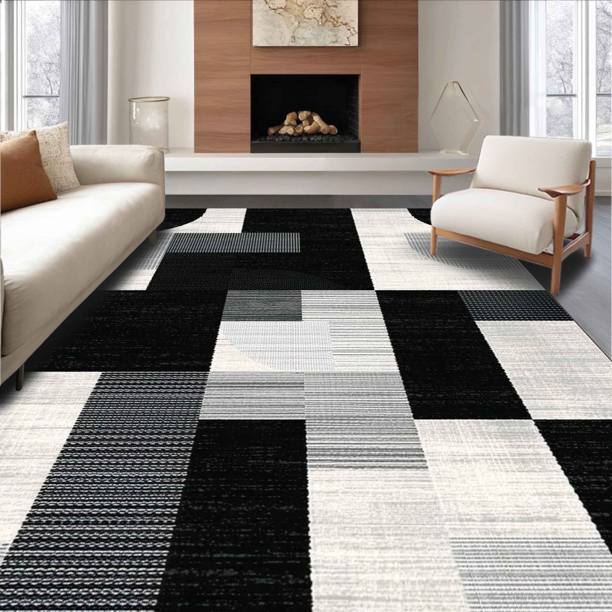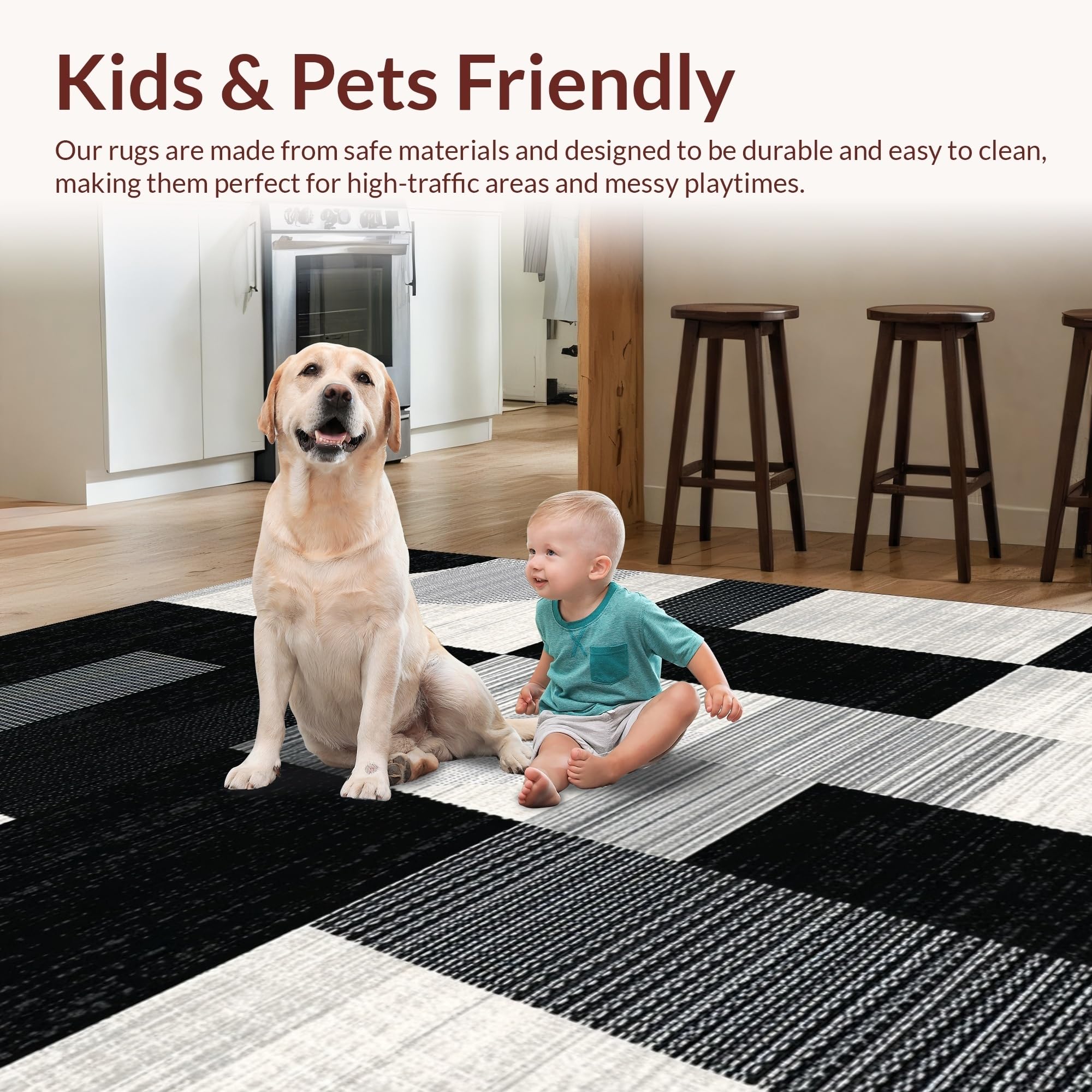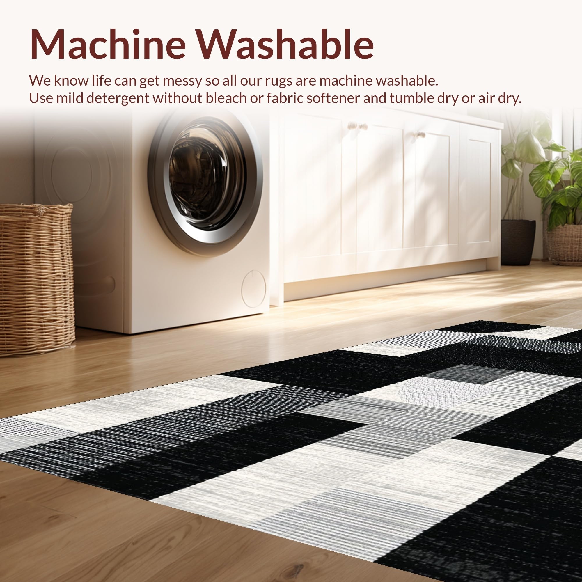 Ultra Soft Area Rug, Non Slip, Stain Resistant, Washable Area Rugs for Living Room, Bedroom, Contemporary Minimalist Design(Black) Overview: