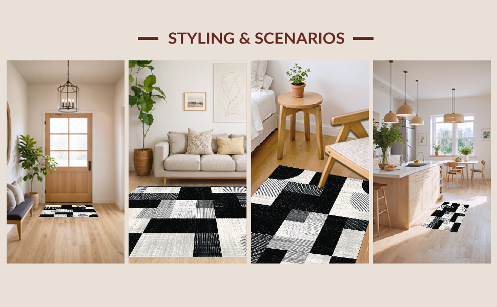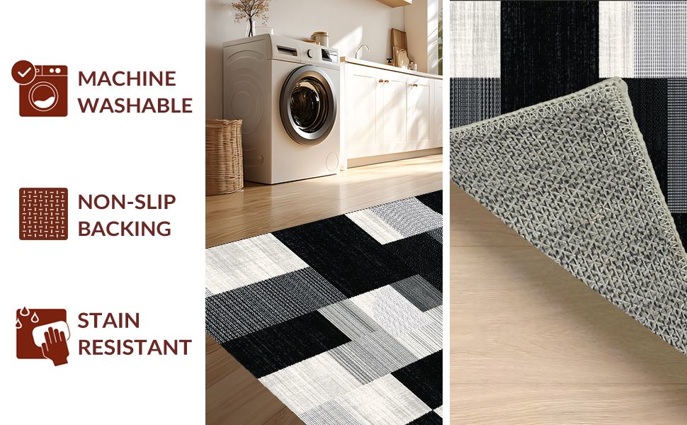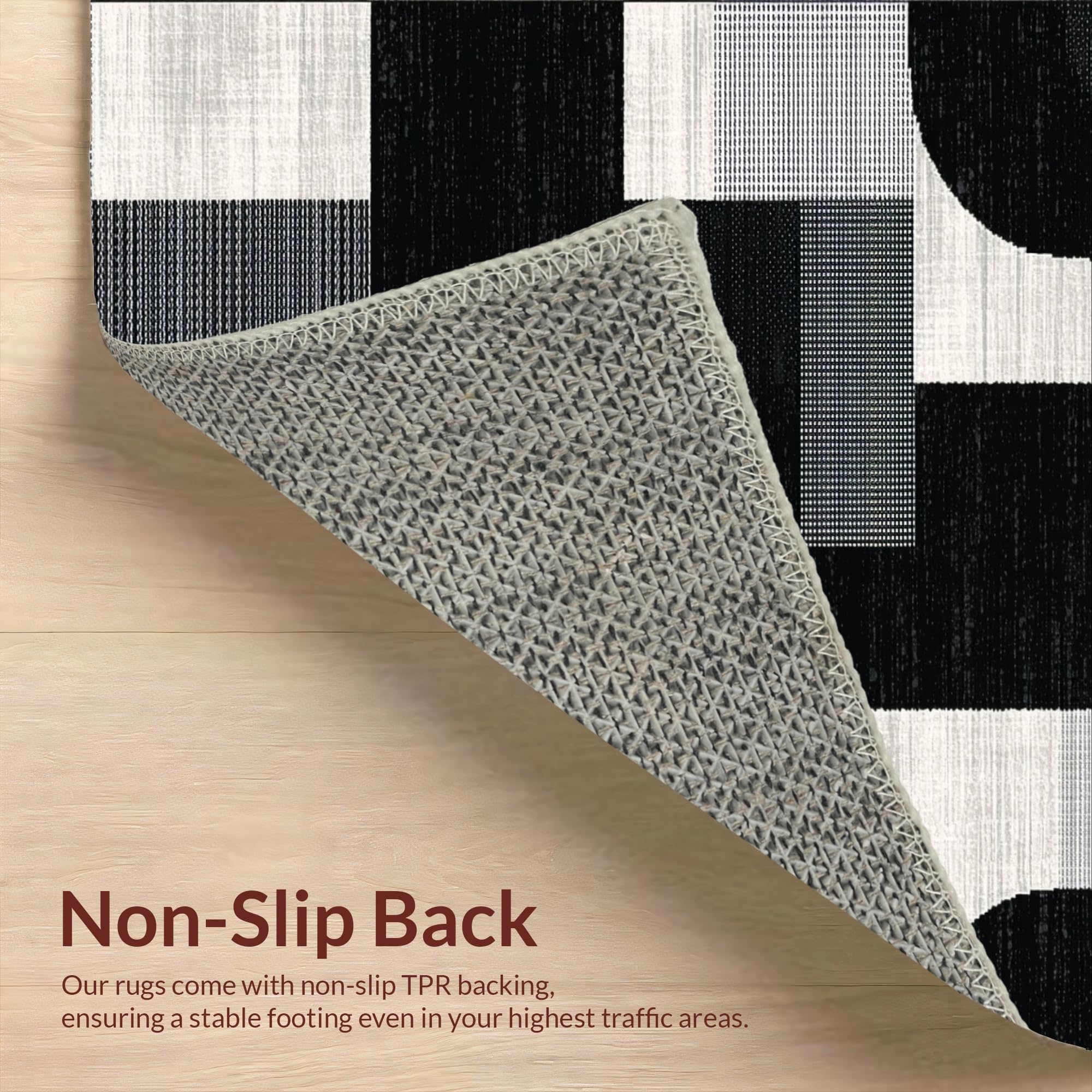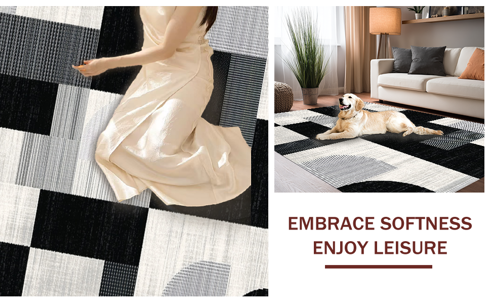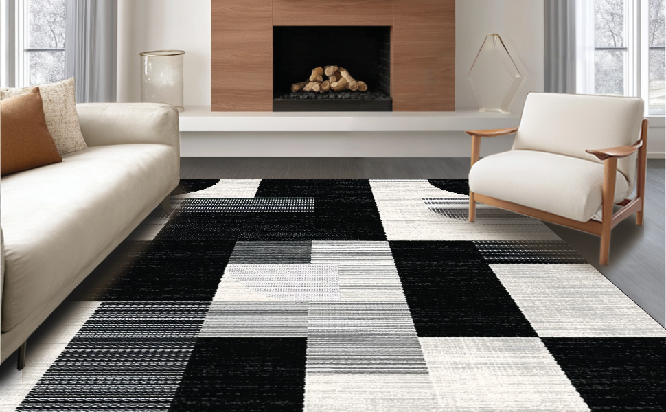 Ultra Soft Area Rug, Non Slip, Stain Resistant, Washable Area Rugs for Living Room, Bedroom, Contemporary Minimalist Design(Black) Overview: