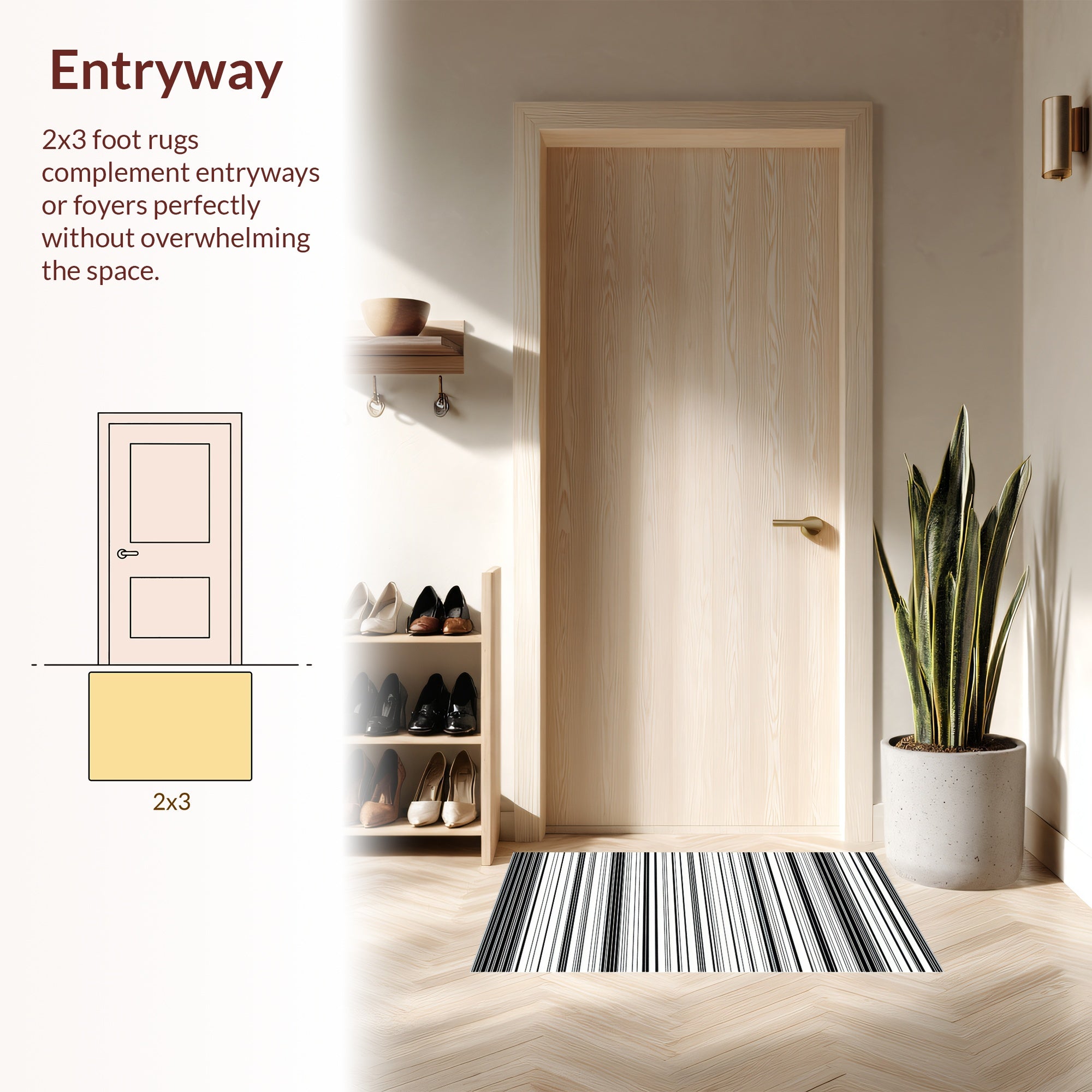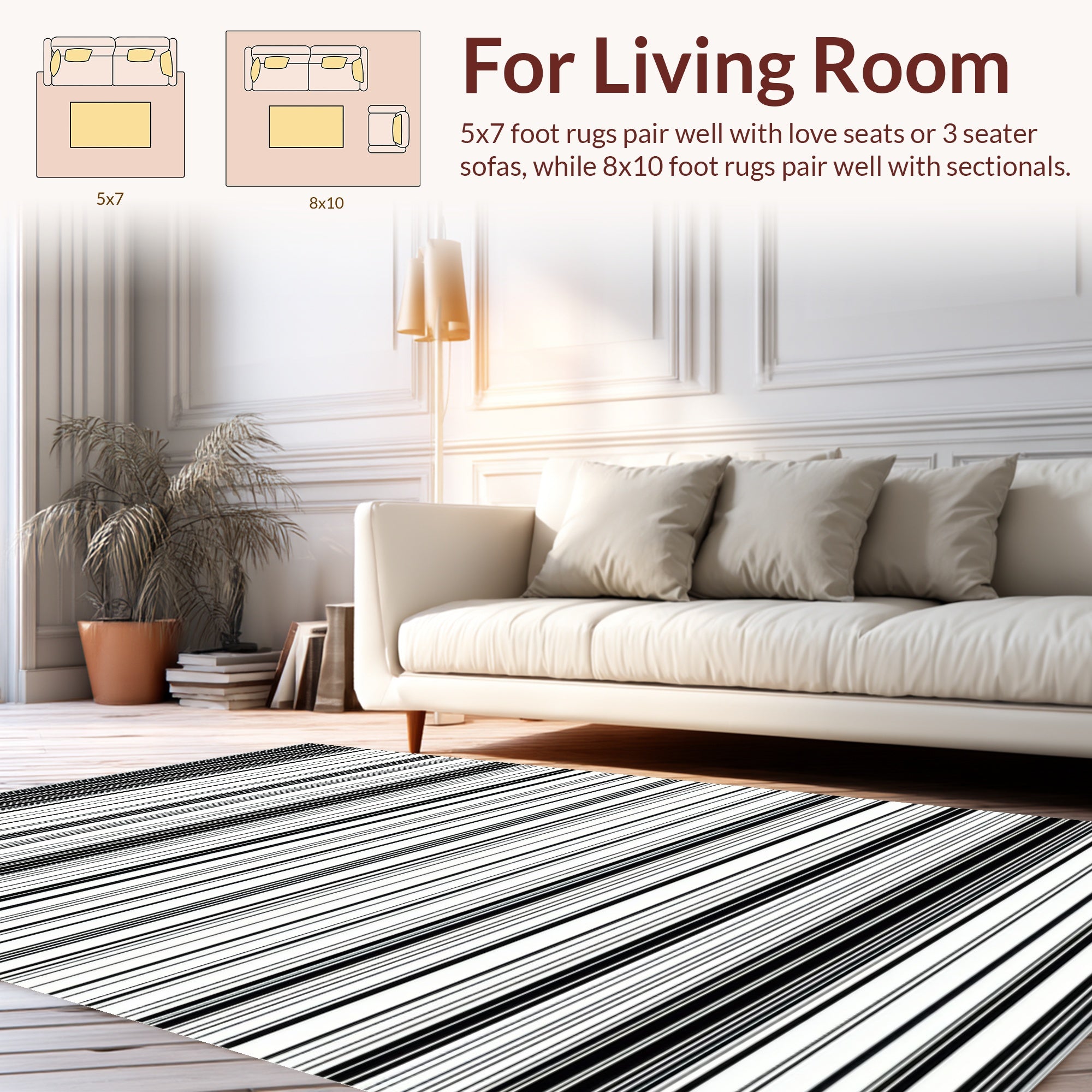 Flatwoven High Traffic Area Rug, Contemporary Minimalist Featuring Crisp Black And Parallel Stripes, Non Slip, Stain Resistant, Washable Area Rugs for Living Room, Bedroom (Gray) Overview: