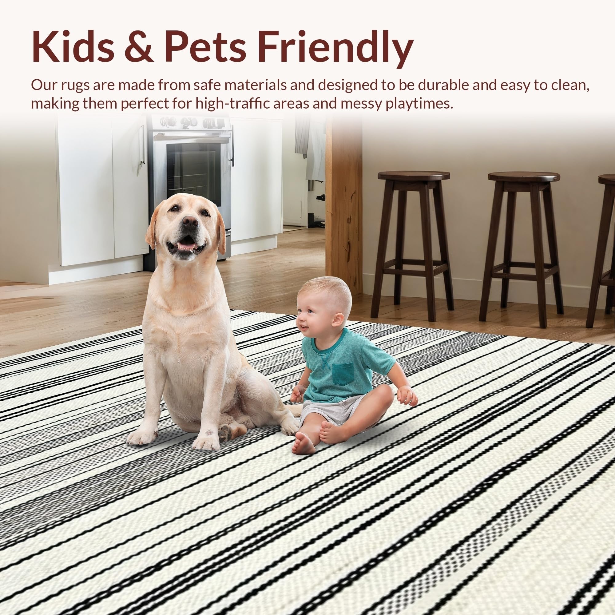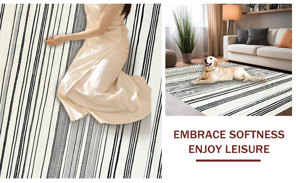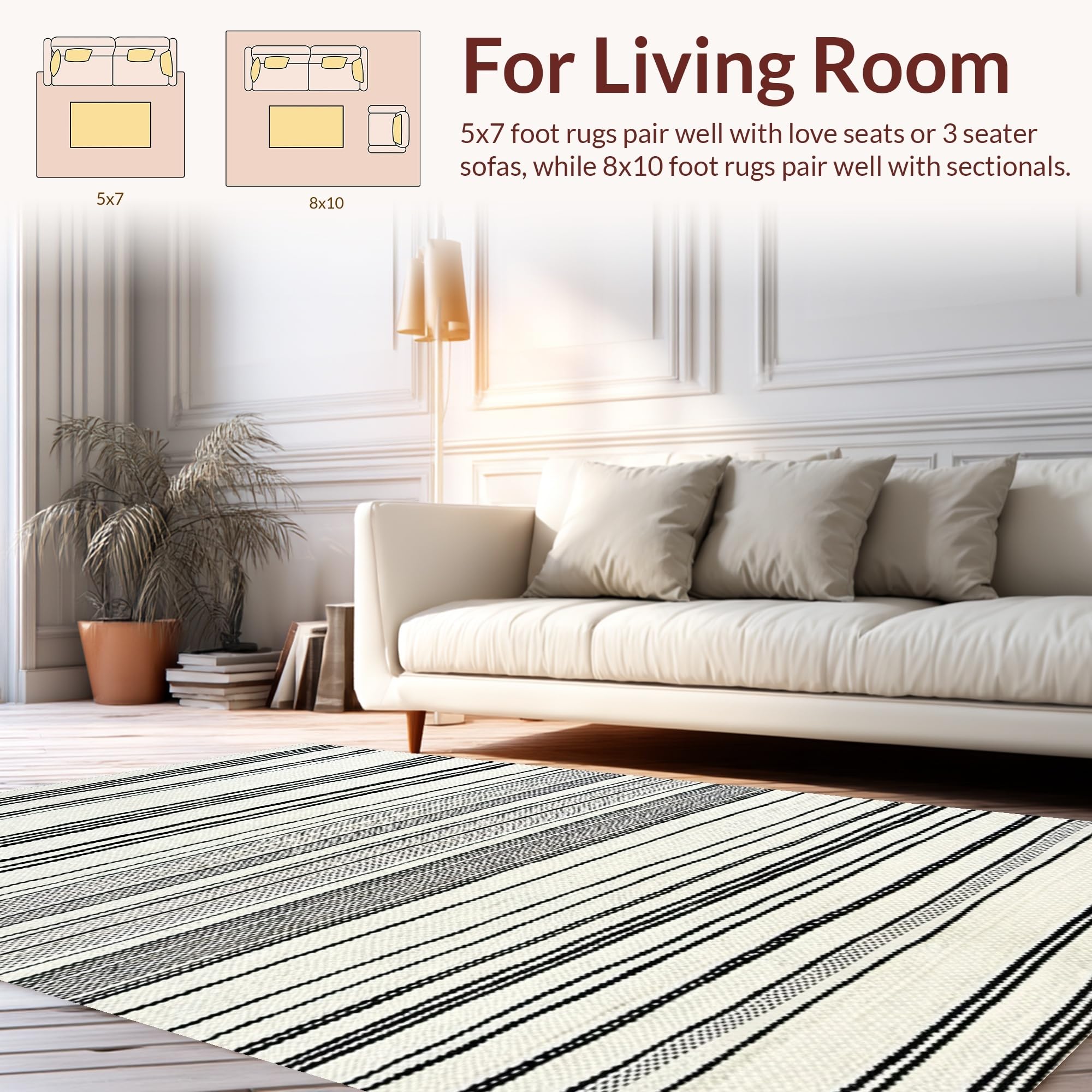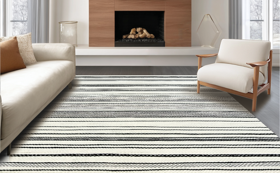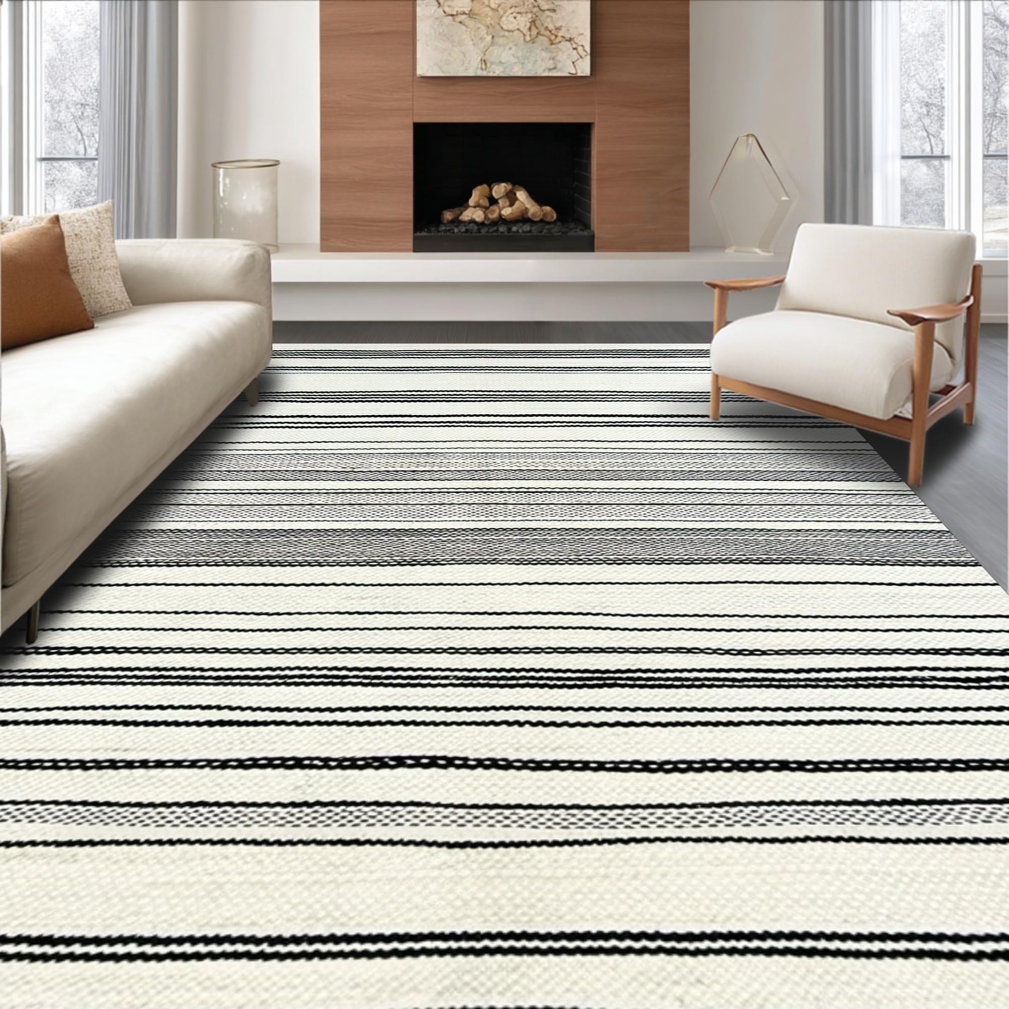 Ultra Soft Area Rug, Non Slip, Stain Resistant, Washable Area Rugs for Living Room, Bedroom, Contemporary Minimalist Stripe Aesthetic(White) Overview: