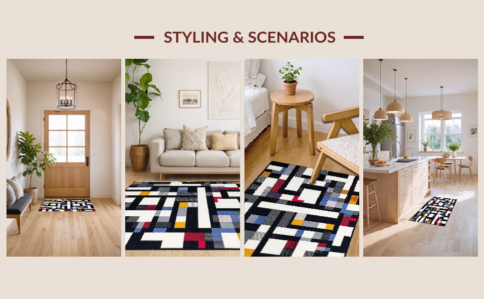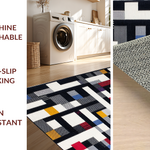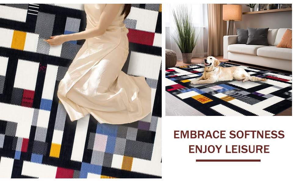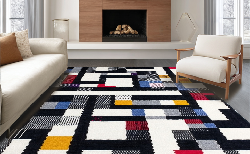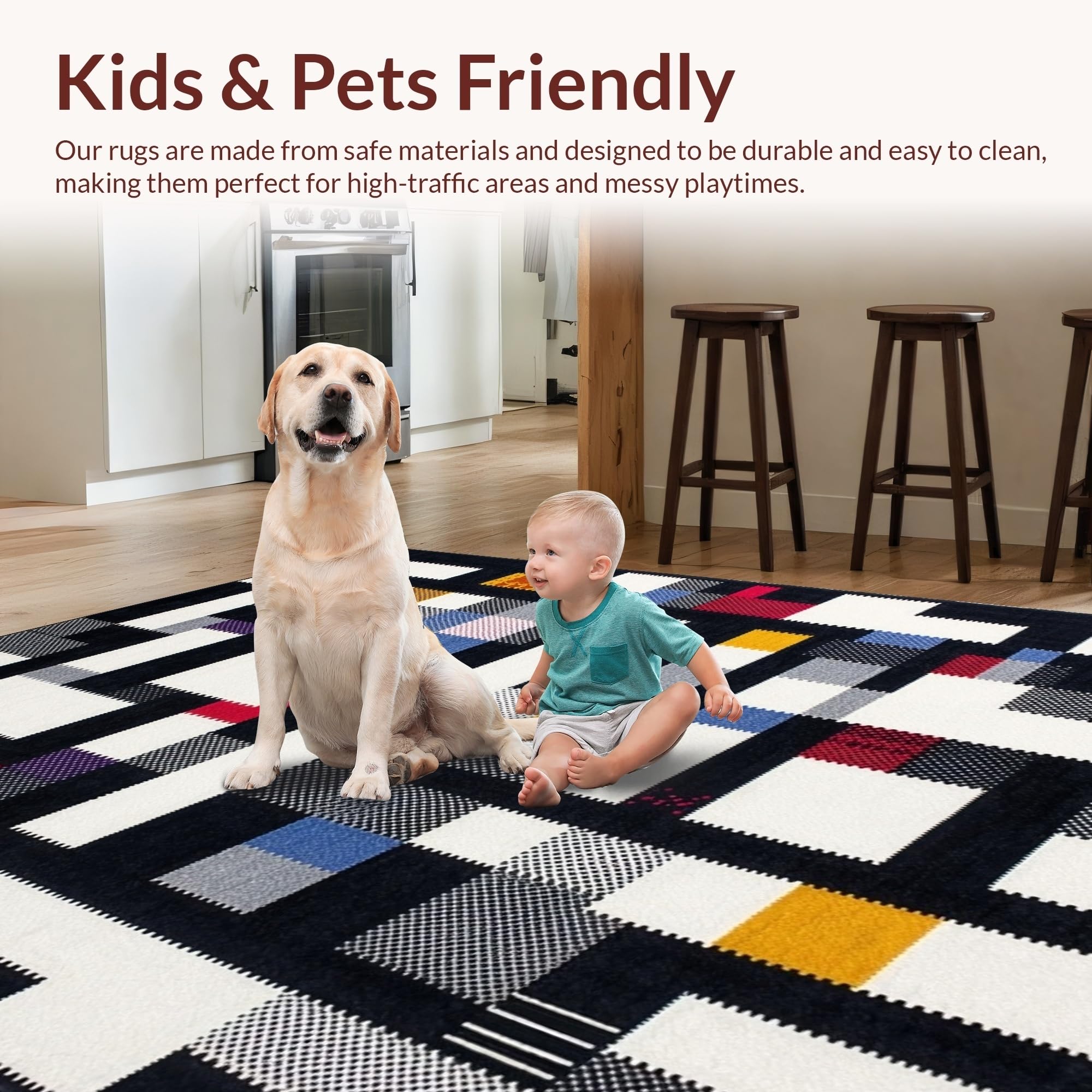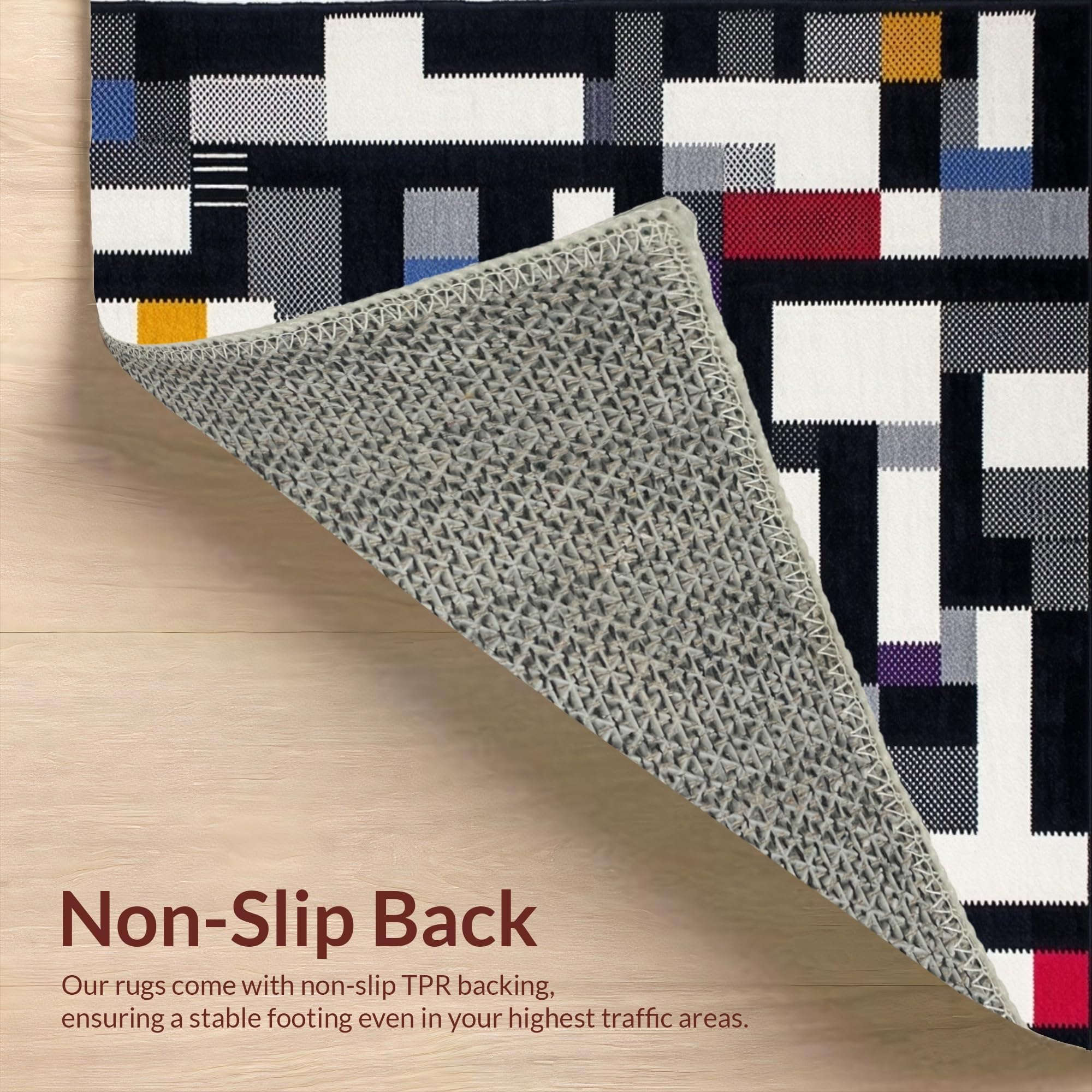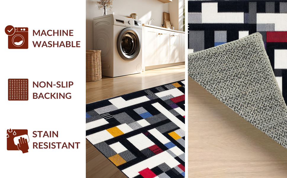 Ultra Soft Area Rug, Non Slip, Stain Resistant, Washable Area Rugs for Living Room, Bedroom, Contemporary Minimalist Textual Style(Black) Overview:
