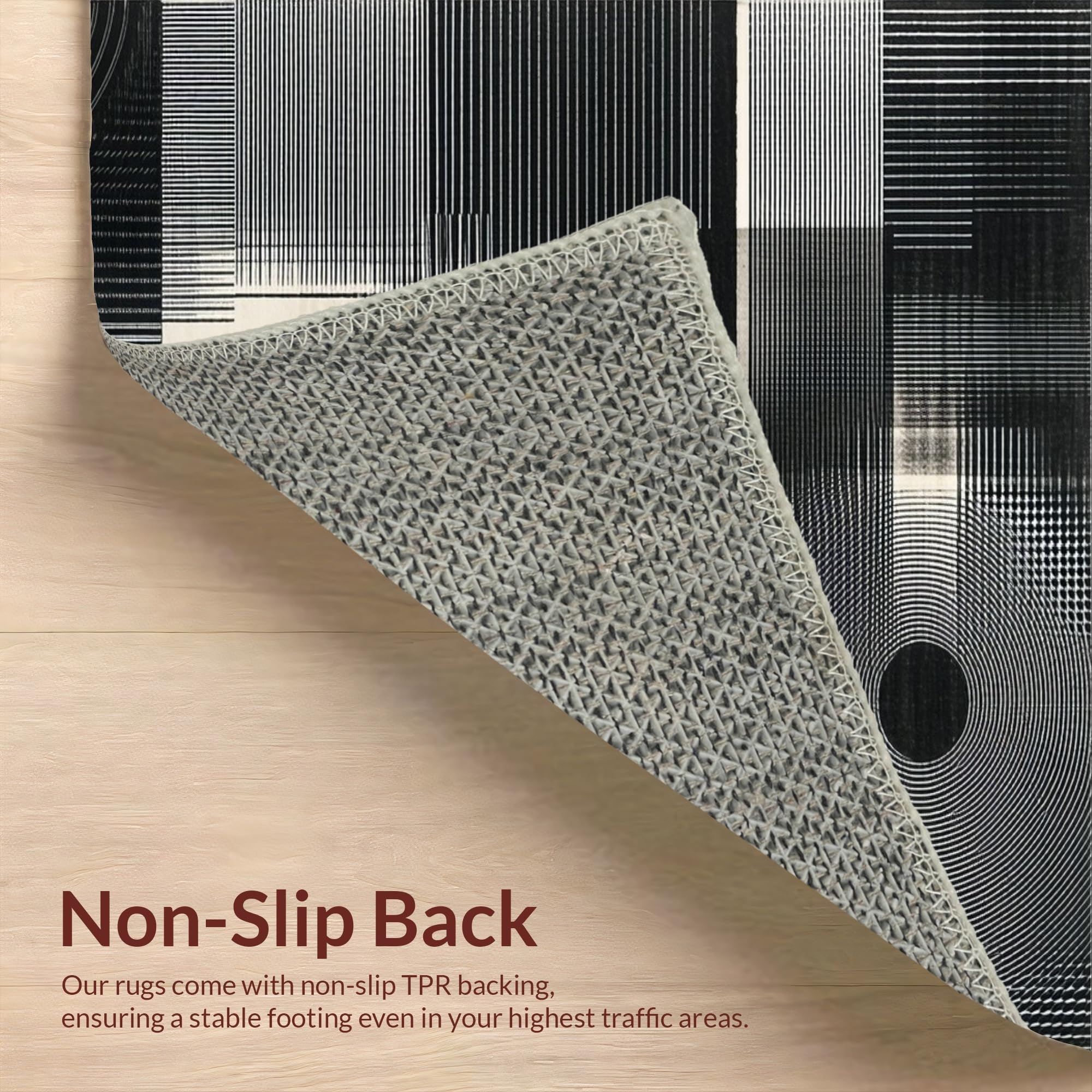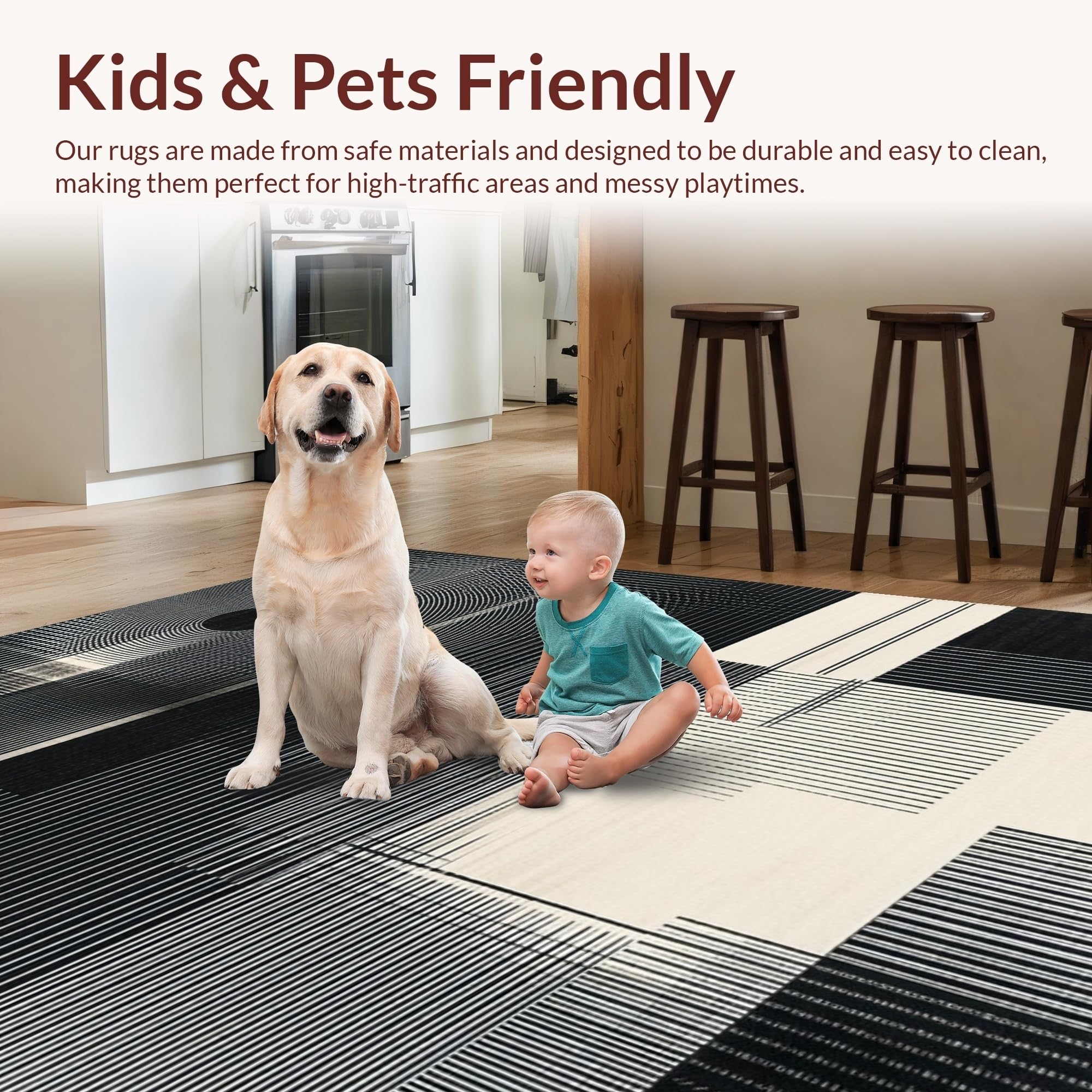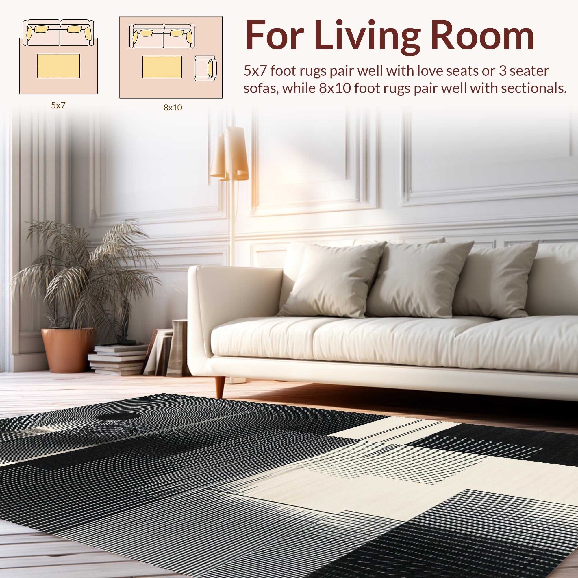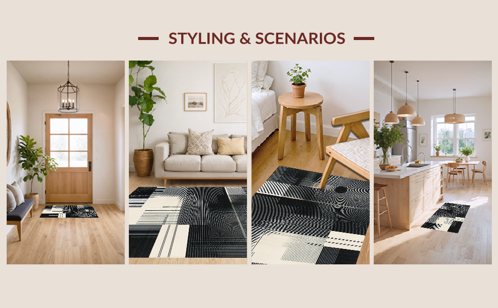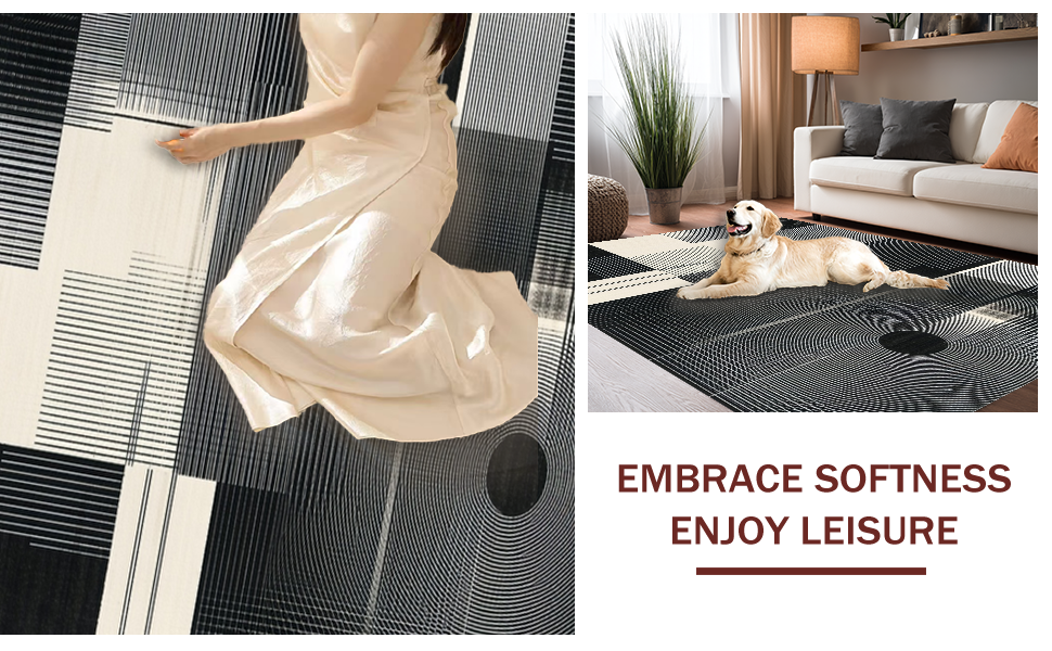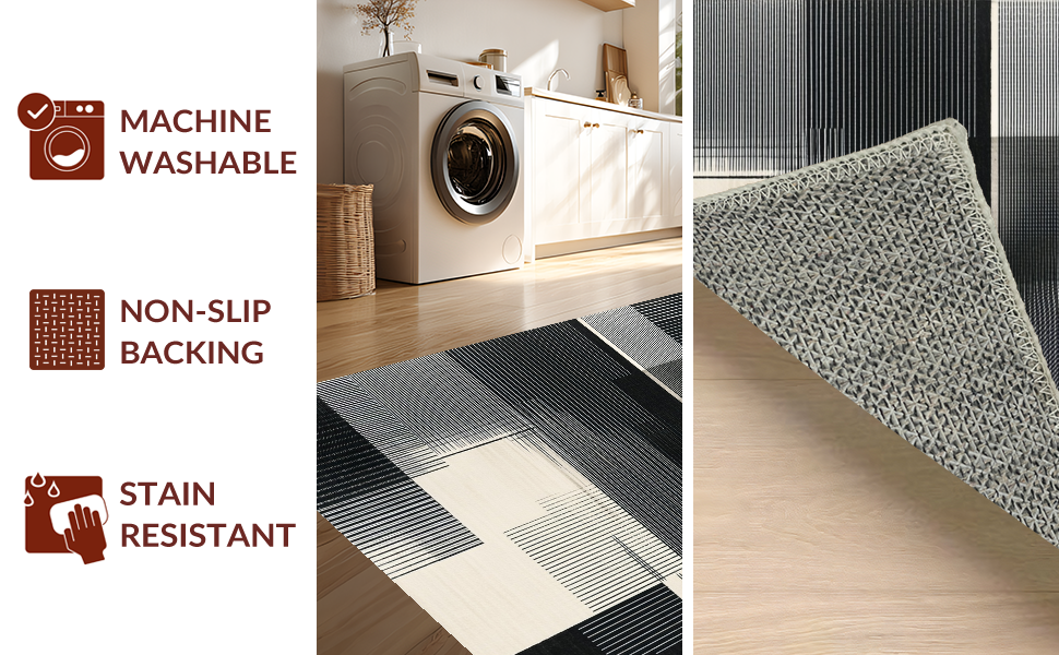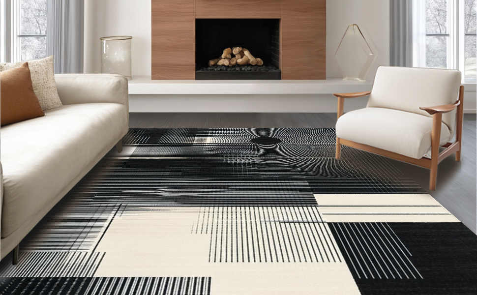 Ultra Soft Area Rug, Non Slip, Stain Resistant, Washable Area Rugs for Living Room, Bedroom, Contemporary Minimalist Tiled Motif(Black) Overview:
