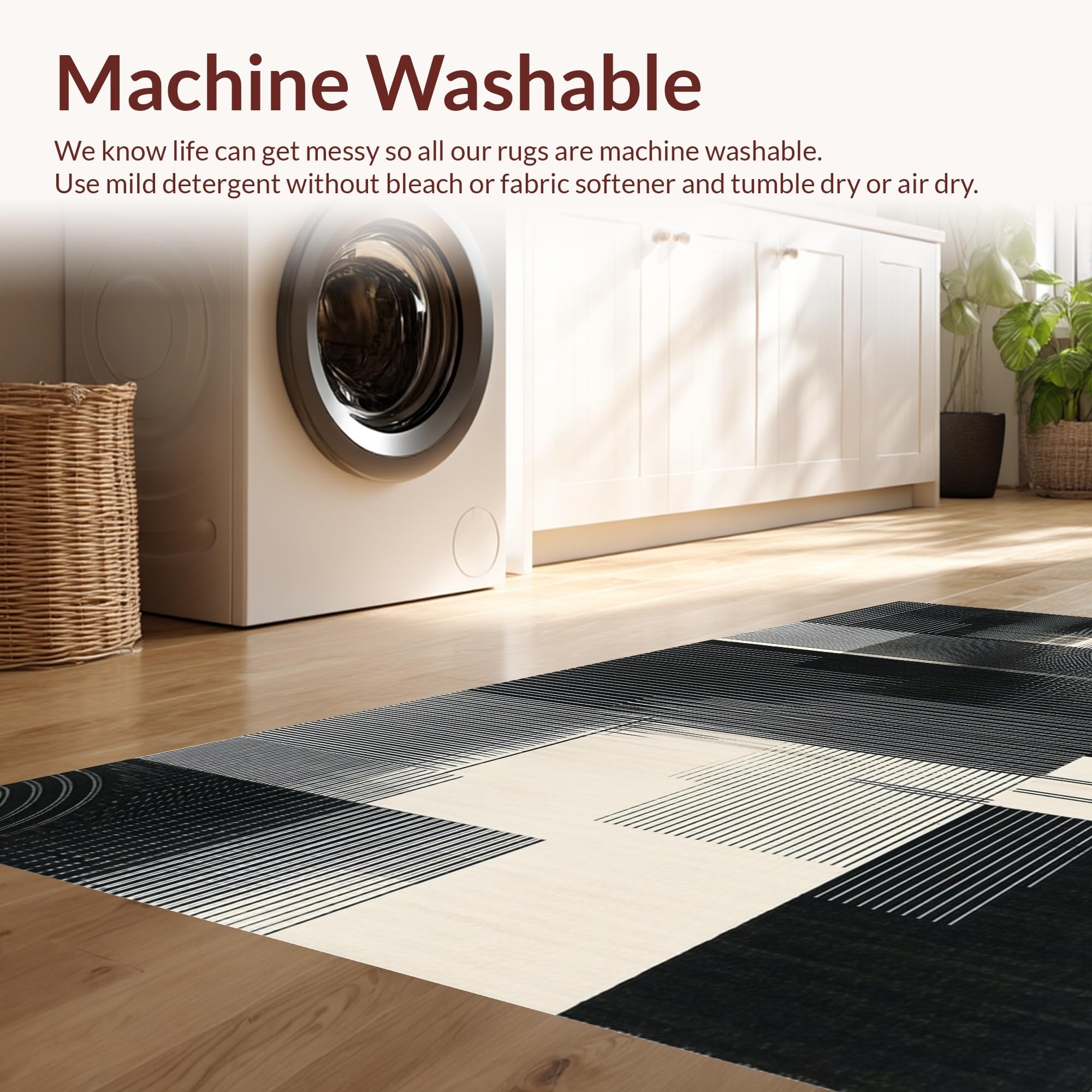 - Machine Washable: Our rugs can be easily thrown in the wash machine.
