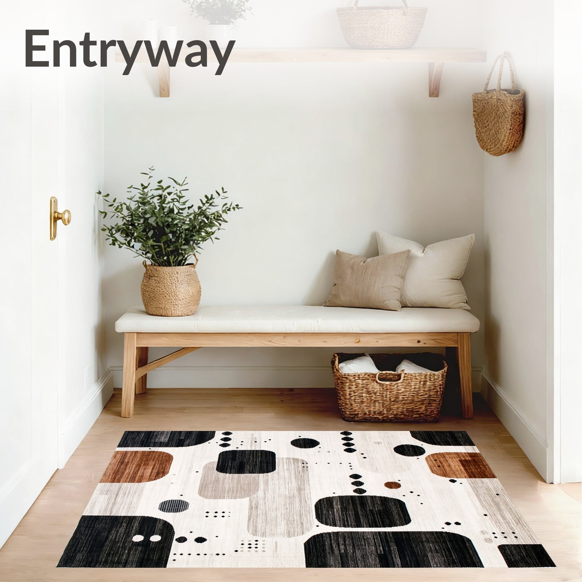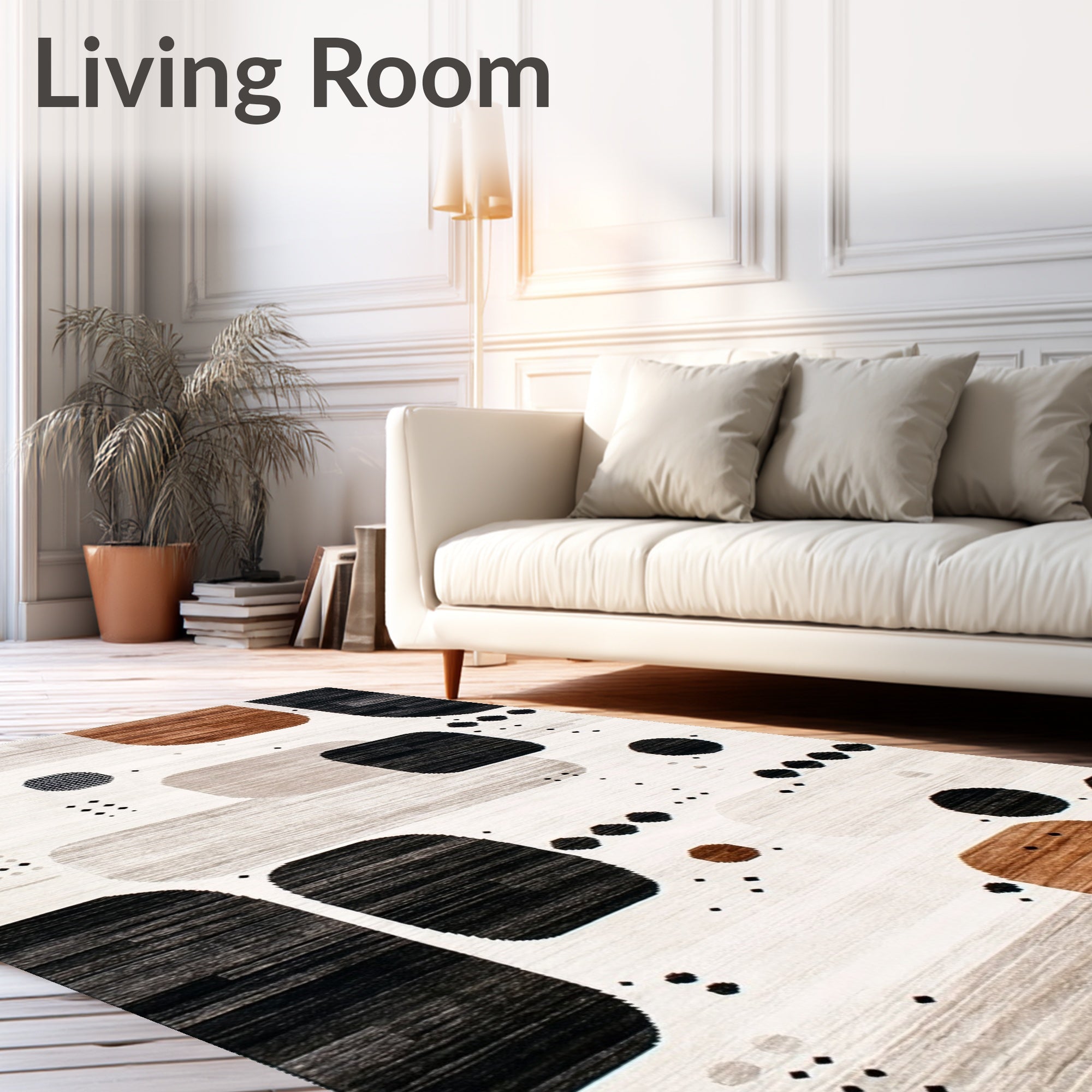 Ultra Soft Area Rug, Non Slip, Stain Resistant, Washable Area Rugs for Living Room, Bedroom, Contemporary Mocha Hues Area with Distinctive Abstract Print(White) Overview: