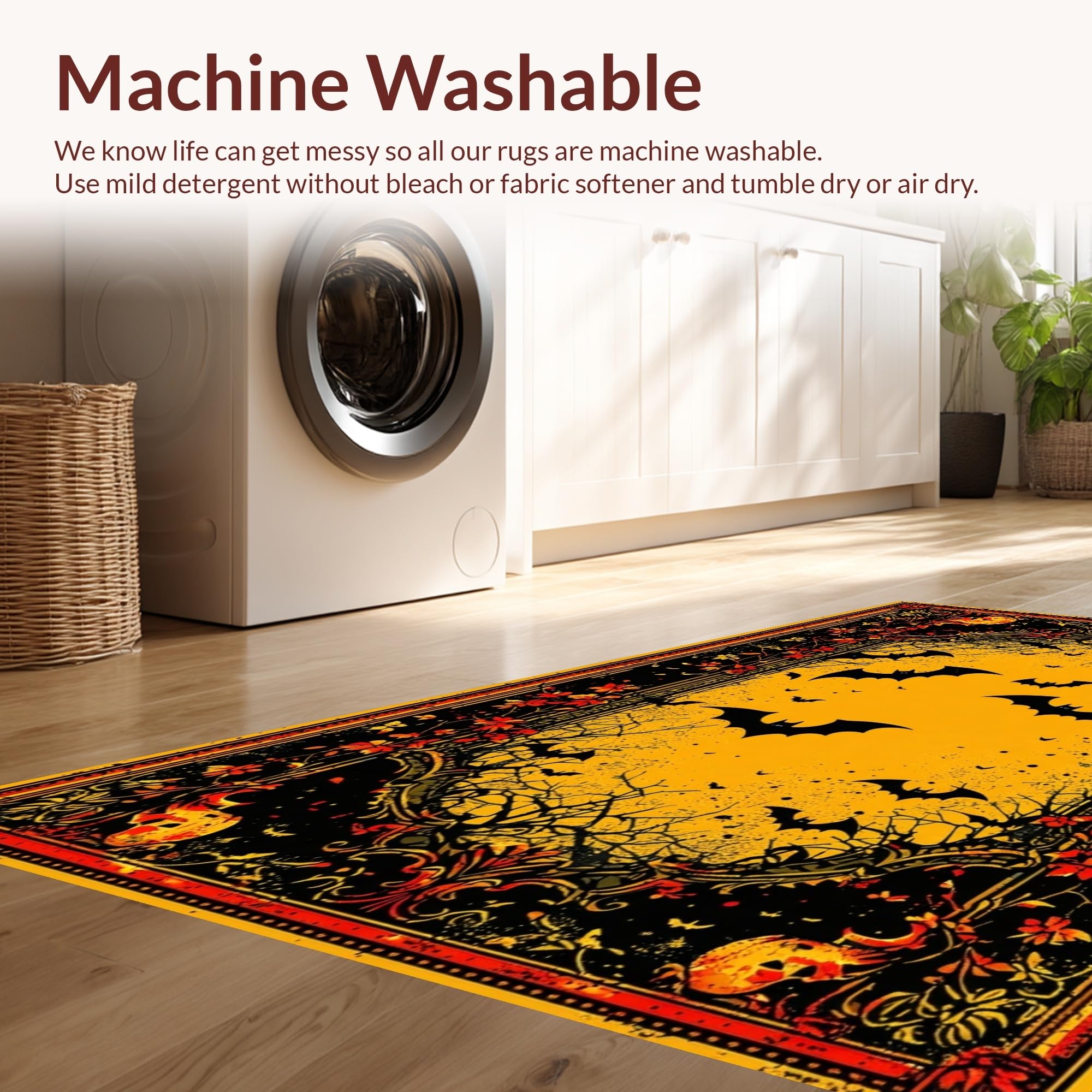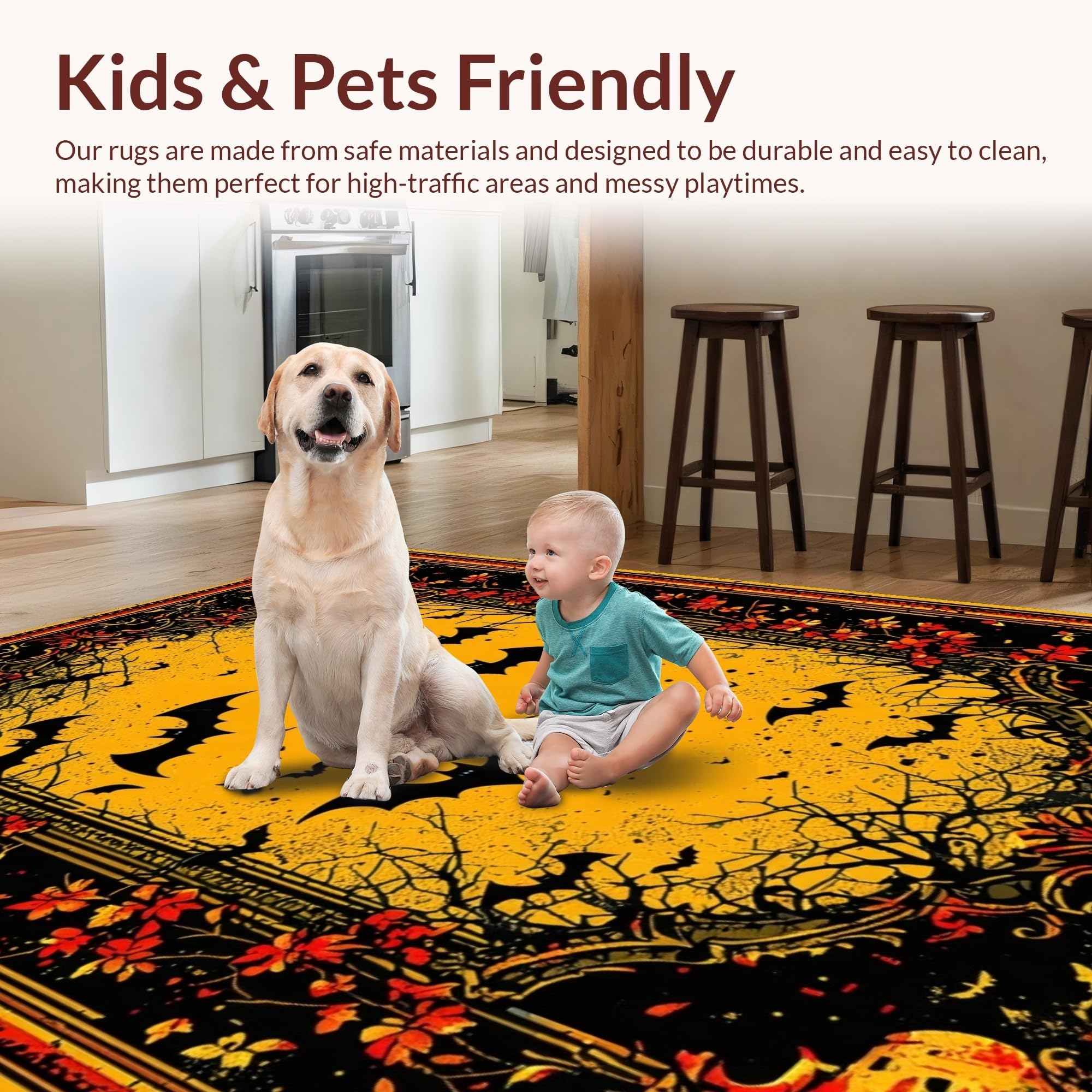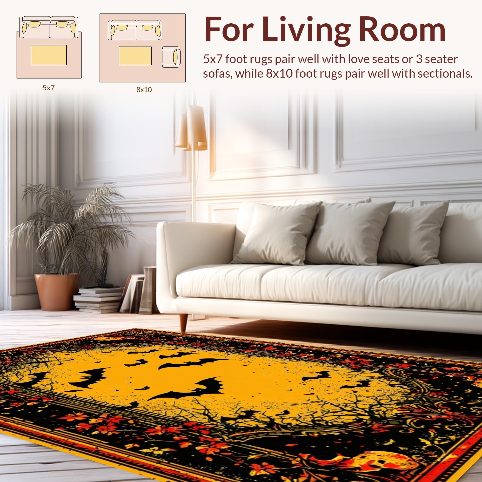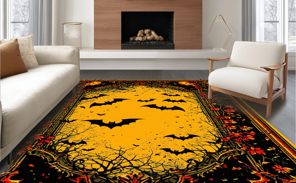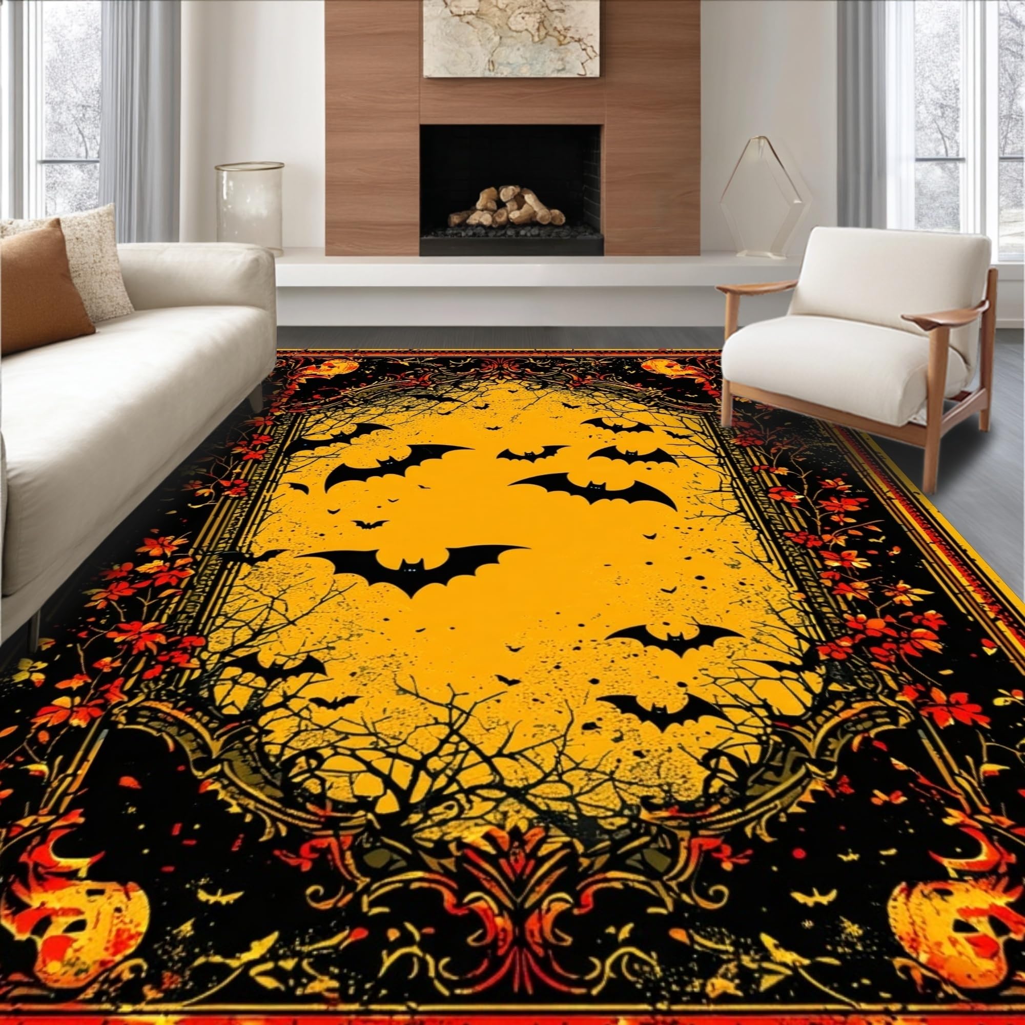 Ultra Soft Area Rug, Non Slip, Stain Resistant, Washable Area Rugs for Living Room, Bedroom, Contemporary Monochrome Bat Pattern(Orange) Overview: