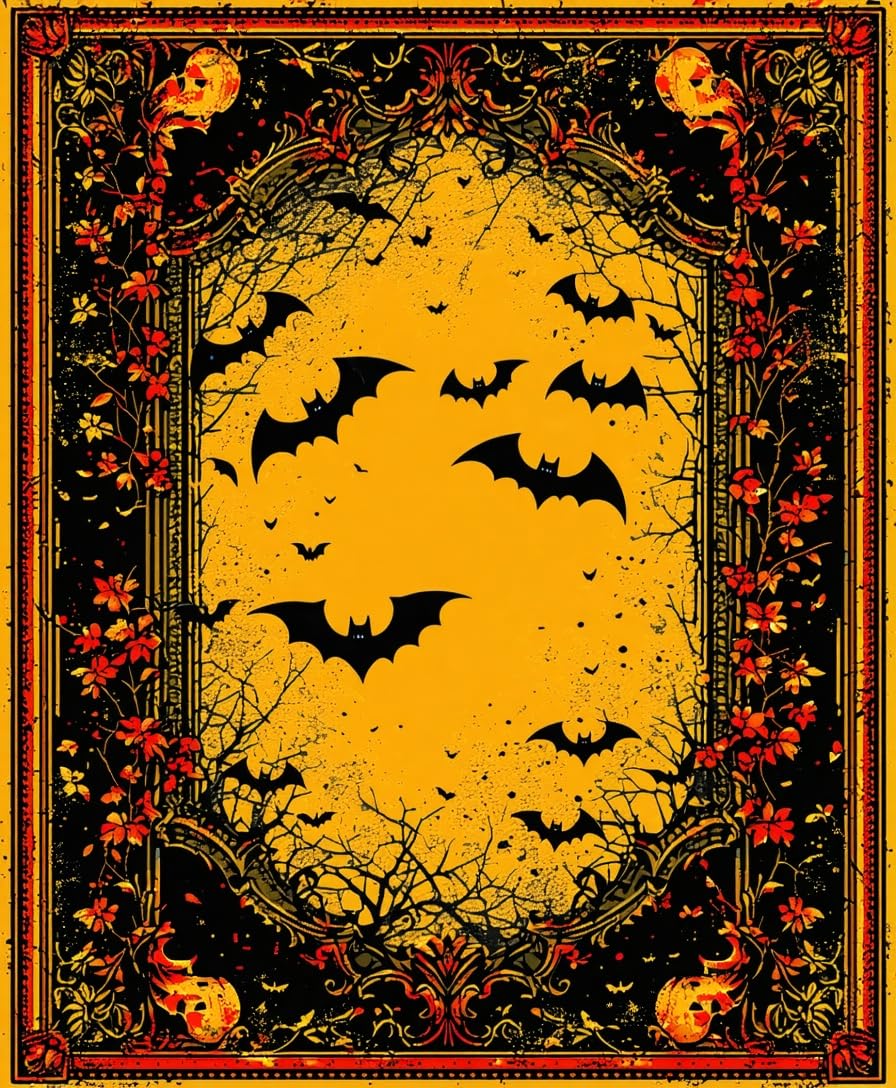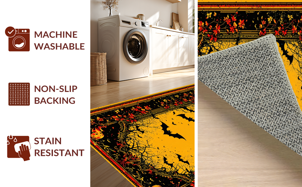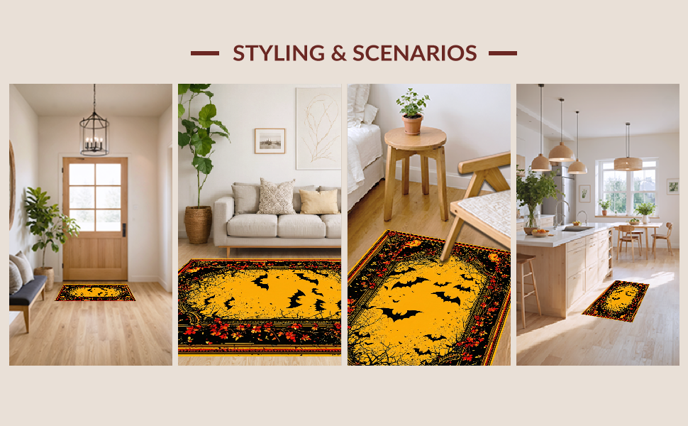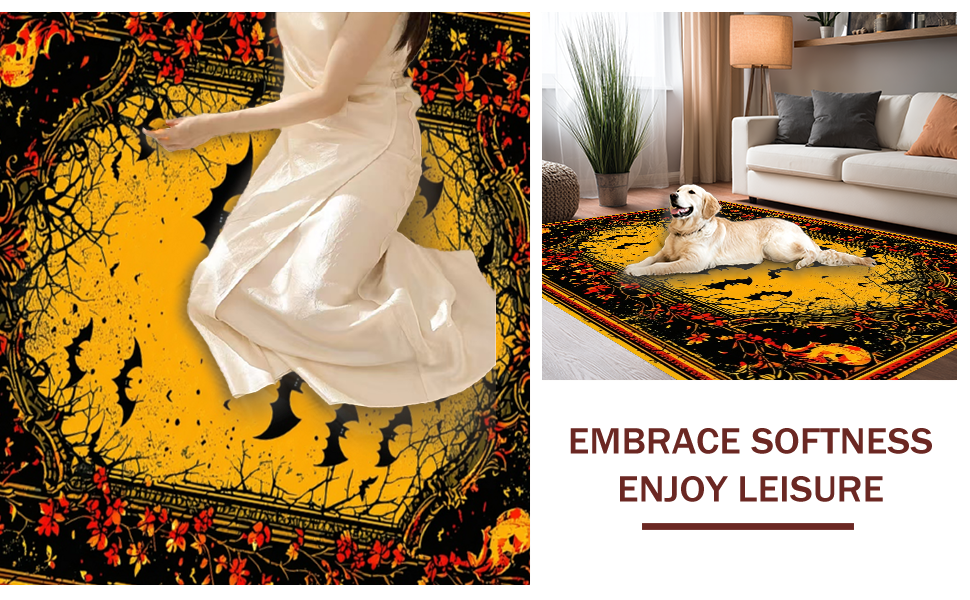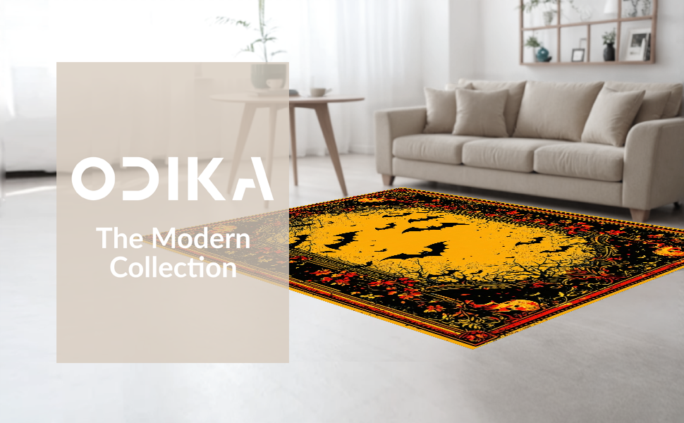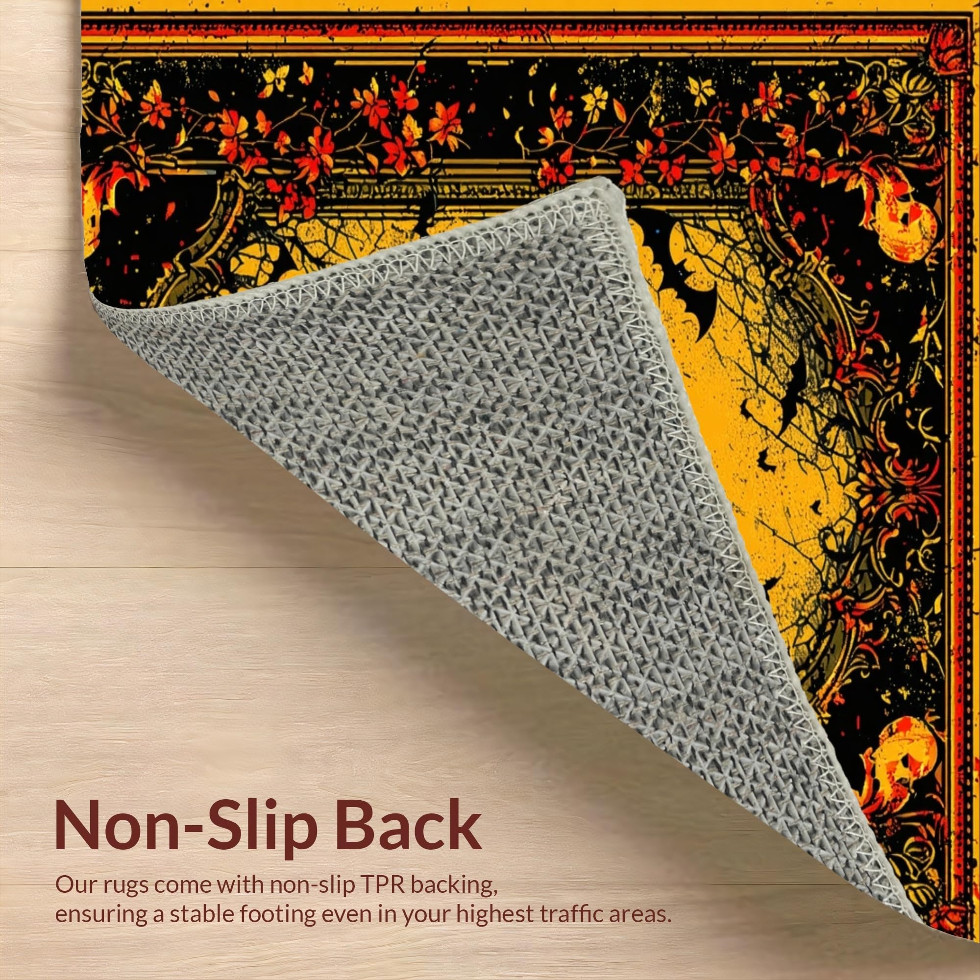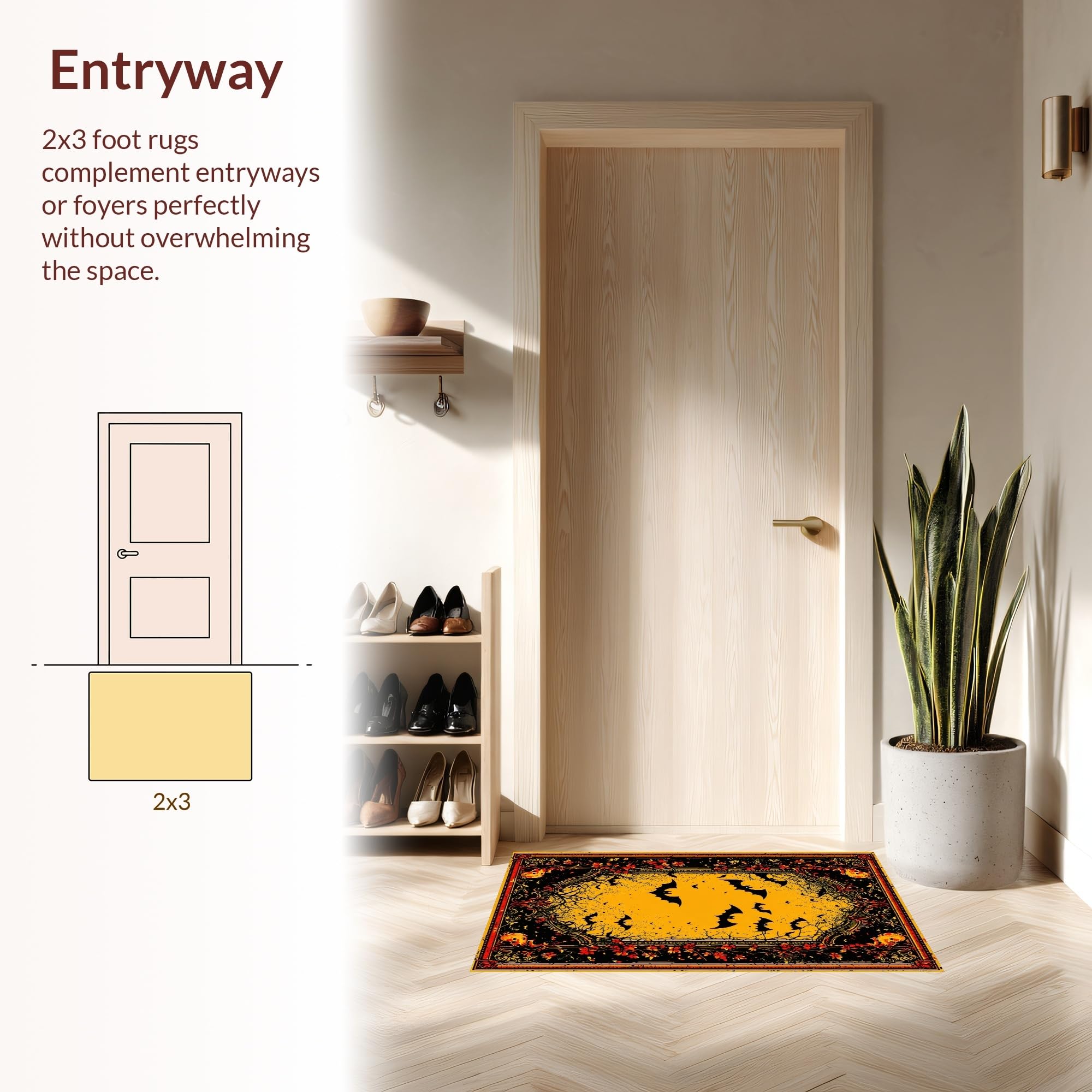 Ultra Soft Area Rug, Non Slip, Stain Resistant, Washable Area Rugs for Living Room, Bedroom, Contemporary Monochrome Bat Pattern(Orange) Overview: