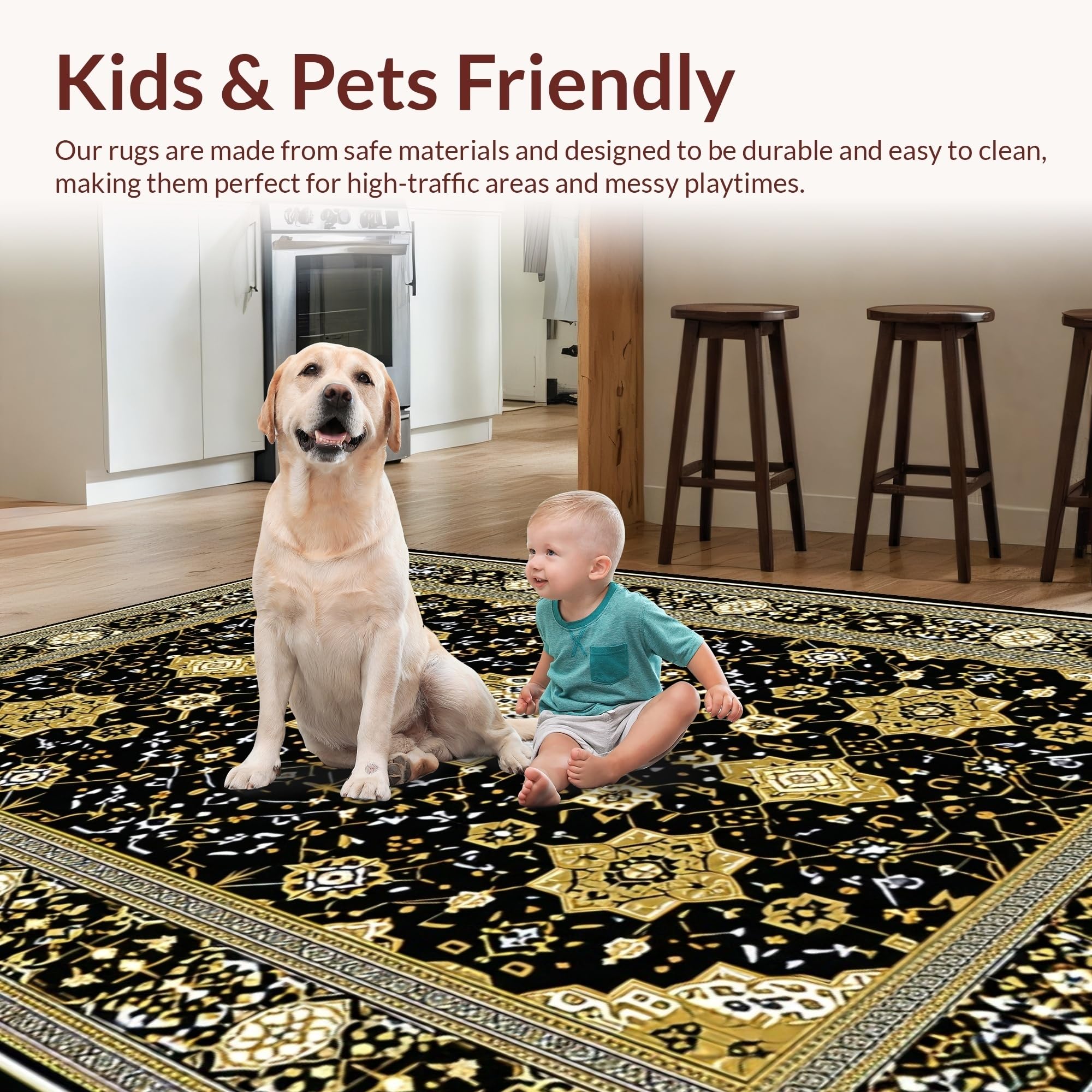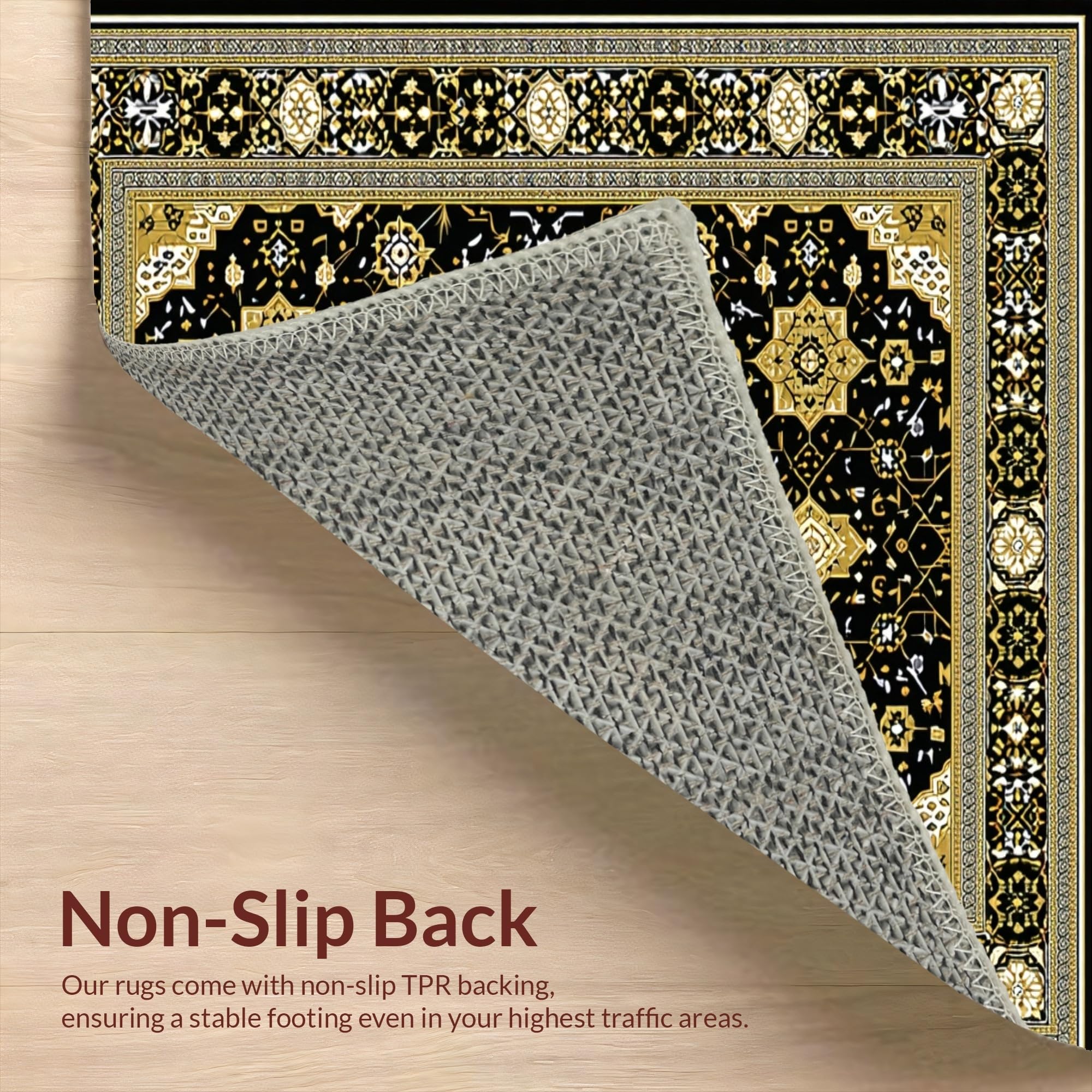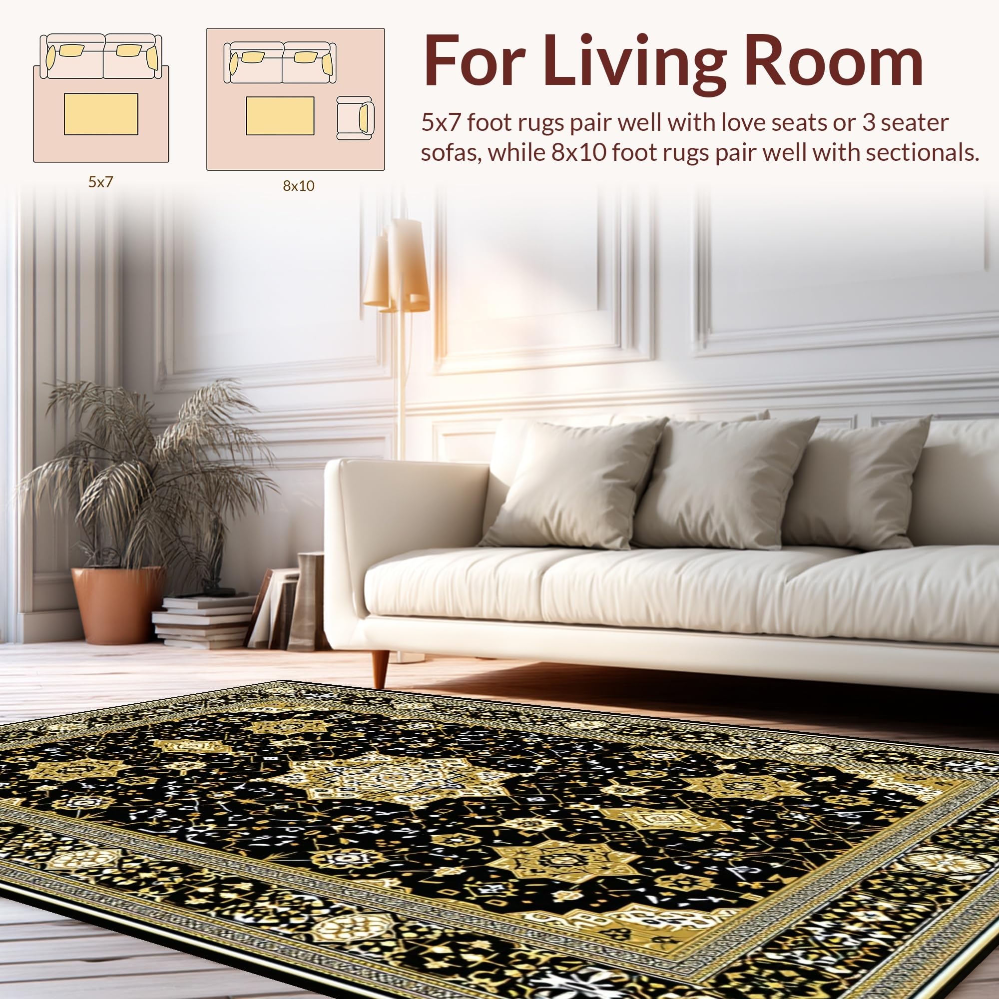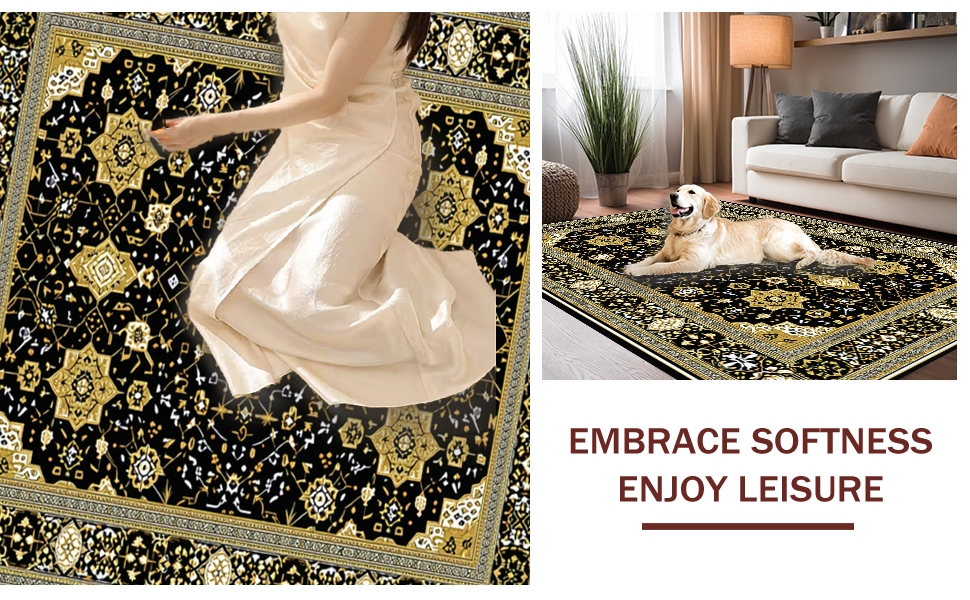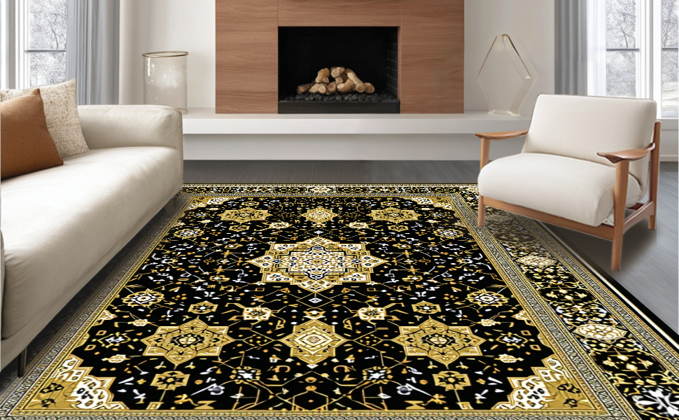 Ultra Soft Area Rug, Non Slip, Stain Resistant, Washable Area Rugs for Living Room, Bedroom, Contemporary Monochrome Geometric Design(Black) Overview: