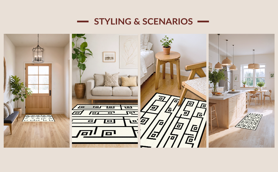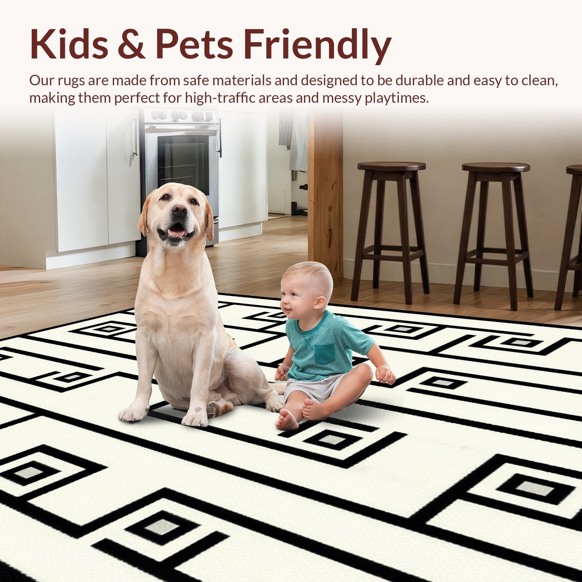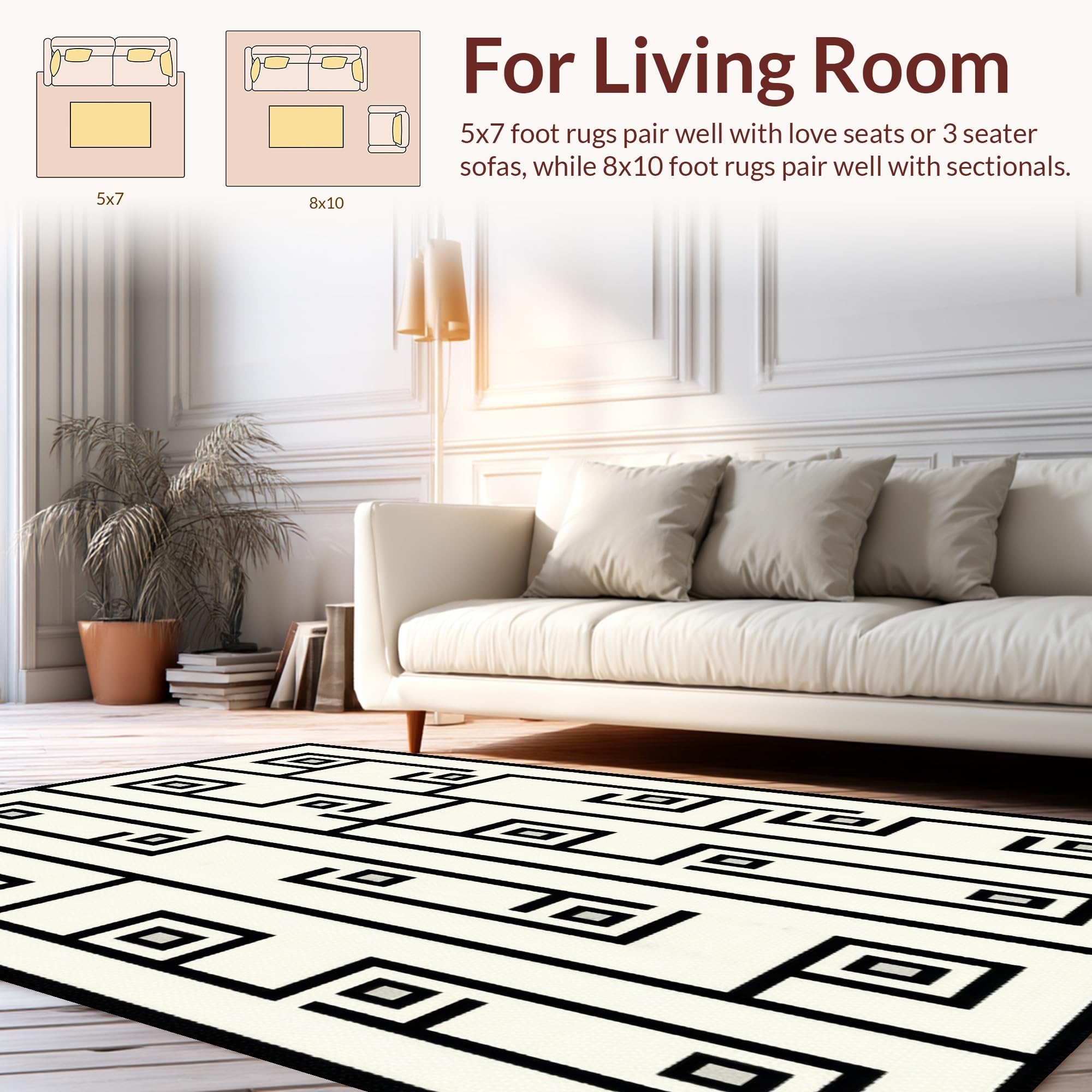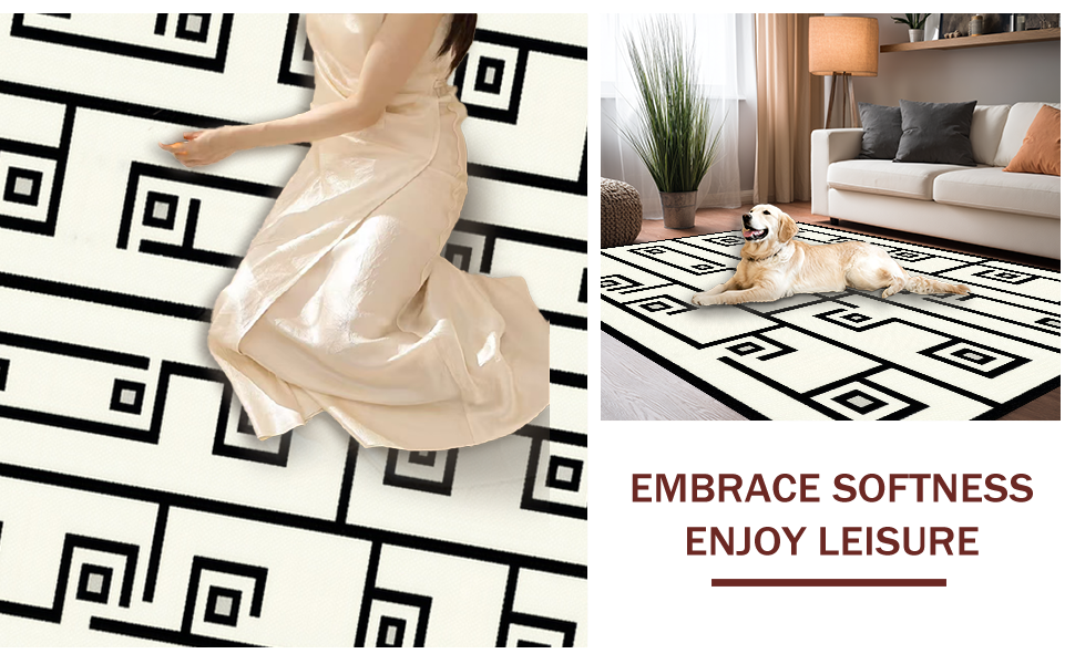 Ultra Soft Area Rug, Non Slip, Stain Resistant, Washable Area Rugs for Living Room, Bedroom, Contemporary Monochrome Geometric Elegance(Beige) Overview: