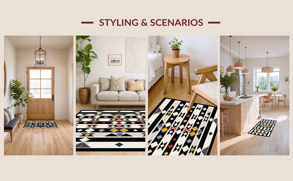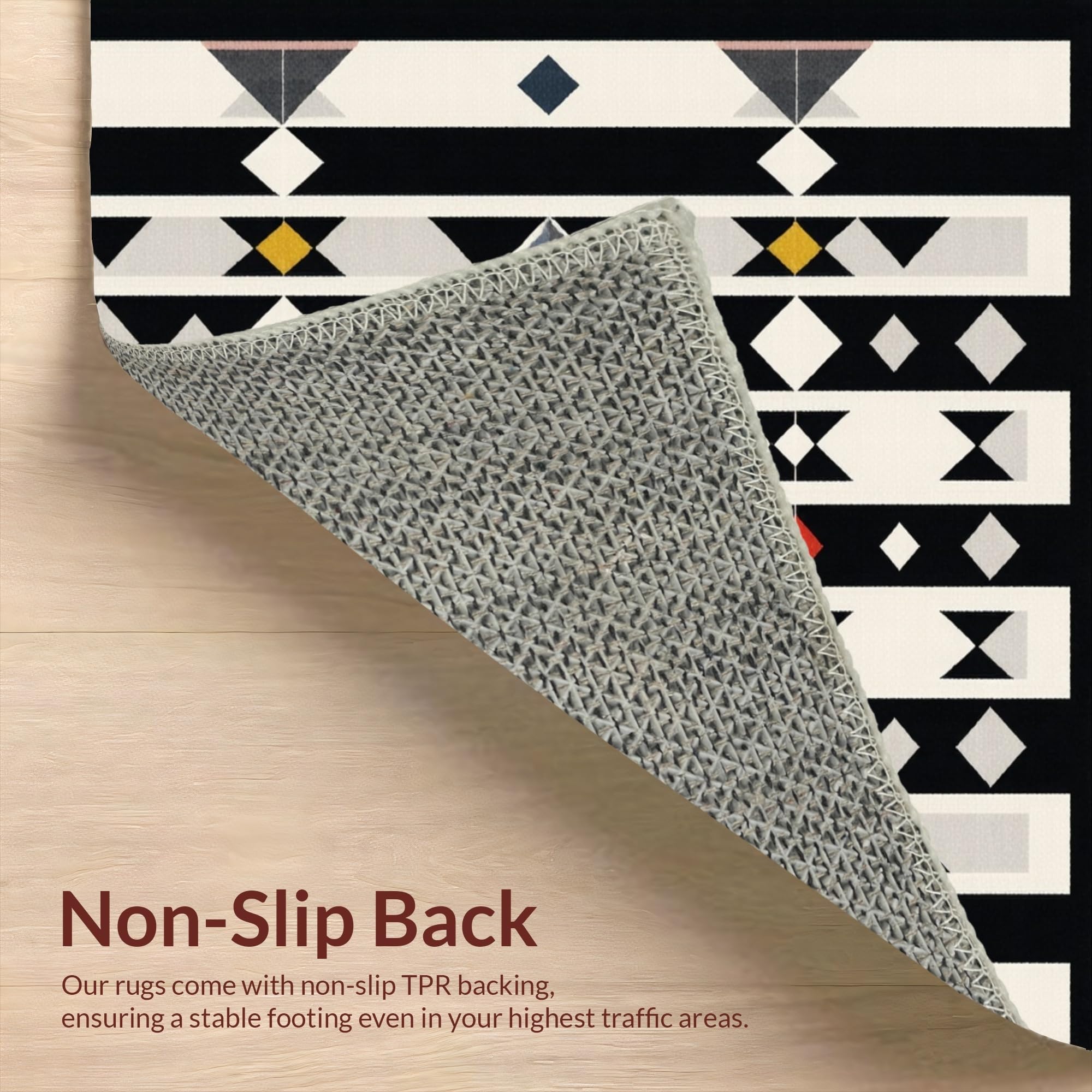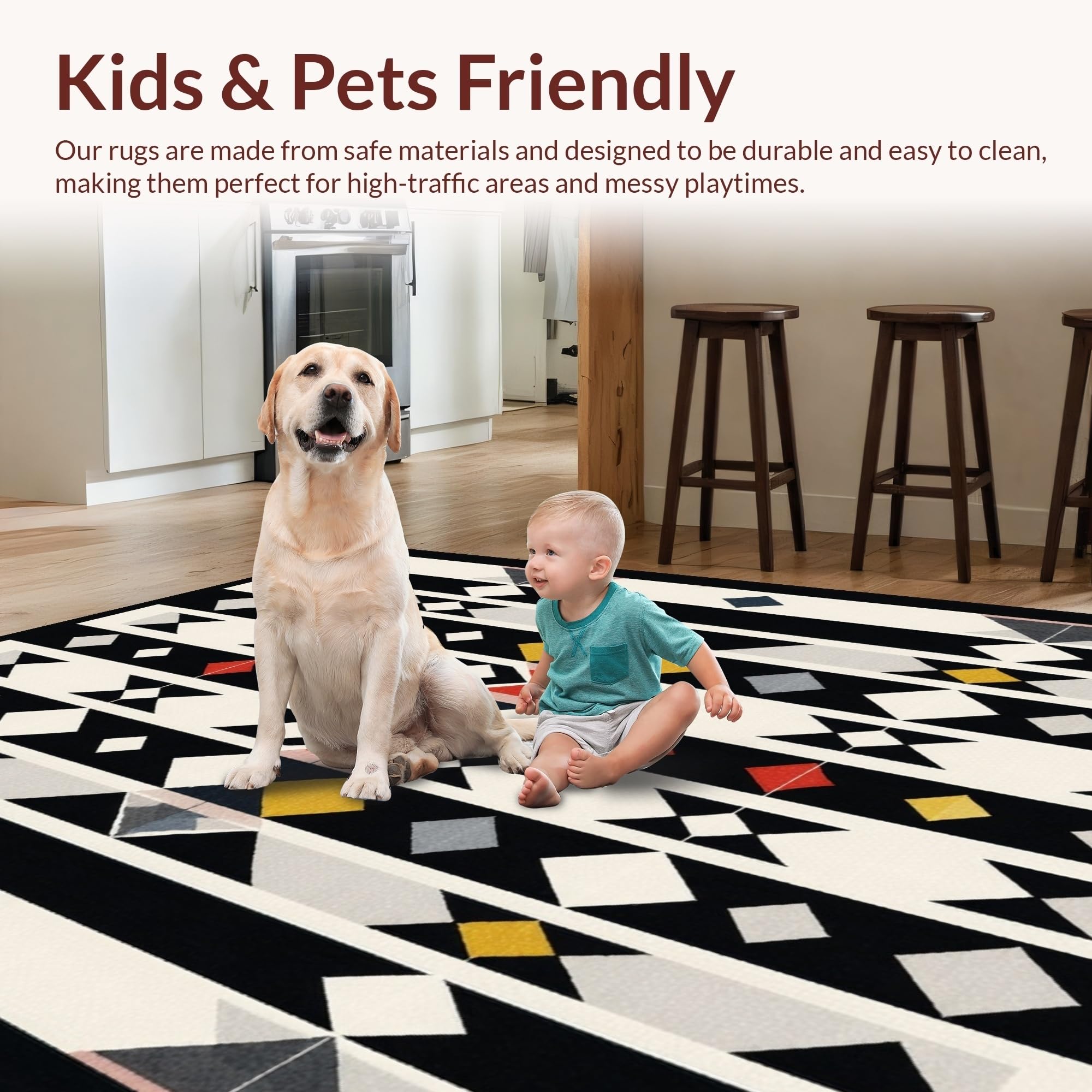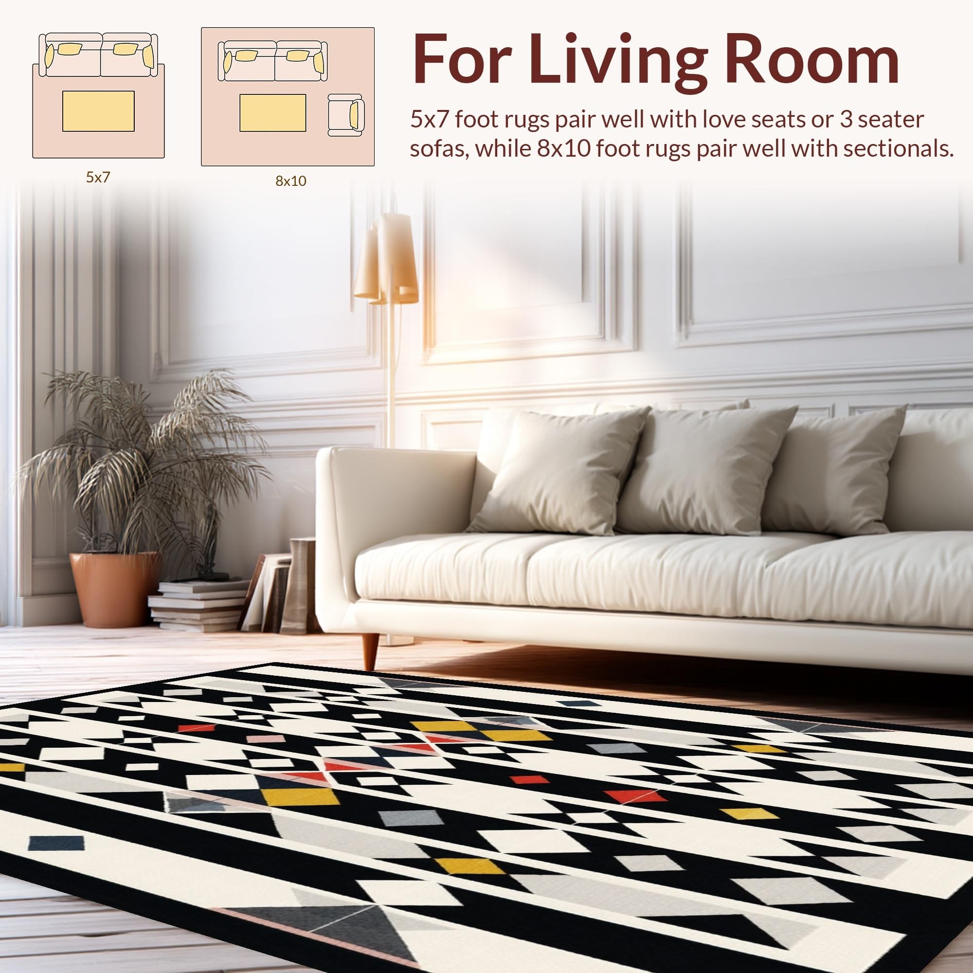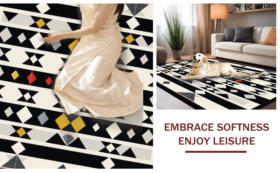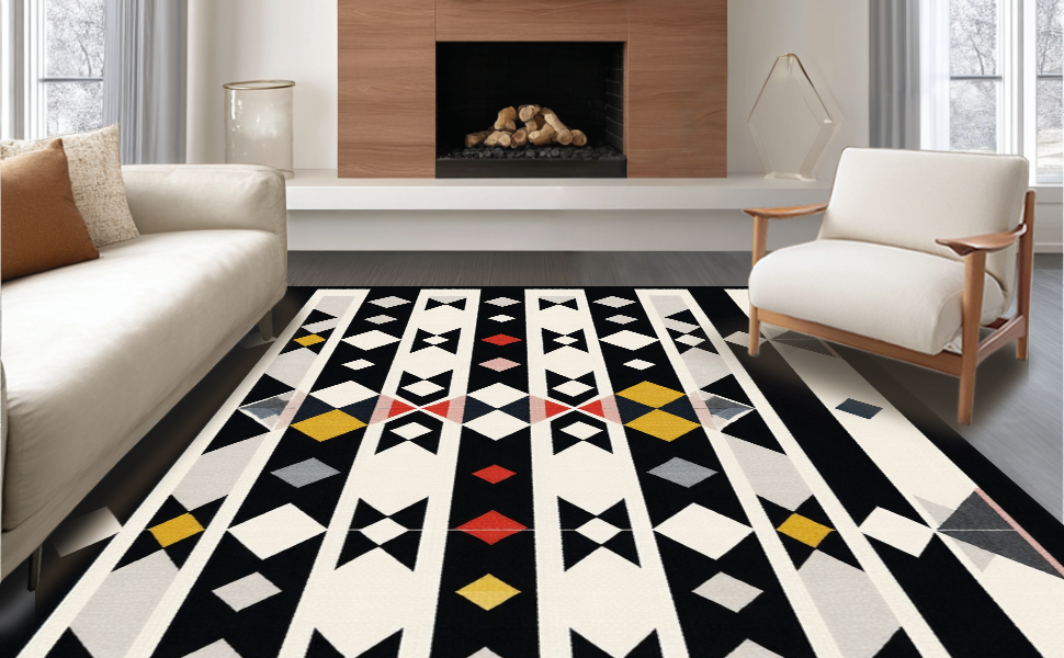 Ultra Soft Area Rug, Non Slip, Stain Resistant, Washable Area Rugs for Living Room, Bedroom, Contemporary Monochrome Lattice Pattern(Black) Overview: