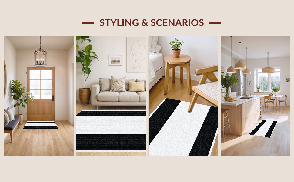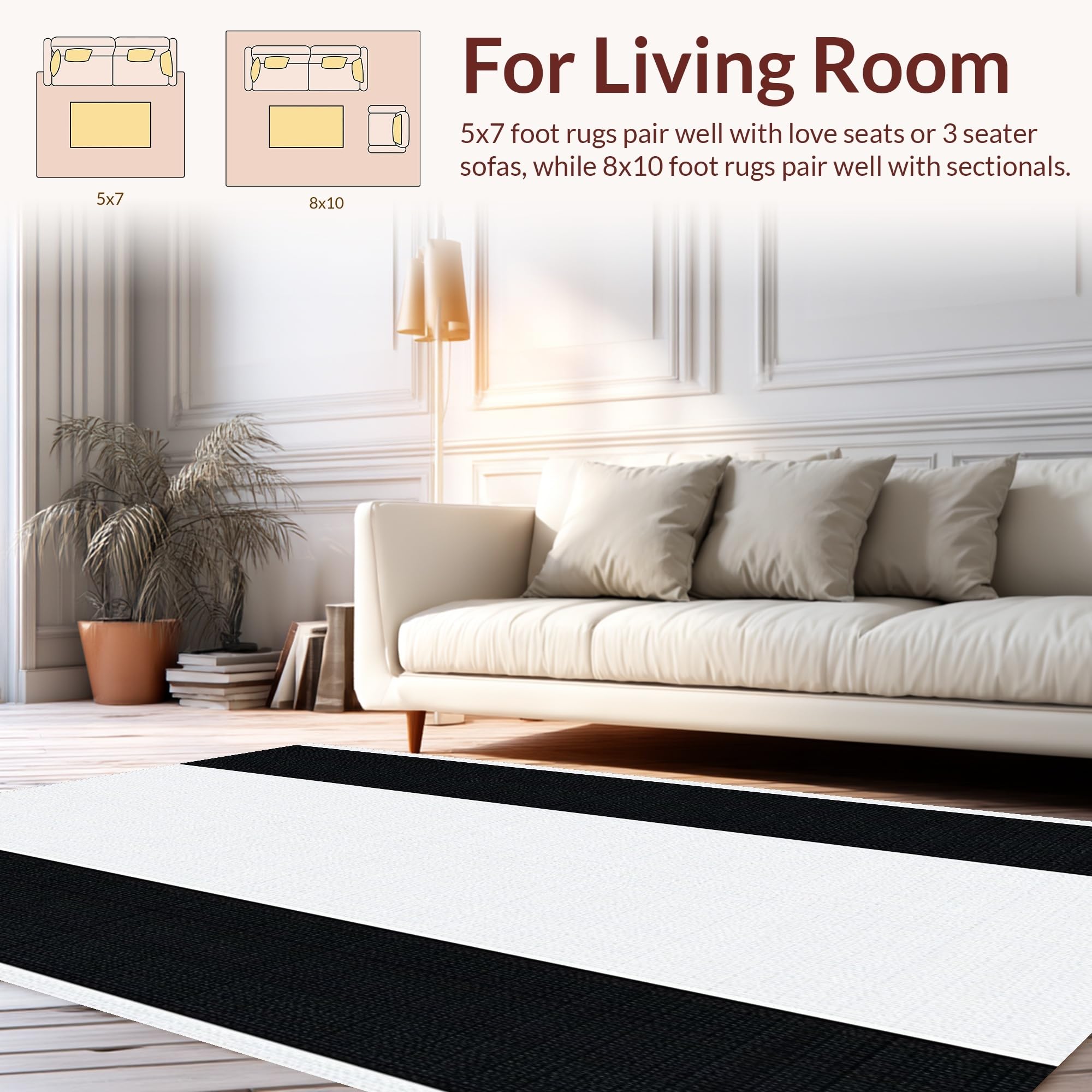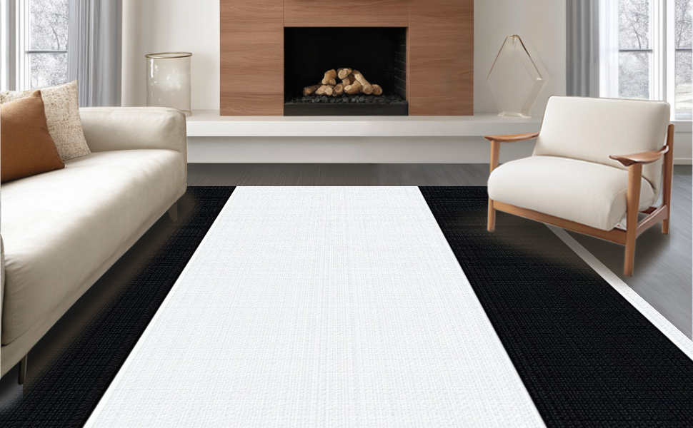 Ultra Soft Area Rug, Non Slip, Stain Resistant, Washable Area Rugs for Living Room, Bedroom, Contemporary Monochrome Layered Design(Black) Overview: