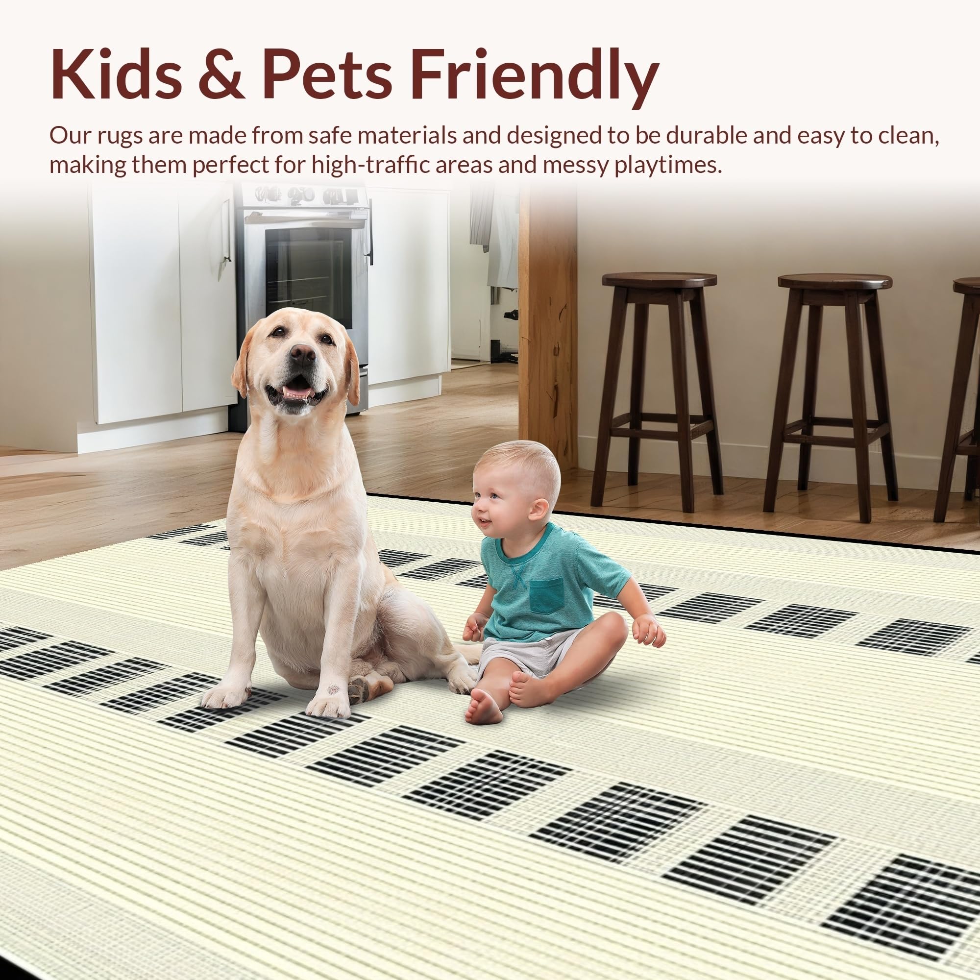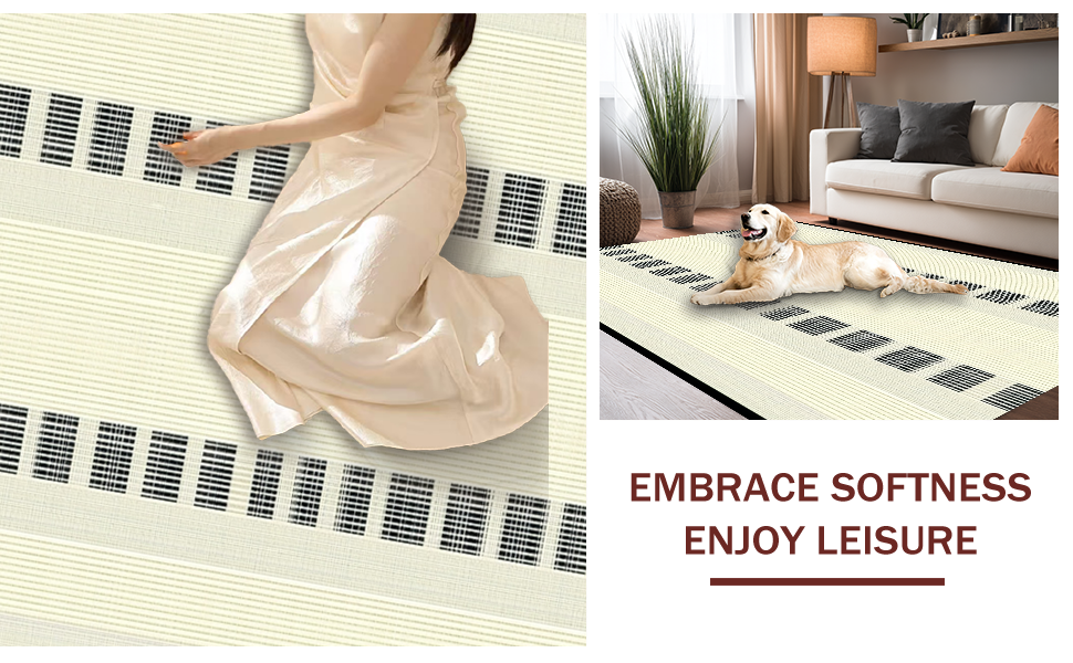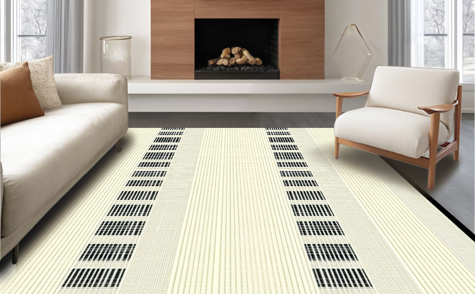 Ultra Soft Area Rug, Non Slip, Stain Resistant, Washable Area Rugs for Living Room, Bedroom, Contemporary Monochrome Linear Design(Beige) Overview: