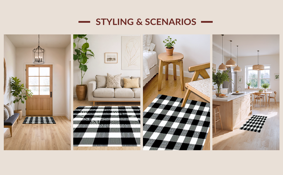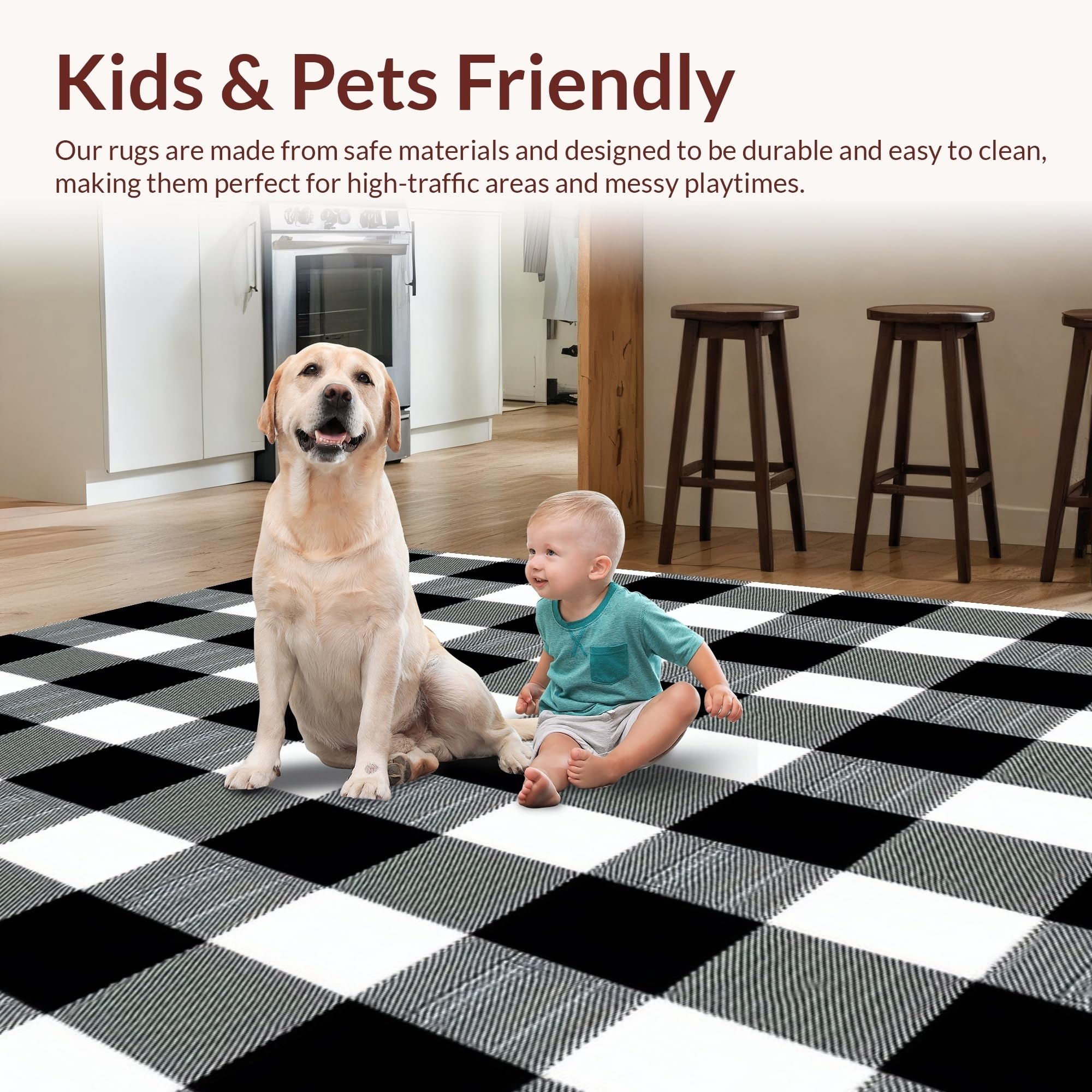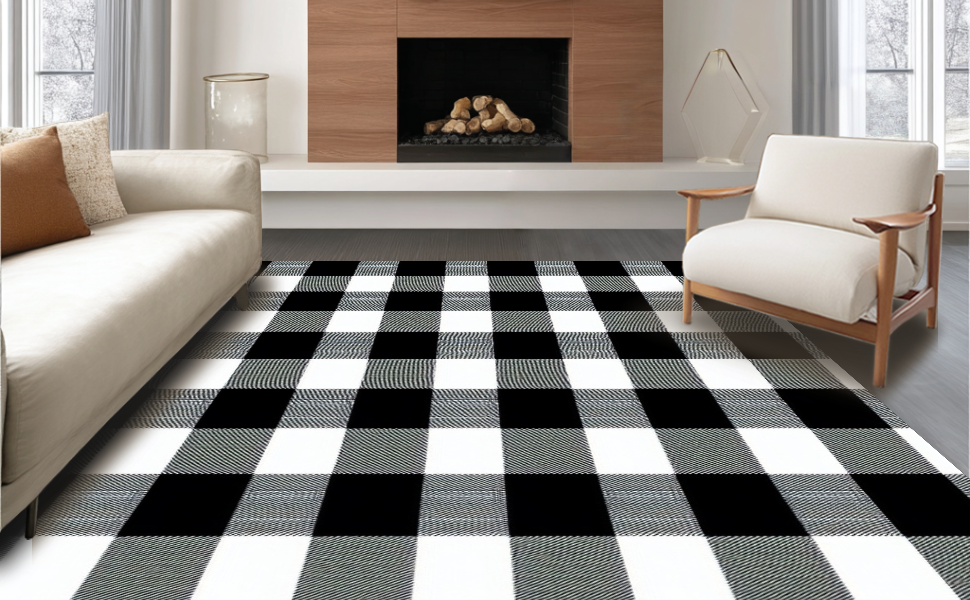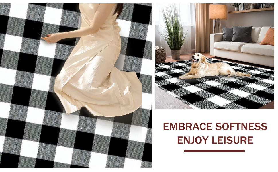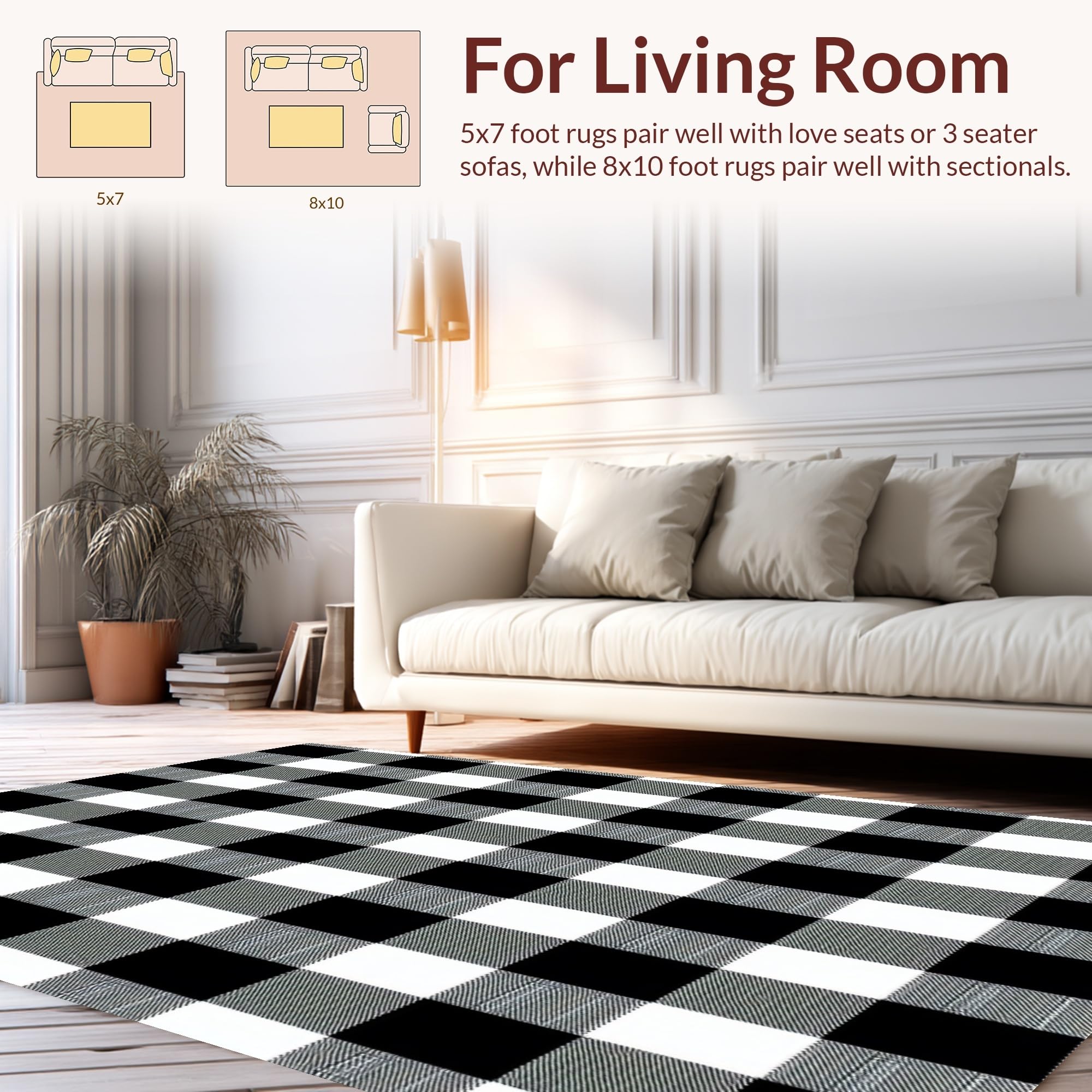 Ultra Soft Area Rug, Non Slip, Stain Resistant, Washable Area Rugs for Living Room, Bedroom, Contemporary Monochrome Patterned Mat(Black) Overview: