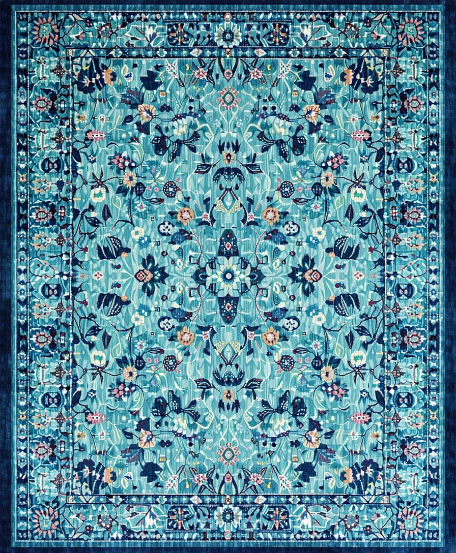 Ultra Soft Area Rug, Non Slip, Stain Resistant, Washable Area Rugs for Living Room, Bedroom, Contemporary Nautical Print Aesthetic(Blue) Overview: