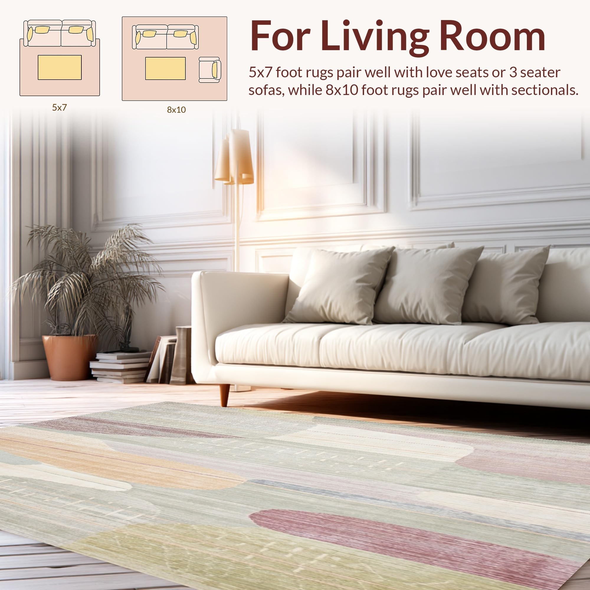 Ultra Soft Area Rug, Non Slip, Stain Resistant, Washable Area Rugs for Living Room, Bedroom, Contemporary Neutral Area With Artistic Blended Hues and Faded Shapes(Gray) Overview: