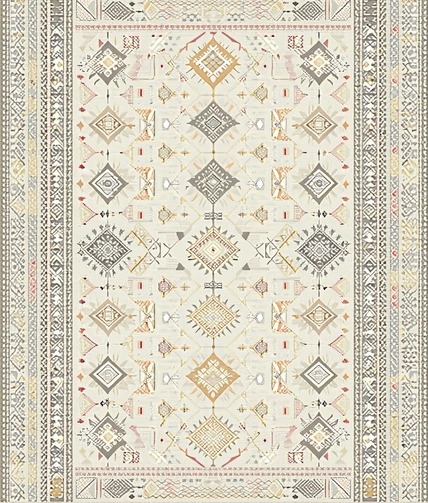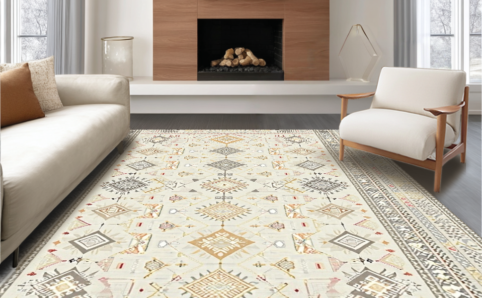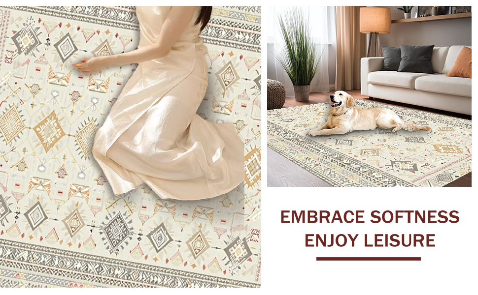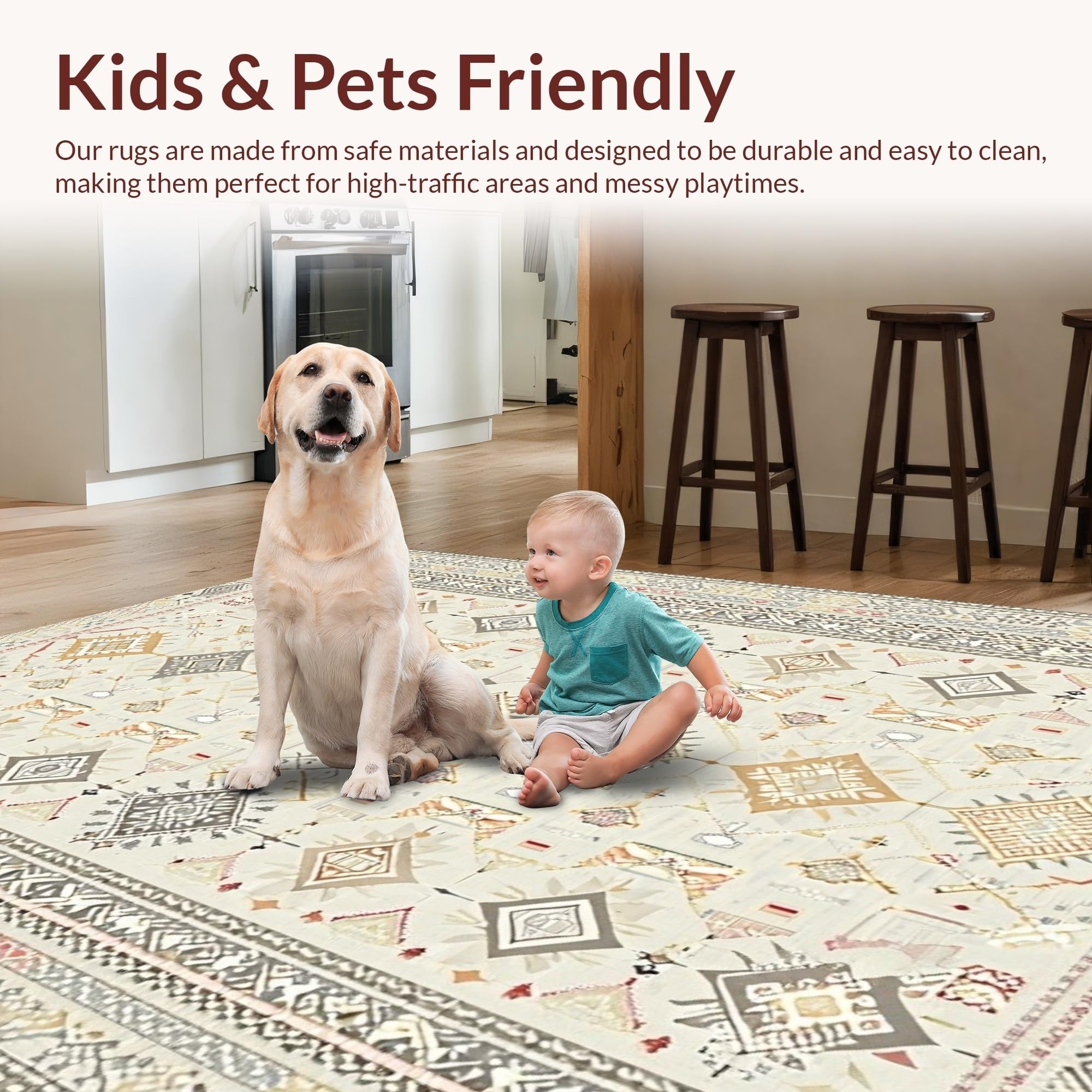 Ultra Soft Area Rug, Non Slip, Stain Resistant, Washable Area Rugs for Living Room, Bedroom, Contemporary Neutral Crochet Motif(Beige) Overview: