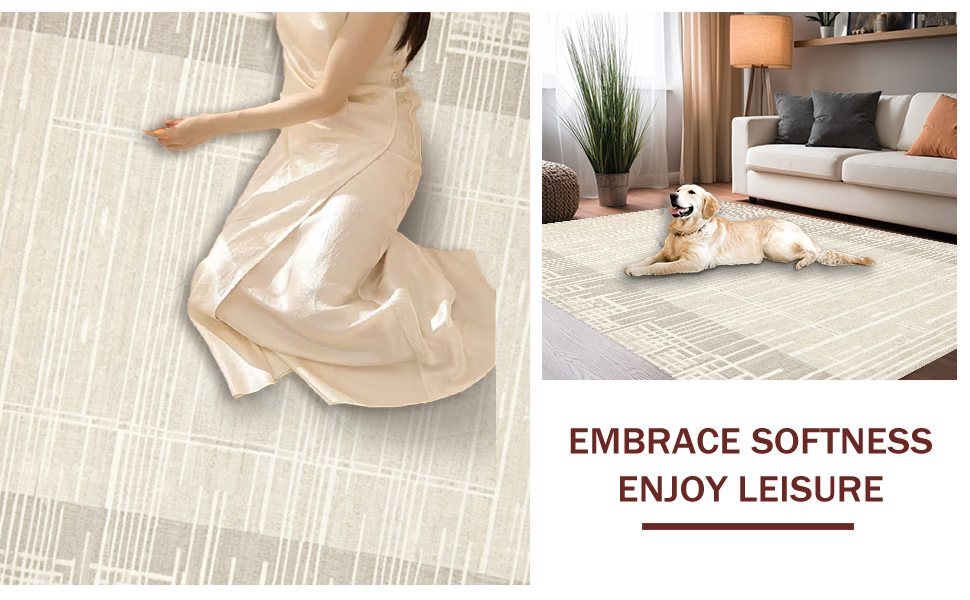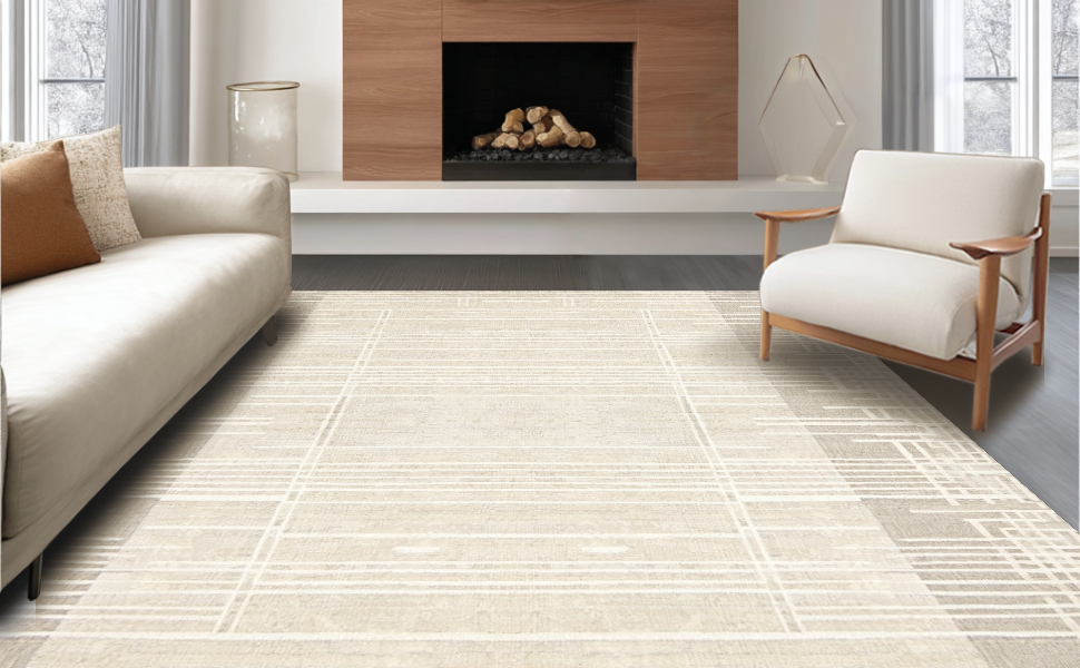 Ultra Soft Area Rug, Non Slip, Stain Resistant, Washable Area Rugs for Living Room, Bedroom, Contemporary Neutral Geometric Elegance(Beige) Overview: