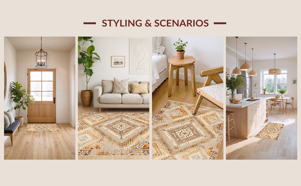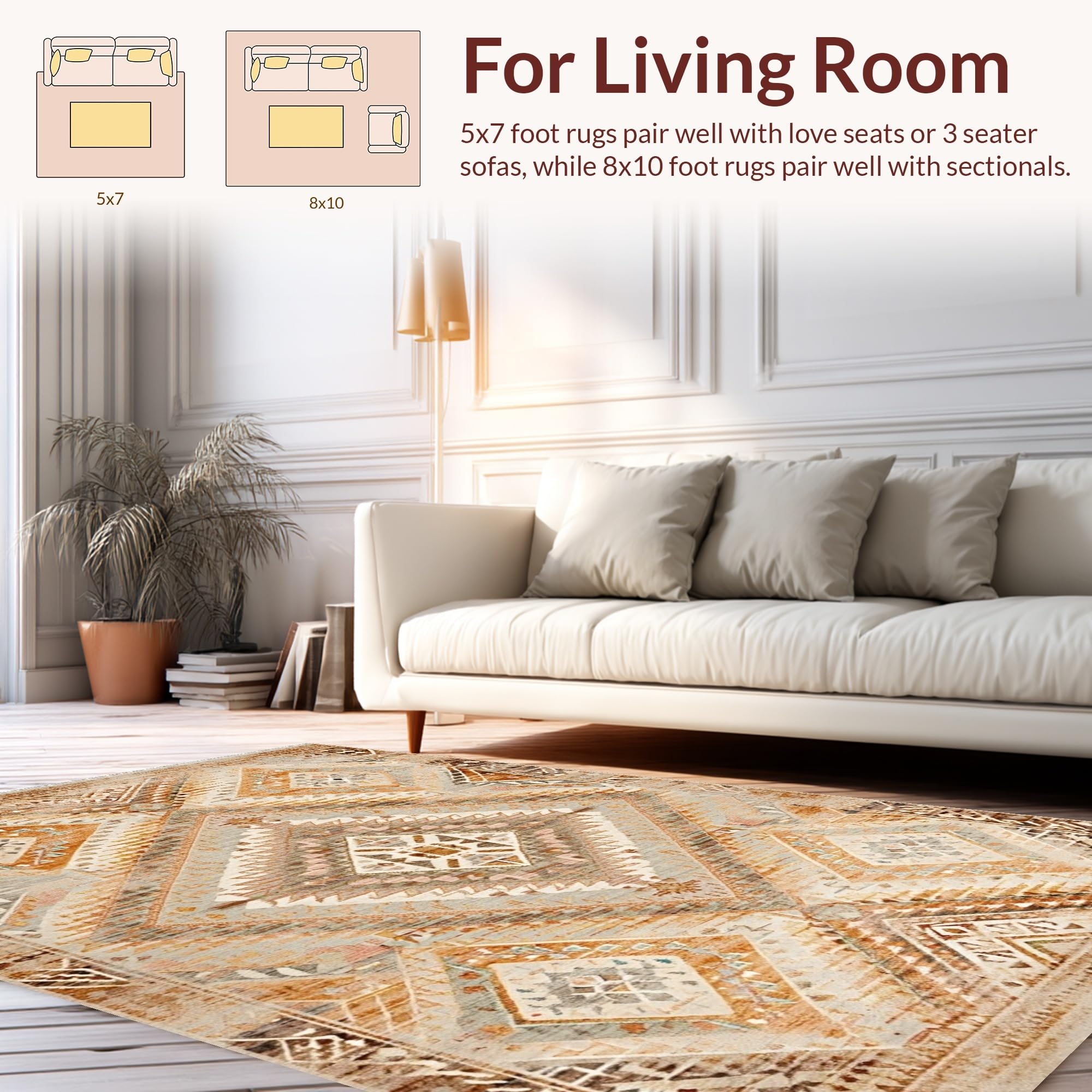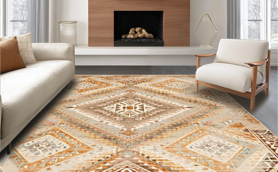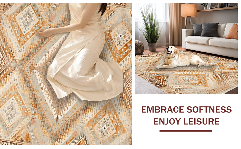 Ultra Soft Area Rug, Non Slip, Stain Resistant, Washable Area Rugs for Living Room, Bedroom, Contemporary Neutral Lattice Design(Beige) Overview: