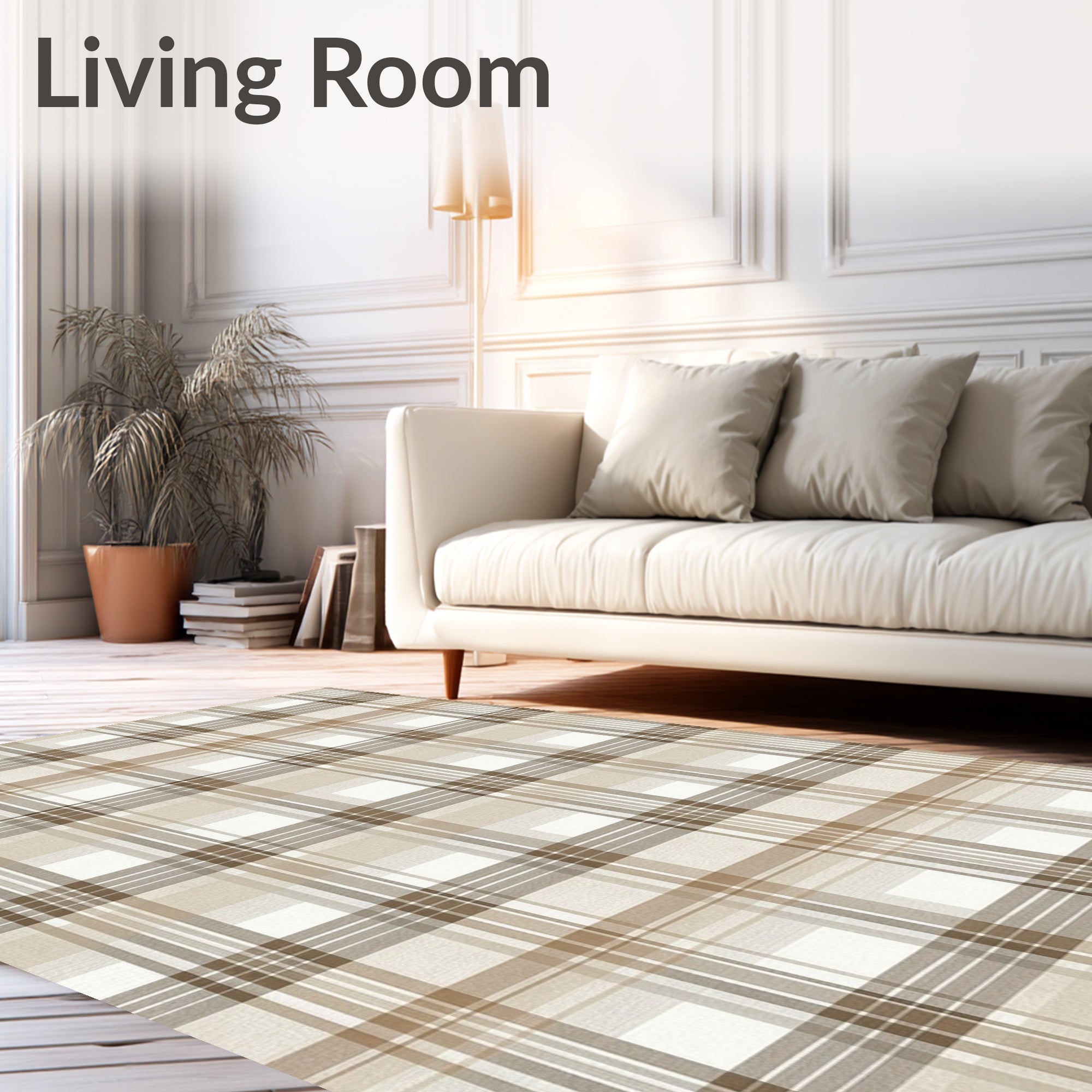 Ultra Soft Area Rug, Non Slip, Stain Resistant, Washable Area Rugs for Living Room, Bedroom, Contemporary Neutral Plaid Area with Beige and Light Brown Toned Squares(Beige) Overview: