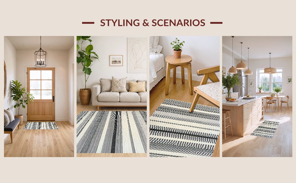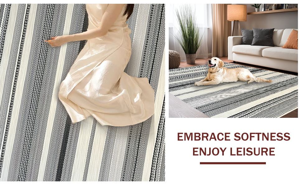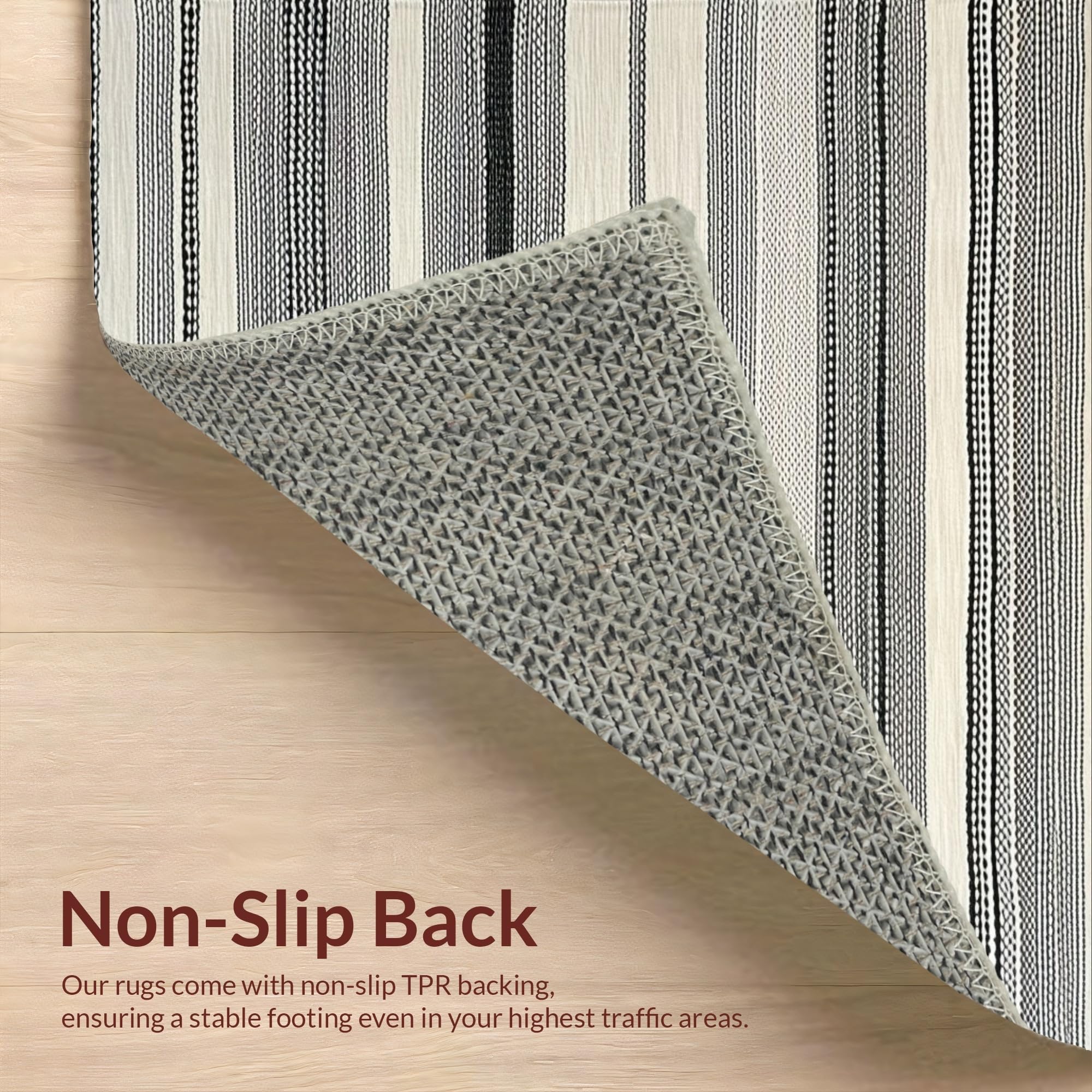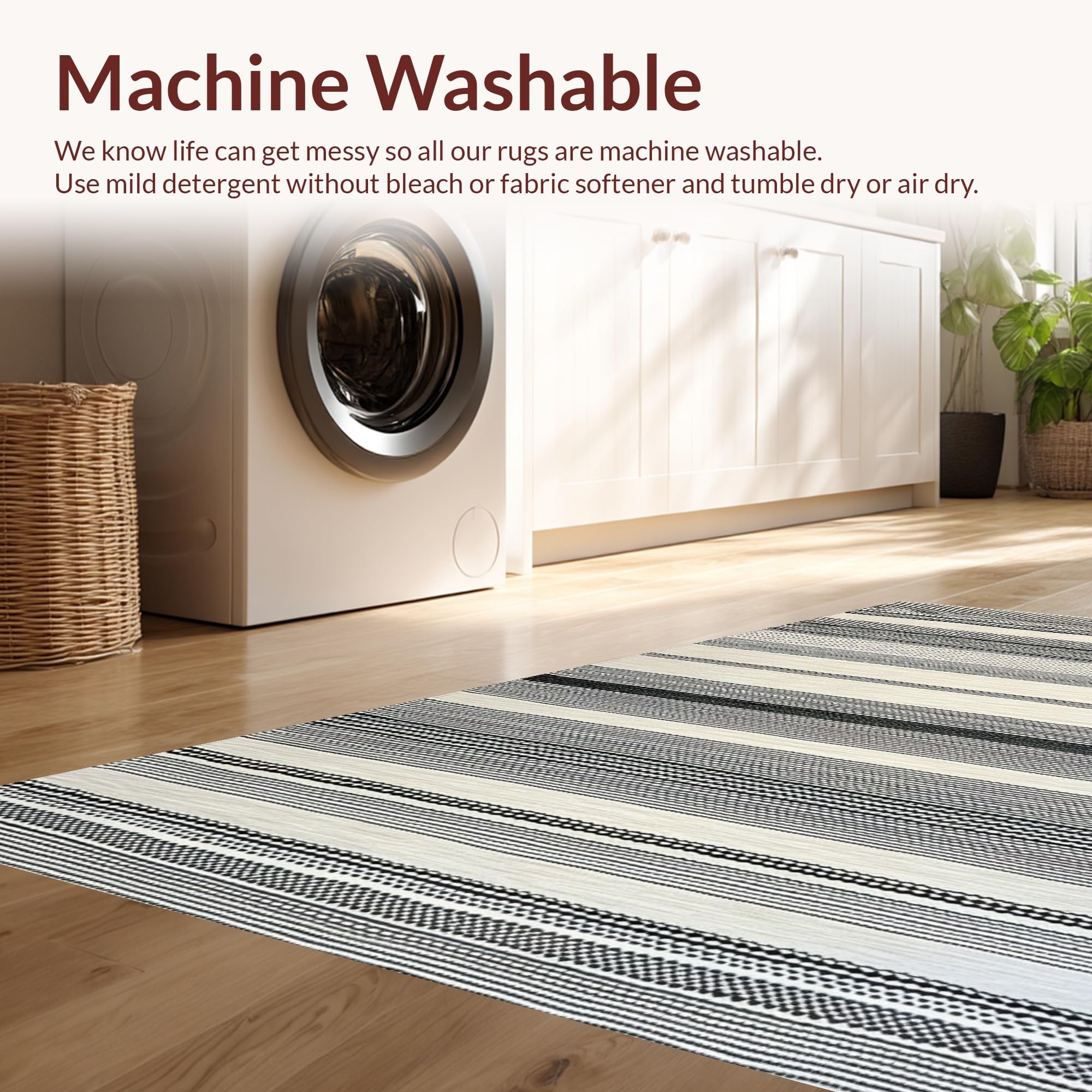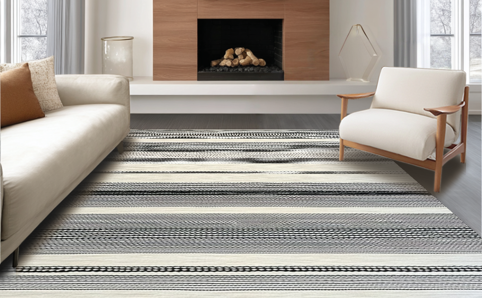 Ultra Soft Area Rug, Non Slip, Stain Resistant, Washable Area Rugs for Living Room, Bedroom, Contemporary Neutral Striped Elegance(Black) Overview: