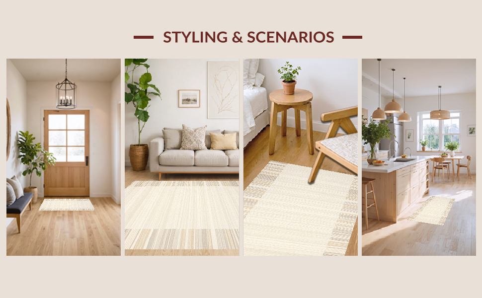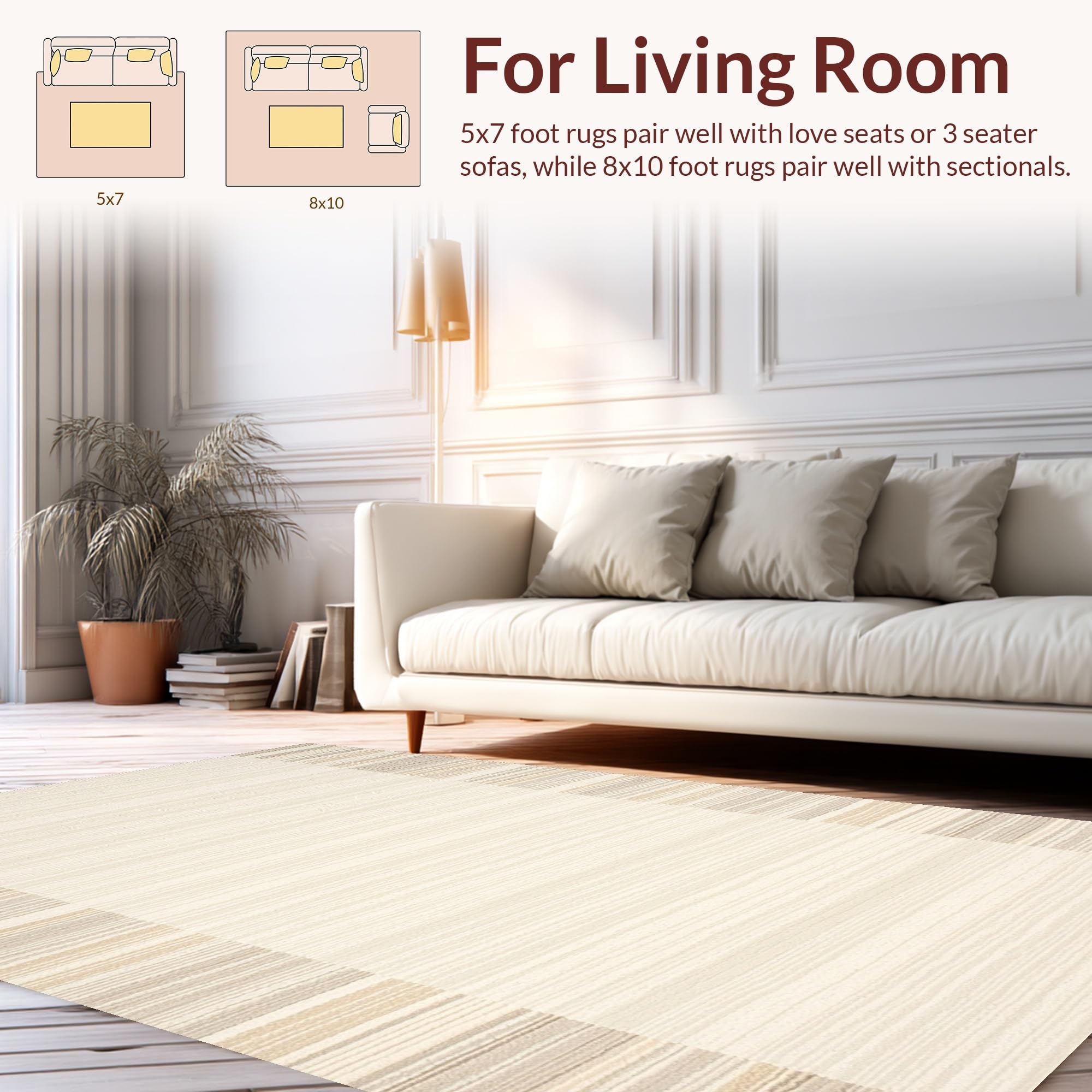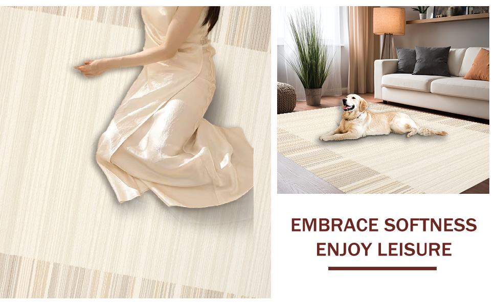 Ultra Soft Area Rug, Non Slip, Stain Resistant, Washable Area Rugs for Living Room, Bedroom, Contemporary Neutral Tasseled Shag(Beige) Overview:
