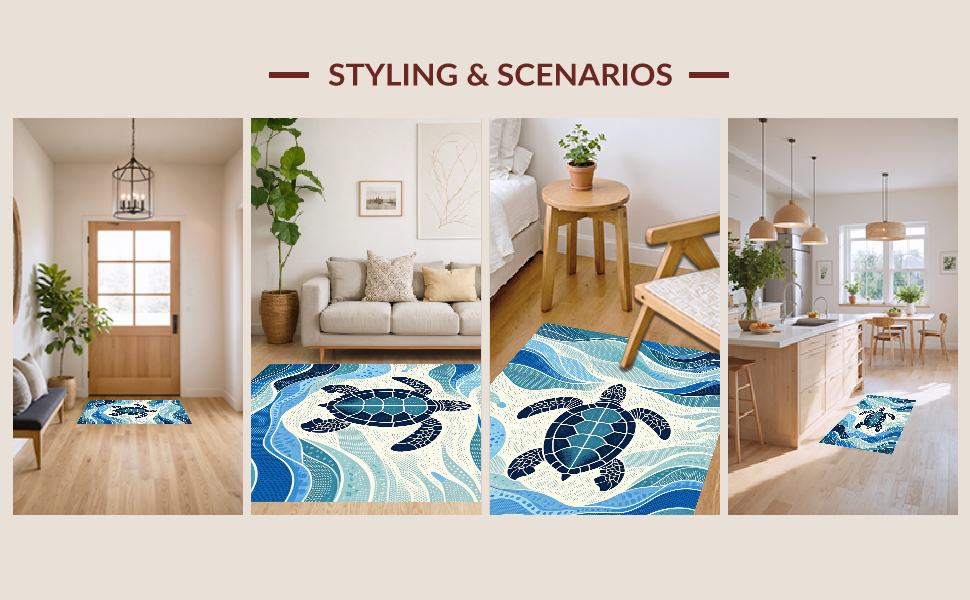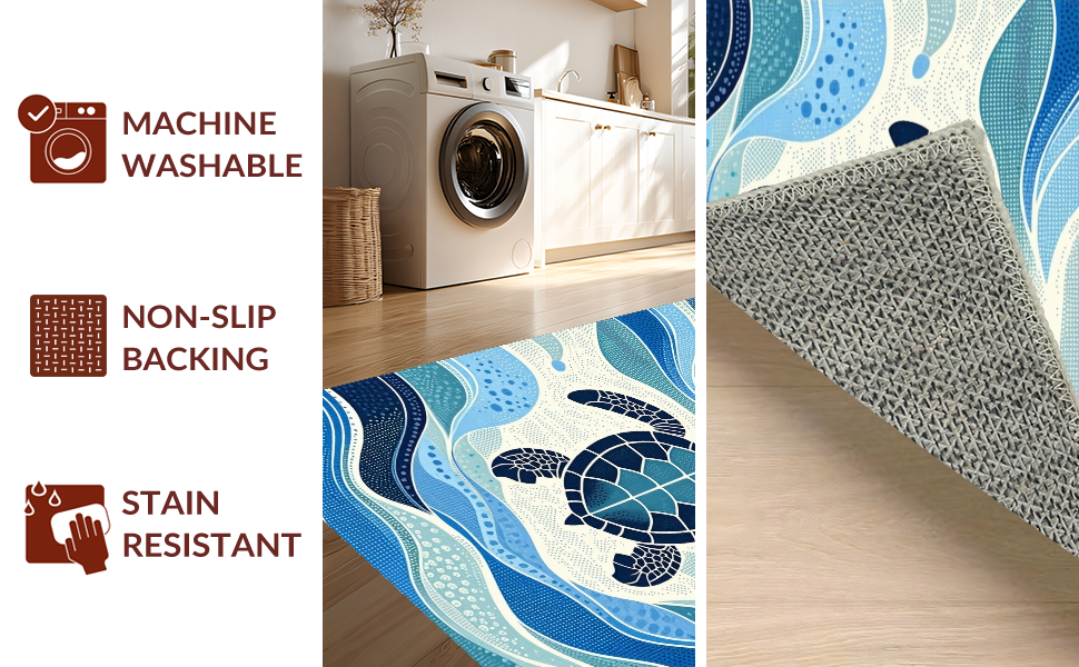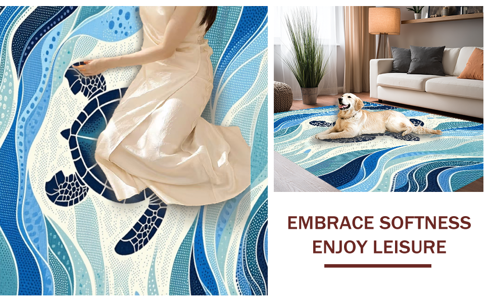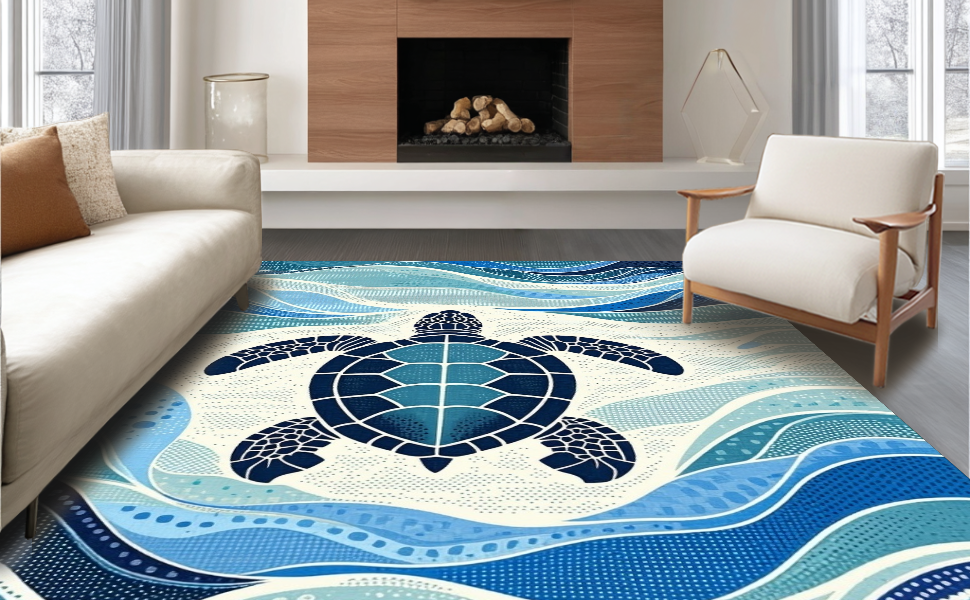Ultra Soft Area Rug, Non Slip, Stain Resistant, Washable Area Rugs for Living Room, Bedroom, Contemporary Ocean-inspired Entryway Mat(Blue) Overview: