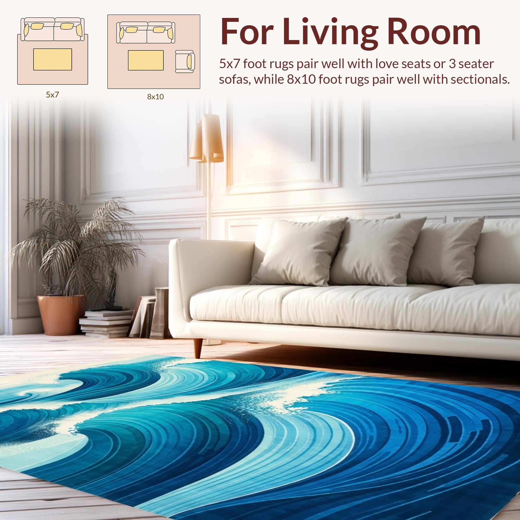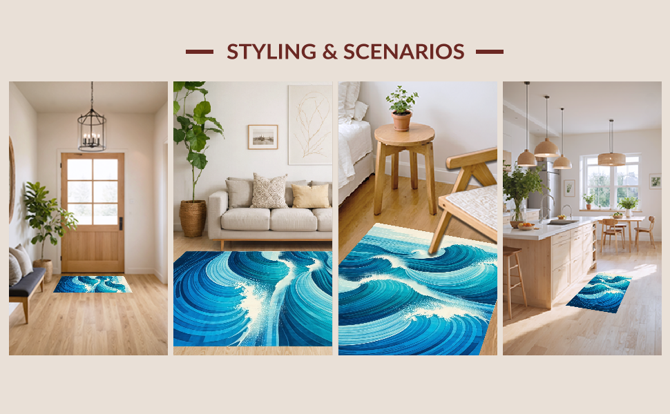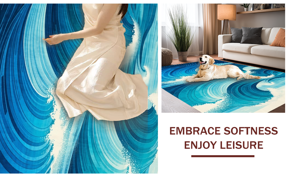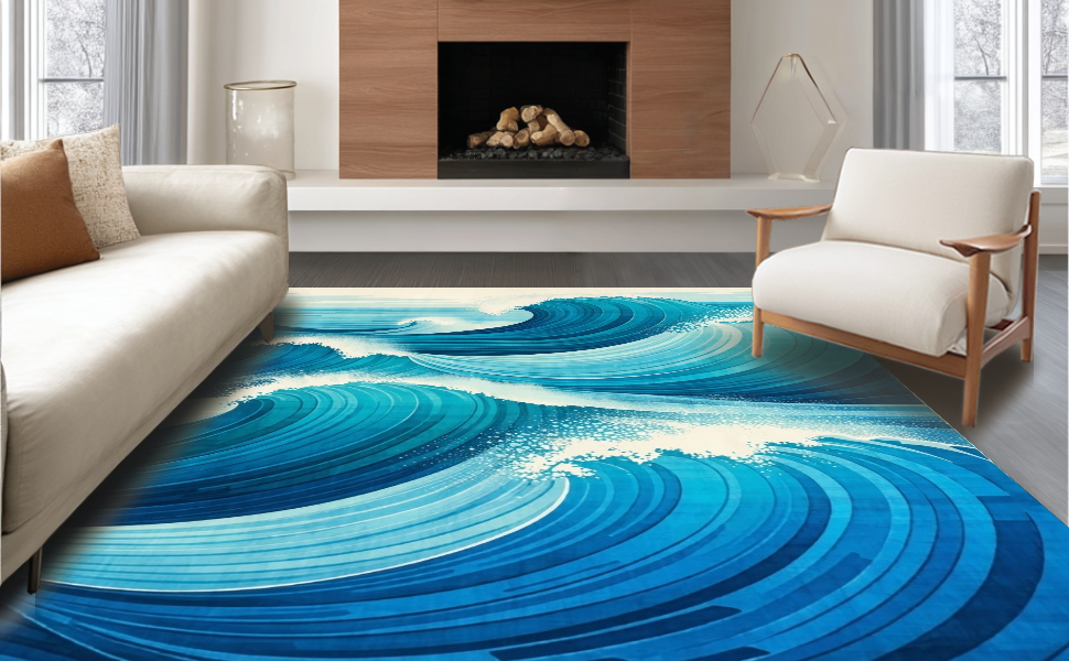 Ultra Soft Area Rug, Non Slip, Stain Resistant, Washable Area Rugs for Living Room, Bedroom, Contemporary Oceanic Design Scheme(Blue) Overview: