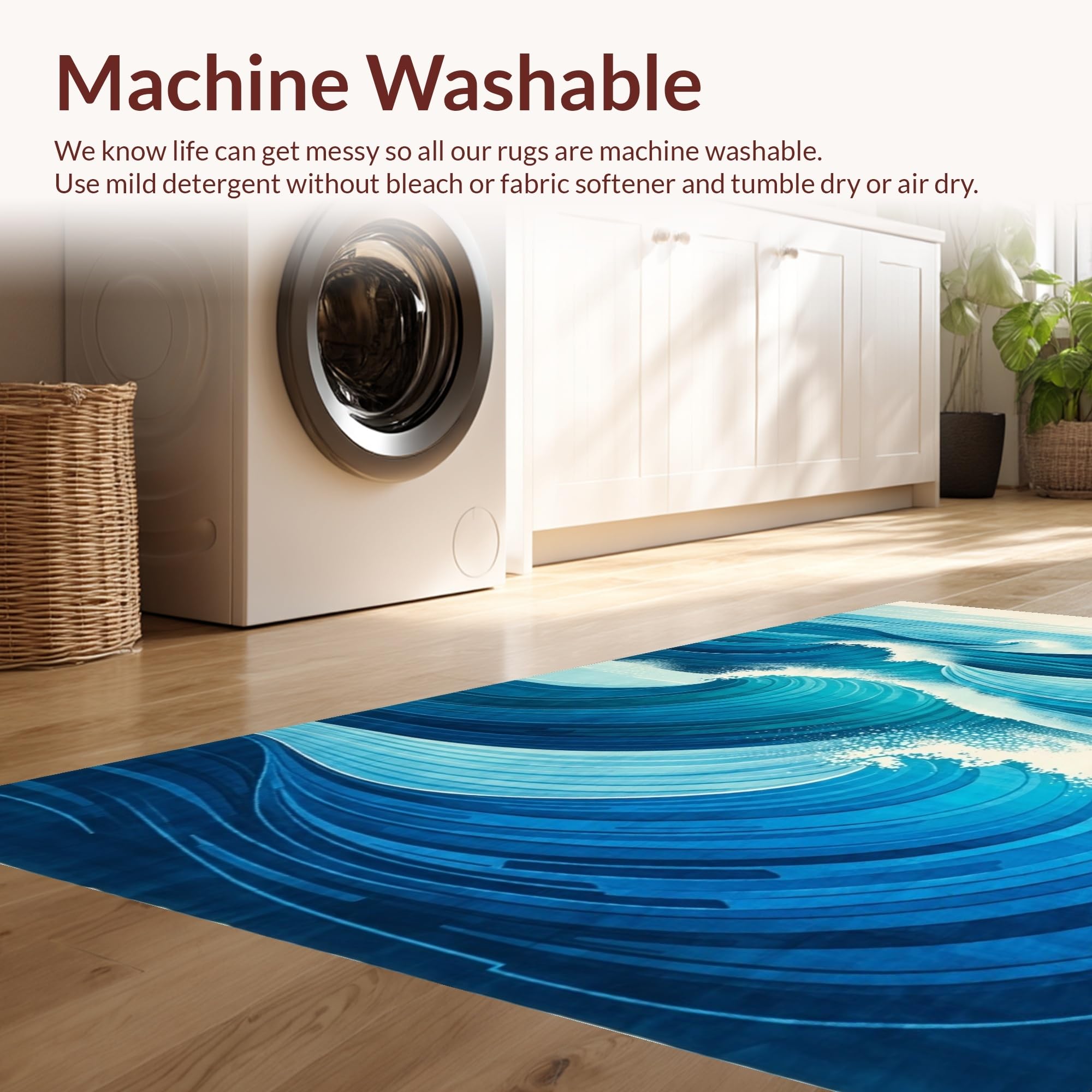 - Machine Washable: Our rugs can be easily thrown in the wash machine.