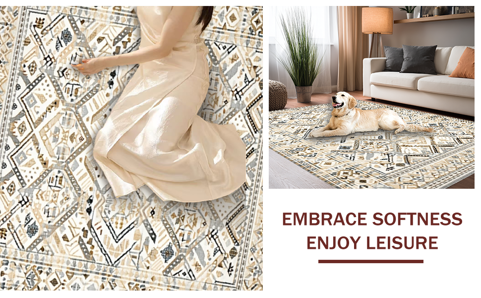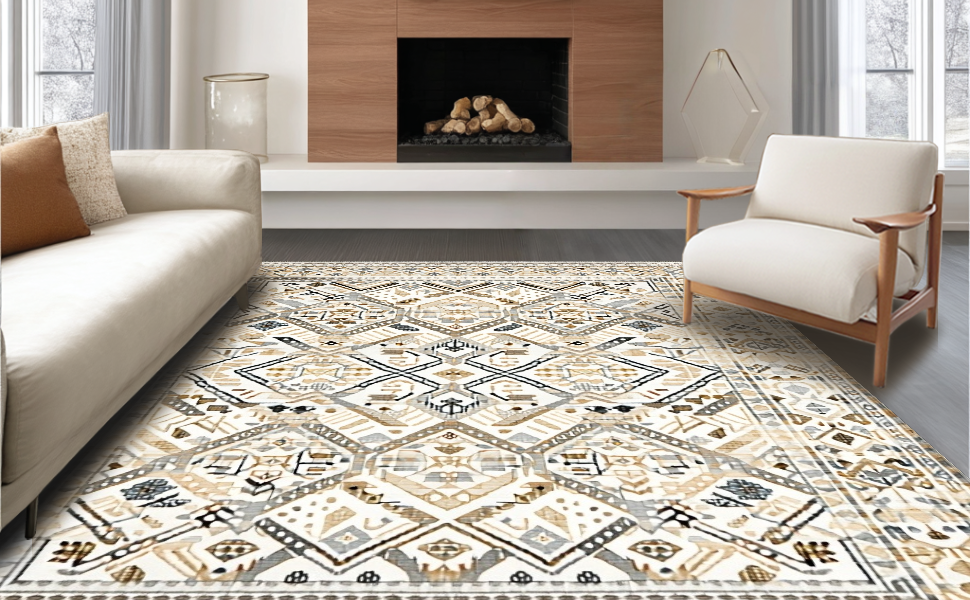 Ultra Soft Area Rug, Non Slip, Stain Resistant, Washable Area Rugs for Living Room, Bedroom, Contemporary Ogee Inspired Look(Beige) Overview: