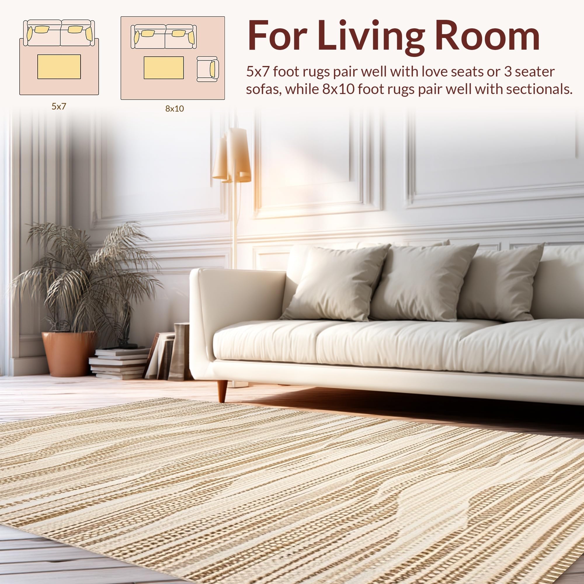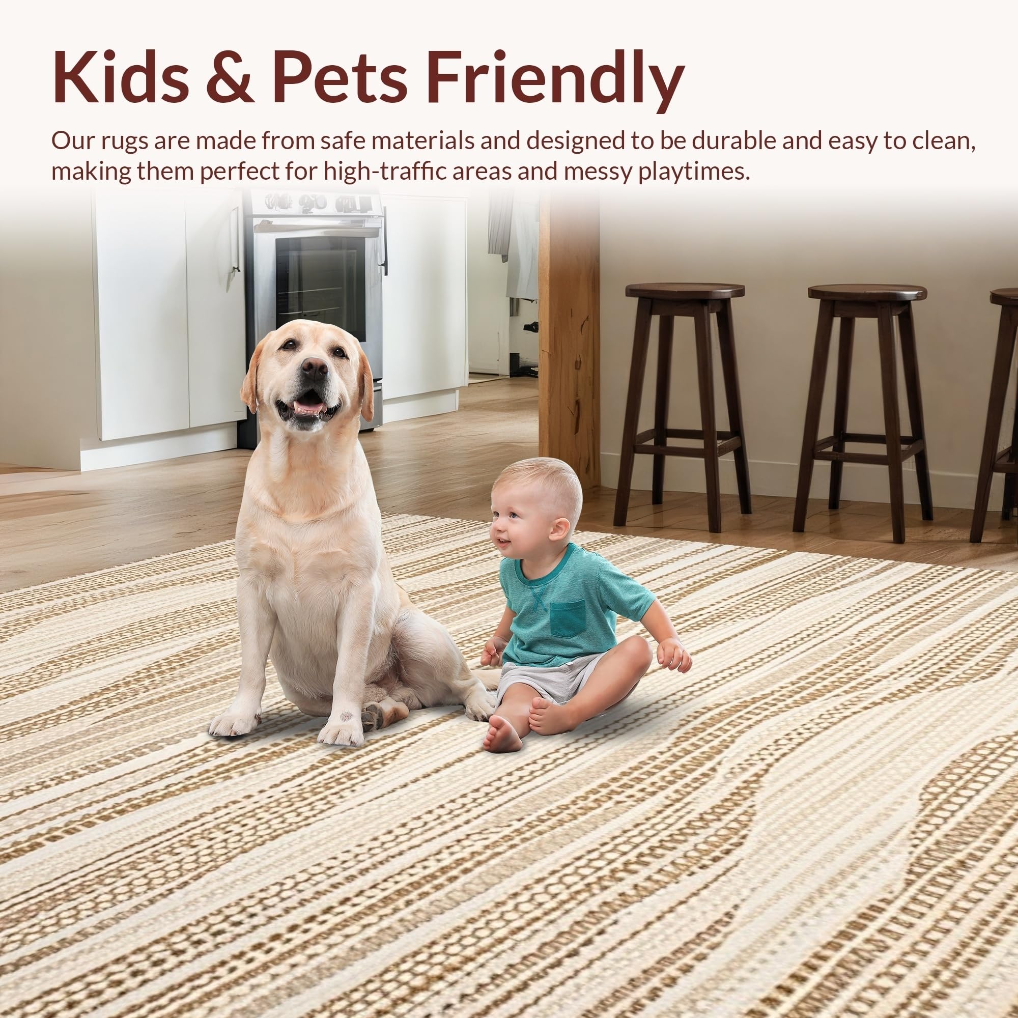 Ultra Soft Area Rug, Non Slip, Stain Resistant, Washable Area Rugs for Living Room, Bedroom, Contemporary Ogee Patterned Accent(Beige) Overview: