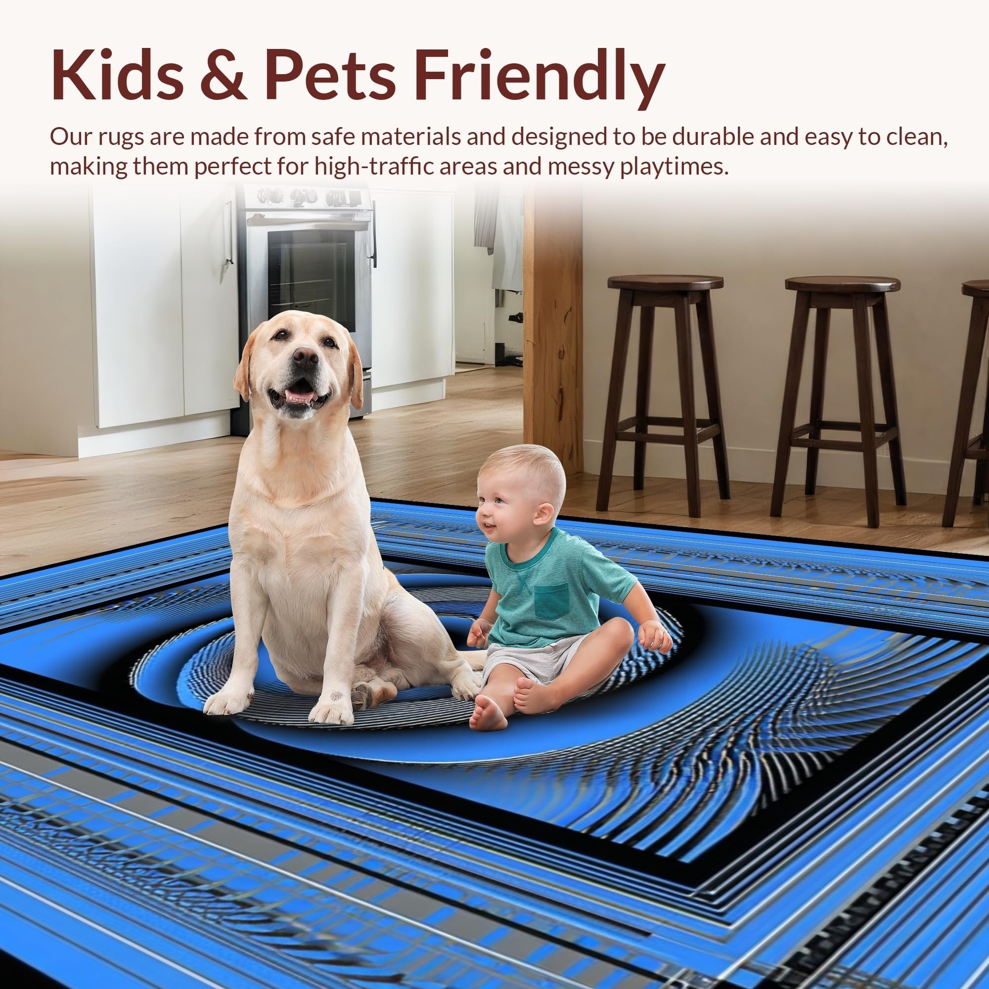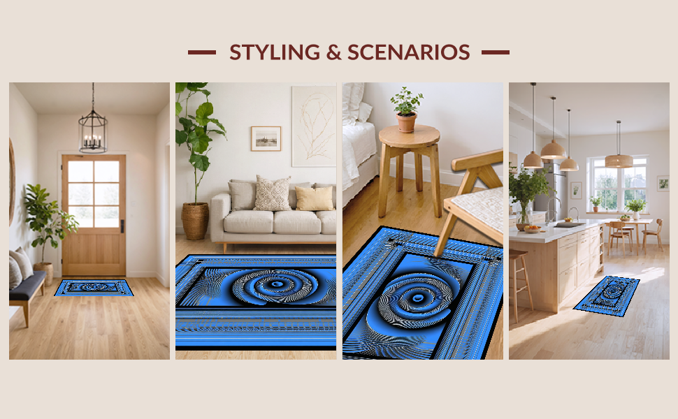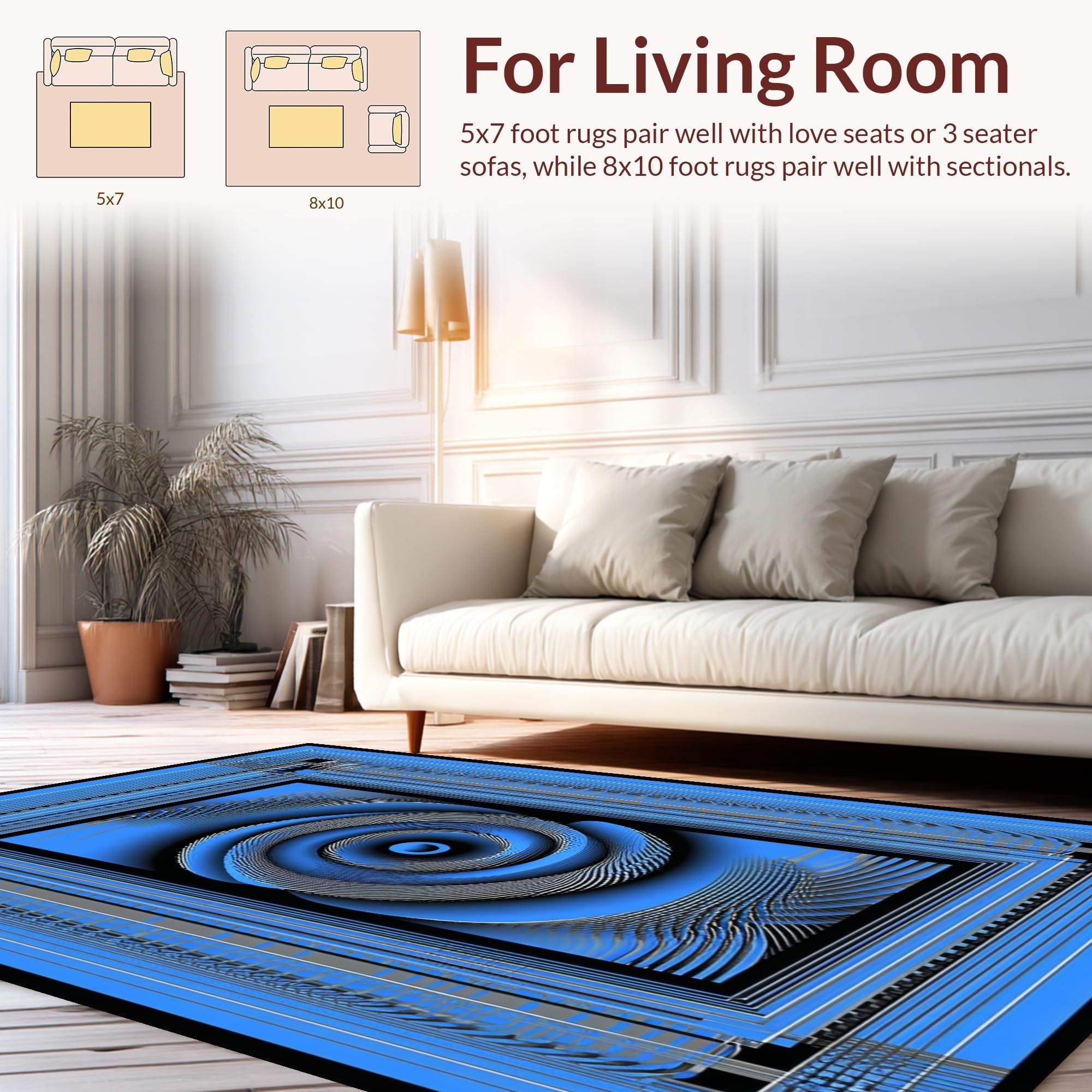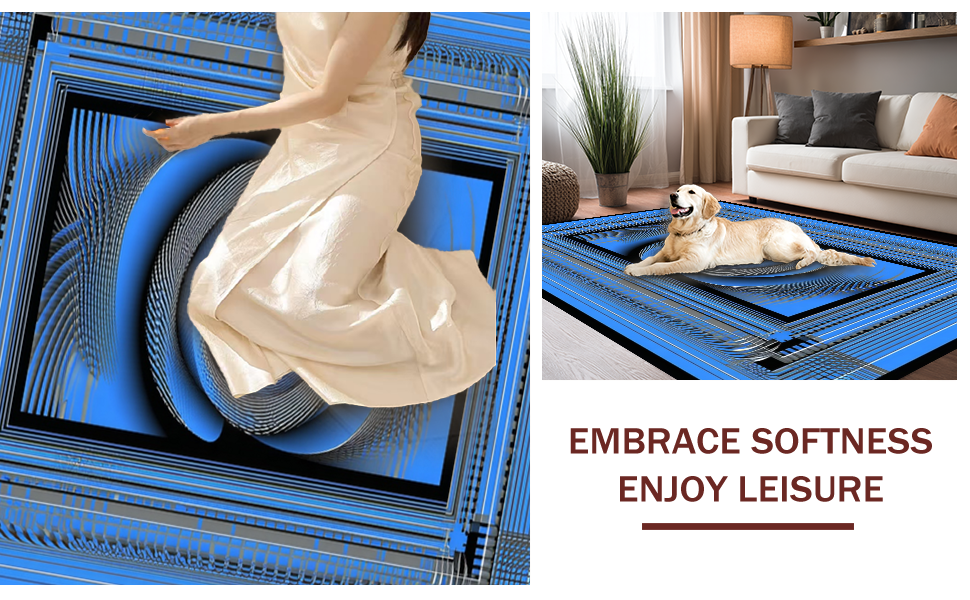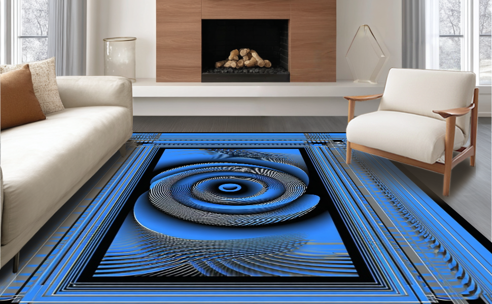 Ultra Soft Area Rug, Non Slip, Stain Resistant, Washable Area Rugs for Living Room, Bedroom, Contemporary Optical Illusion Design(Blue) Overview: