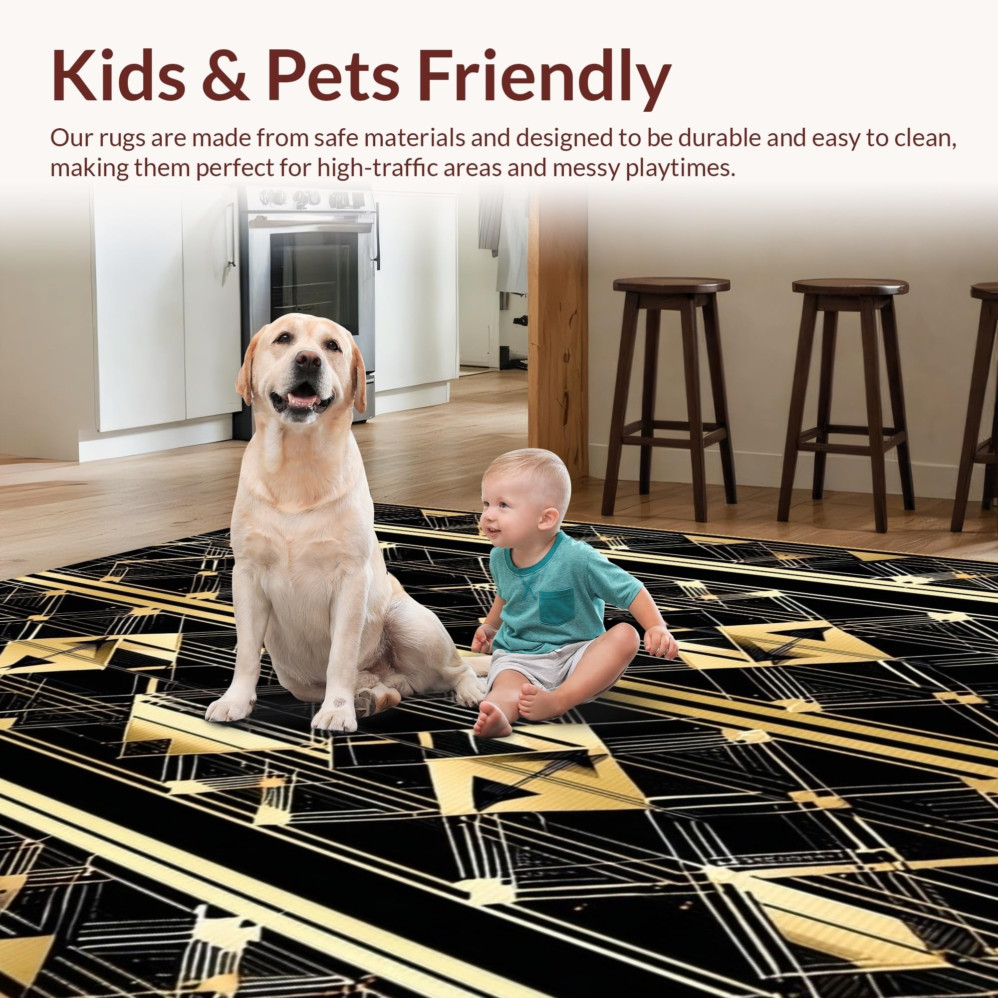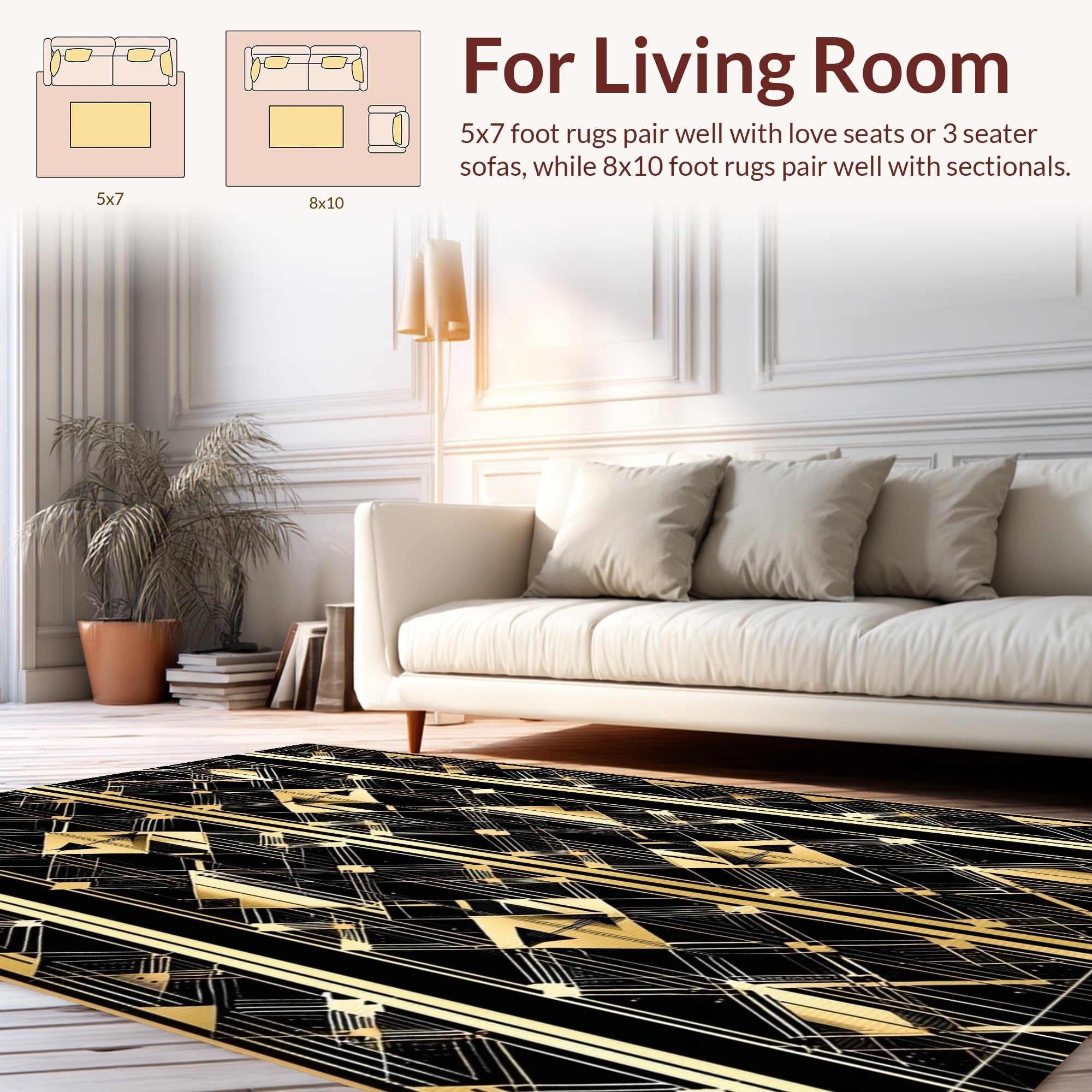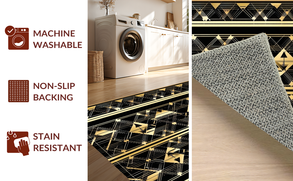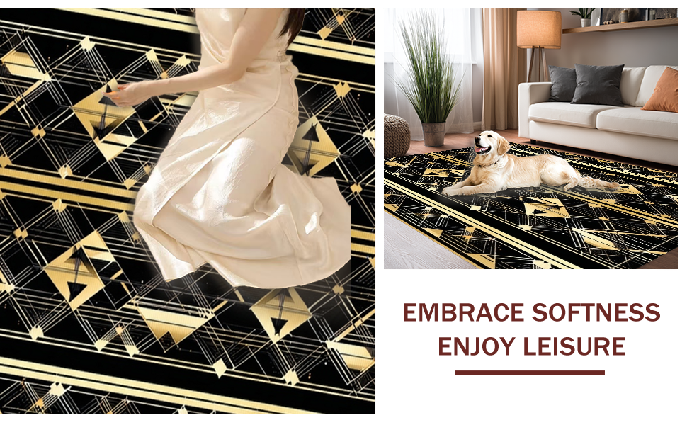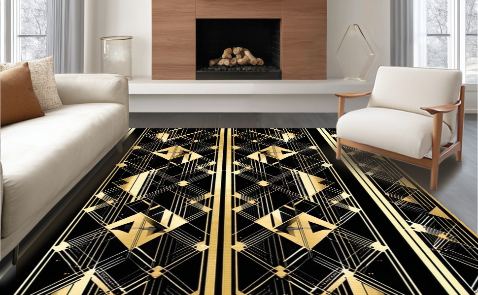 Ultra Soft Area Rug, Non Slip, Stain Resistant, Washable Area Rugs for Living Room, Bedroom, Contemporary Opulent Scale Arrangement(Black) Overview: