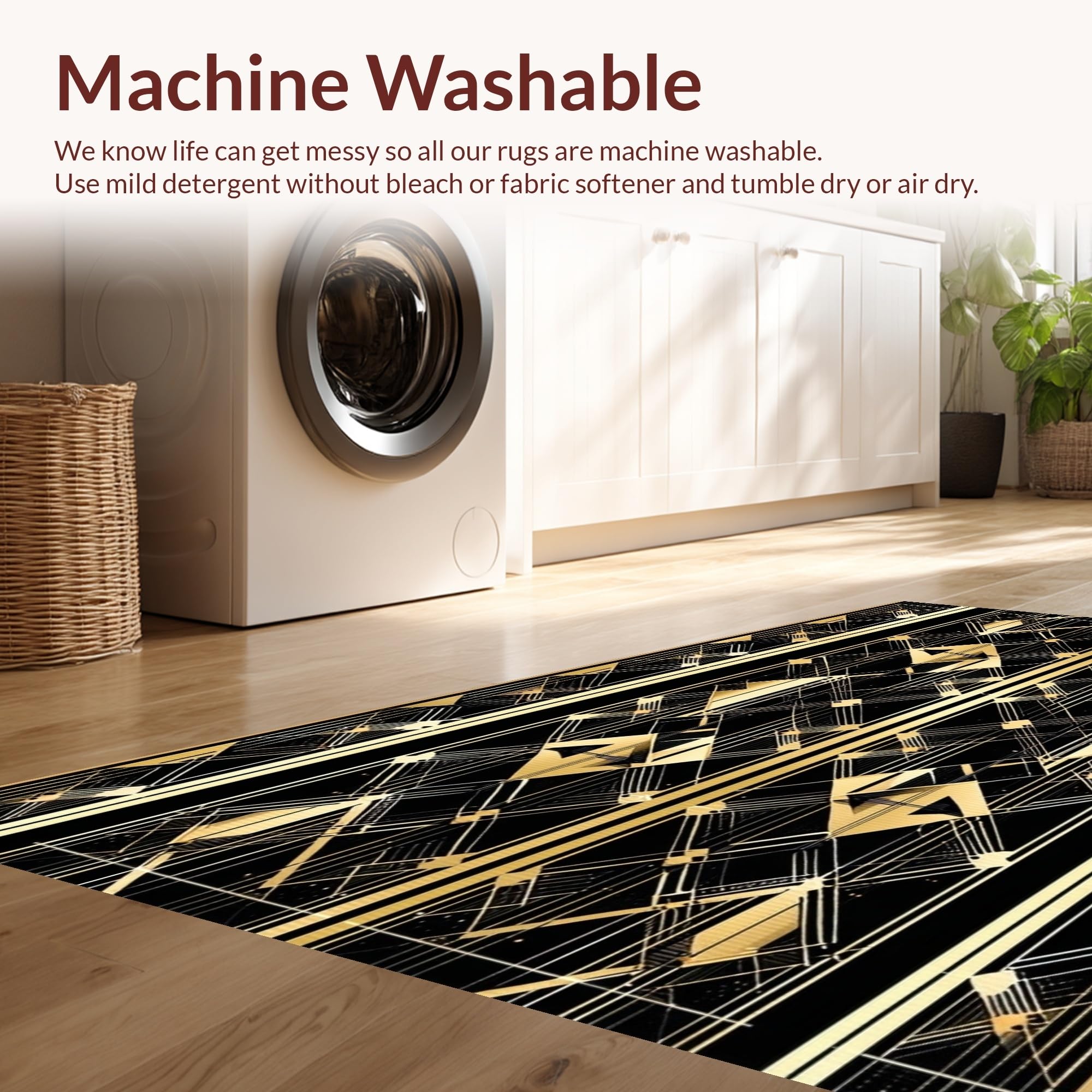 - Machine Washable: Our rugs can be easily thrown in the wash machine.