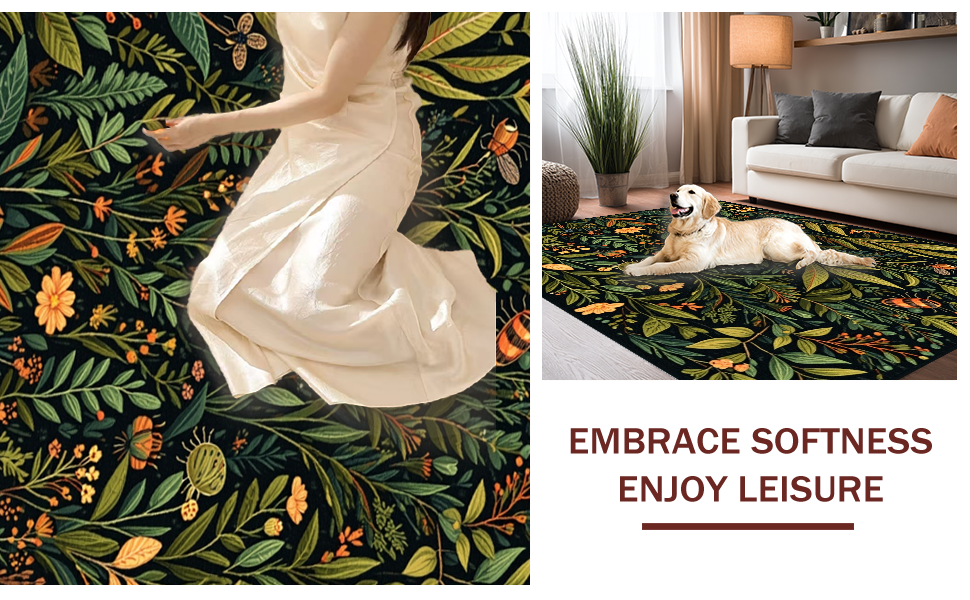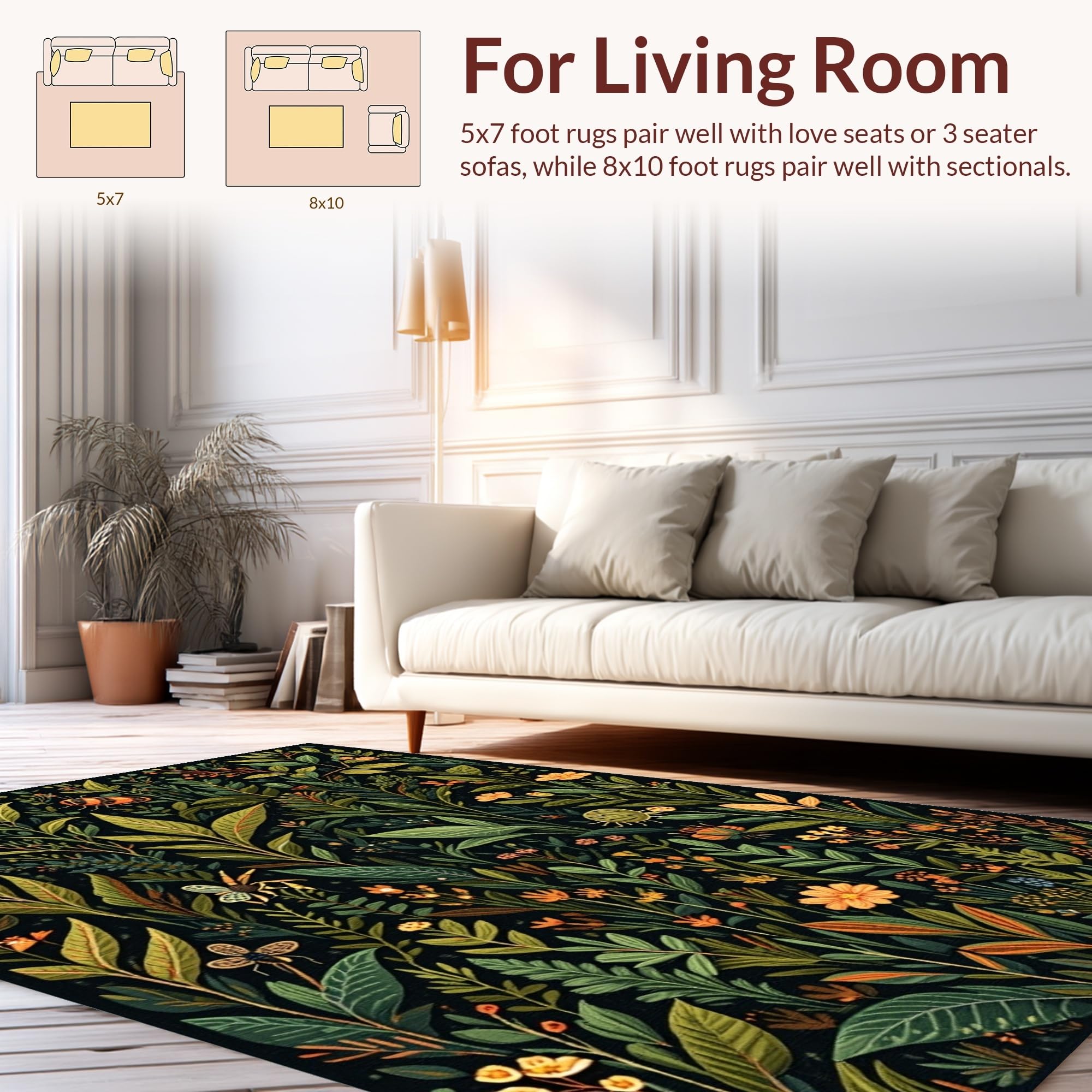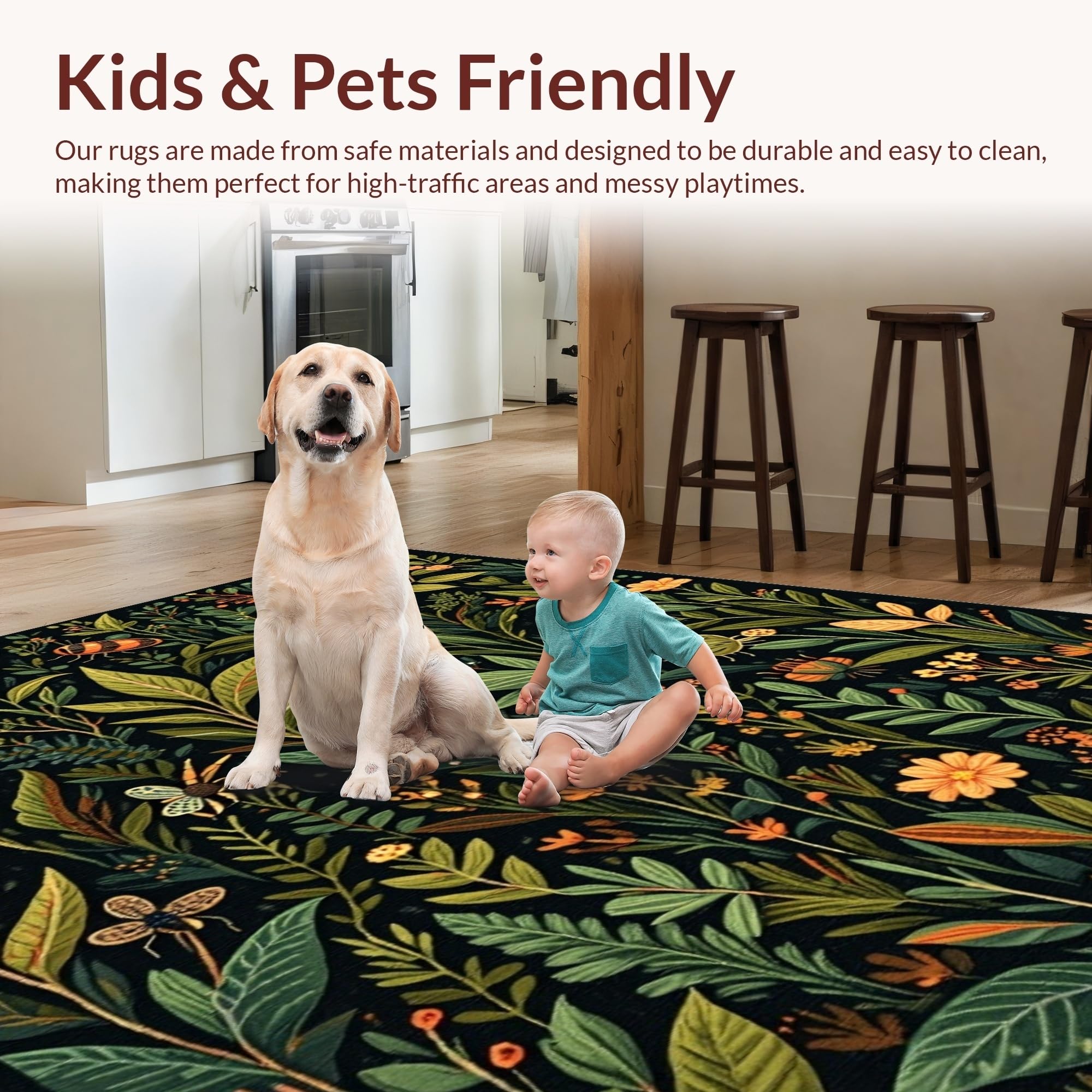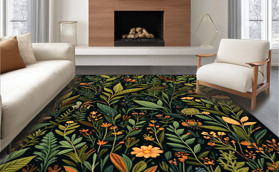 Ultra Soft Area Rug, Non Slip, Stain Resistant, Washable Area Rugs for Living Room, Bedroom, Contemporary Organic Floral Design(Black) Overview: