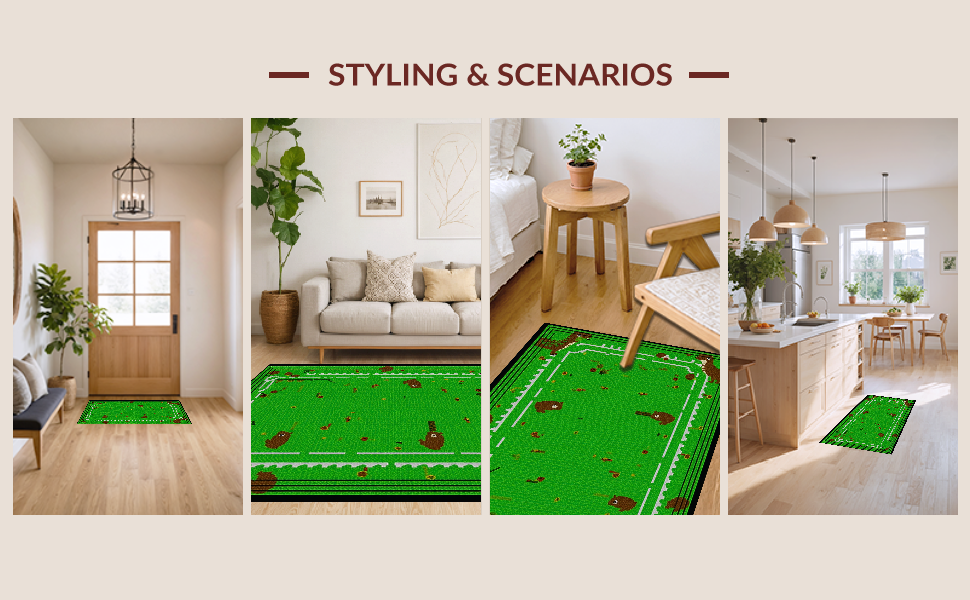 Ultra Soft Area Rug, Non Slip, Stain Resistant, Washable Area Rugs for Living Room, Bedroom, Contemporary Outdoor Tropical Feel(Green) Overview:
