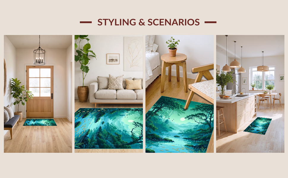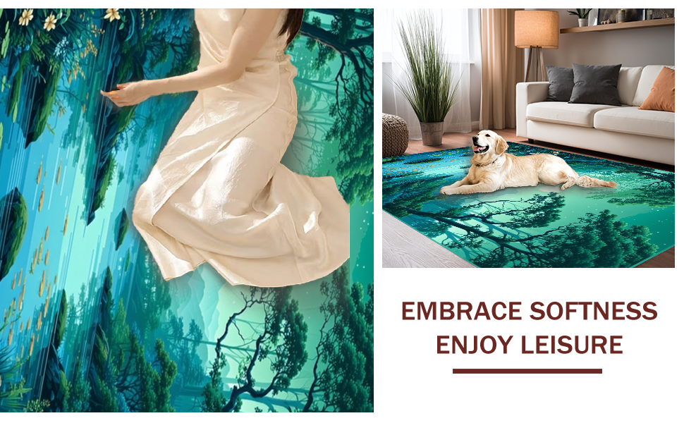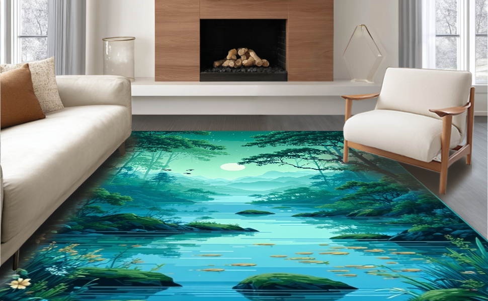 Ultra Soft Area Rug, Non Slip, Stain Resistant, Washable Area Rugs for Living Room, Bedroom, Contemporary Oval Design with Nature Vibes(Green) Overview:
